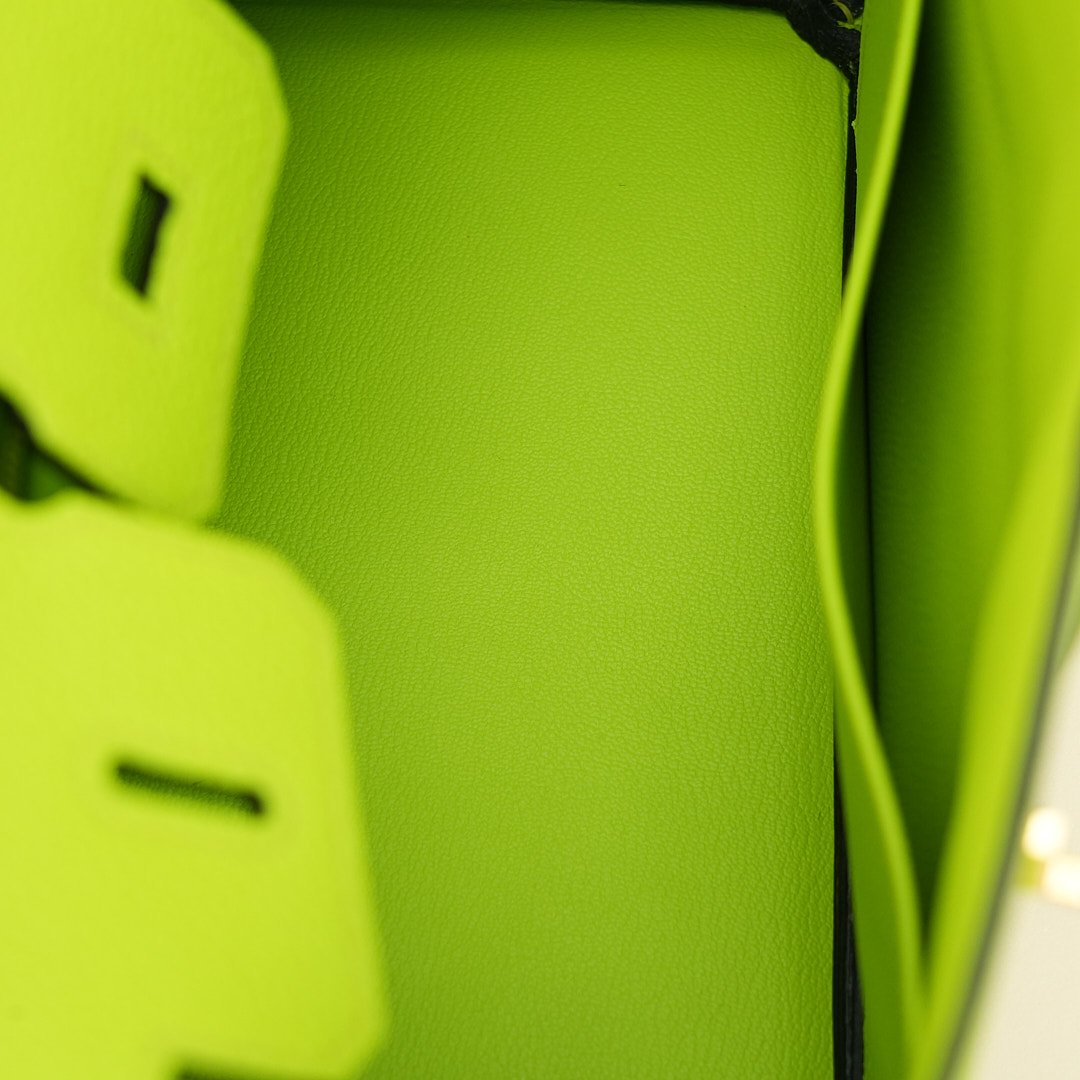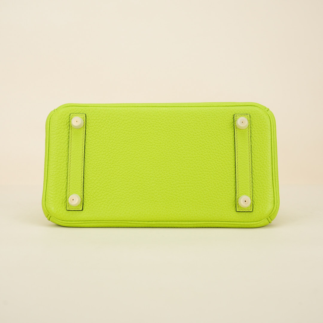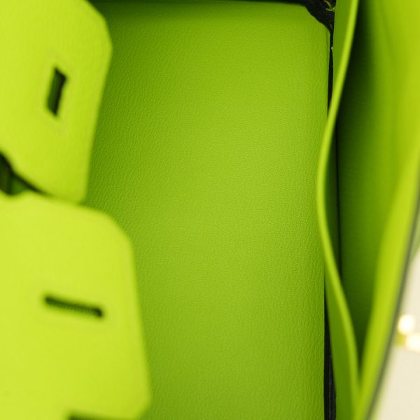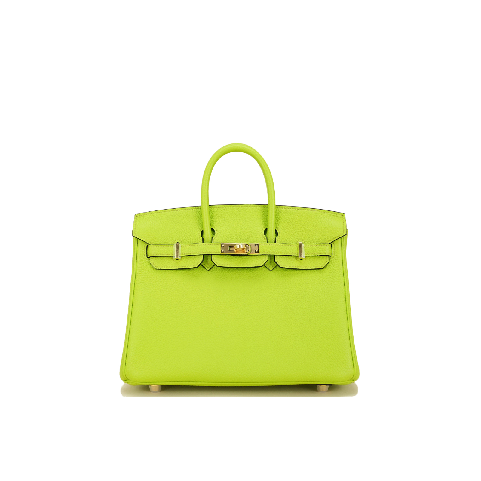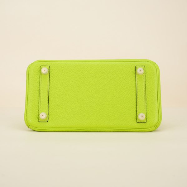 This BK is in Apple Green togo leather with Gold hardware, has tonal stitching, front flap, two straps with center toggle closure, clochette with lock and two keys, and double rolled handles.