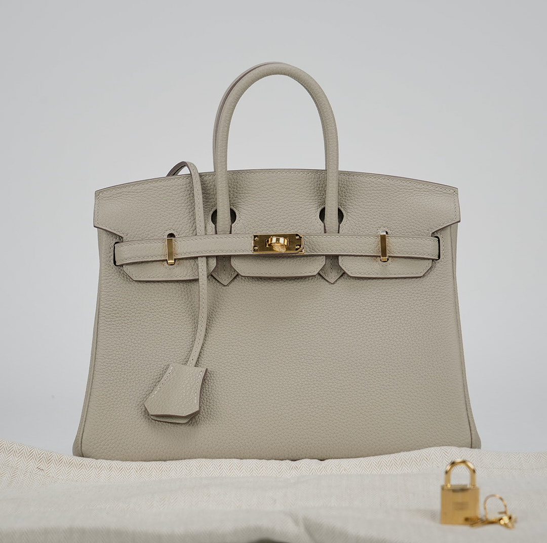 Fall in love with this BK 25 crafted in Togo leather. Its versatile Béton shade that works perfectly with any outfit and its clean lines and perfect size make it a dream to carry.