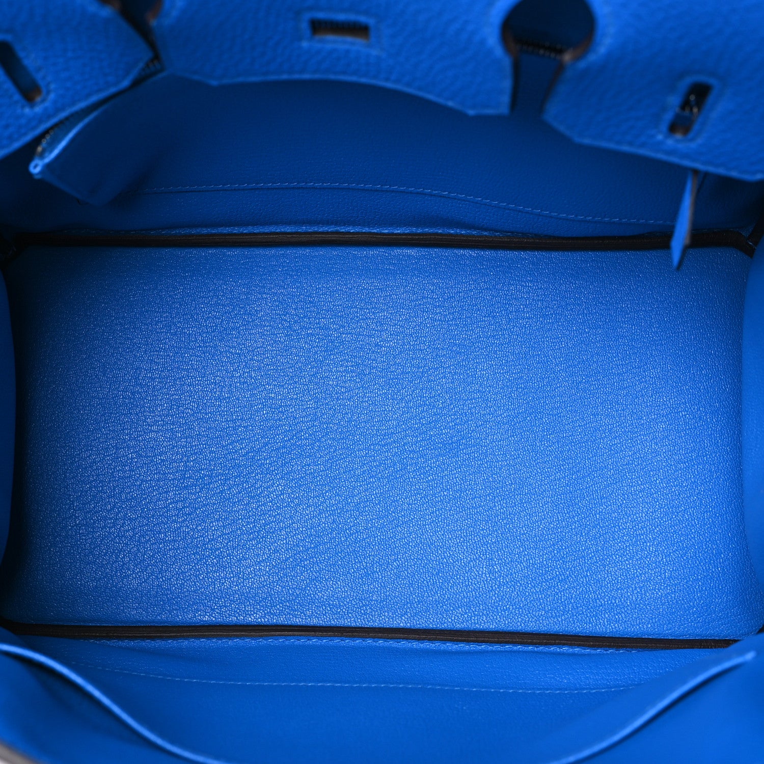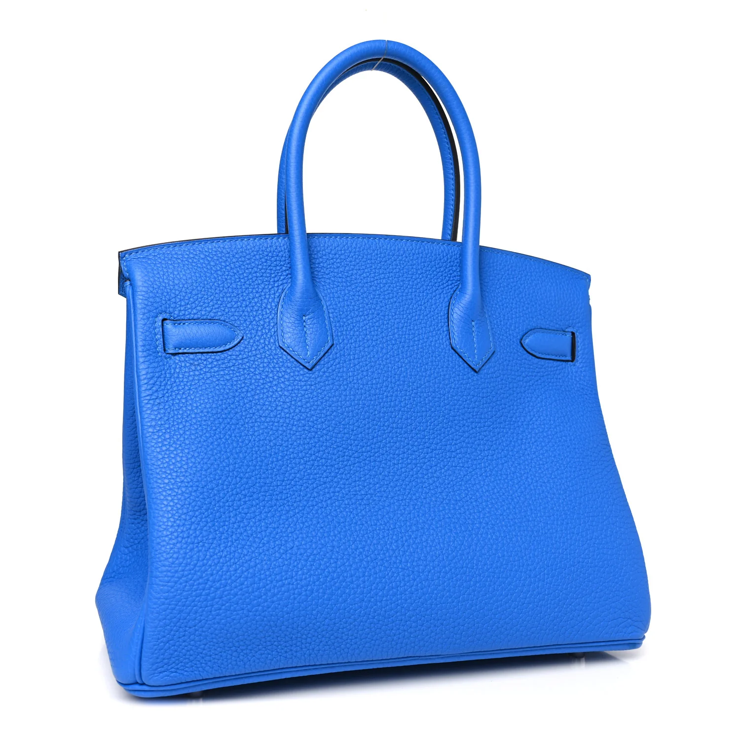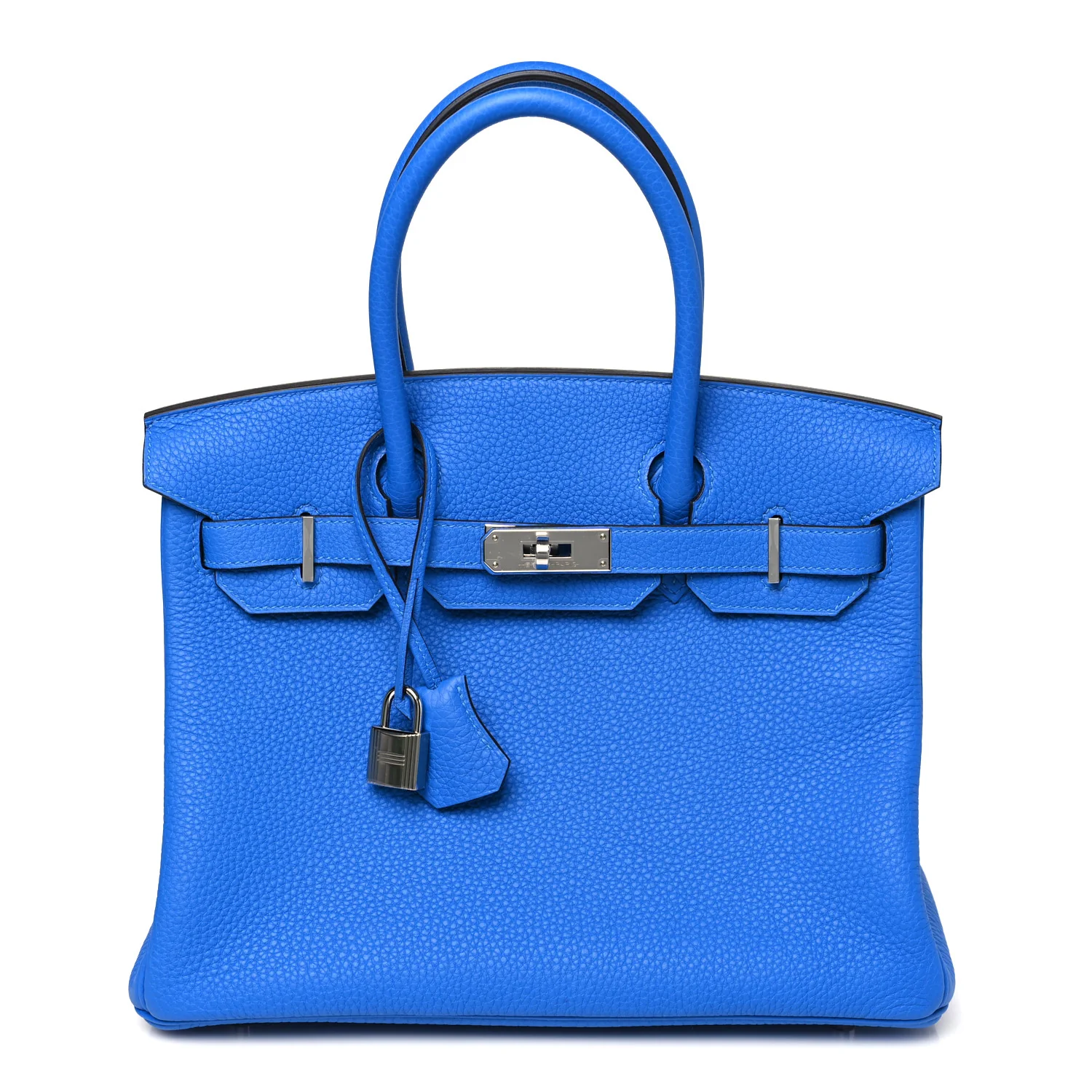 This BK is in Blue Hydra togo leather with Palladium hardware, has tonal stitching, front flap, two straps with center toggle closure, clochette with lock and two keys, and double rolled handles.