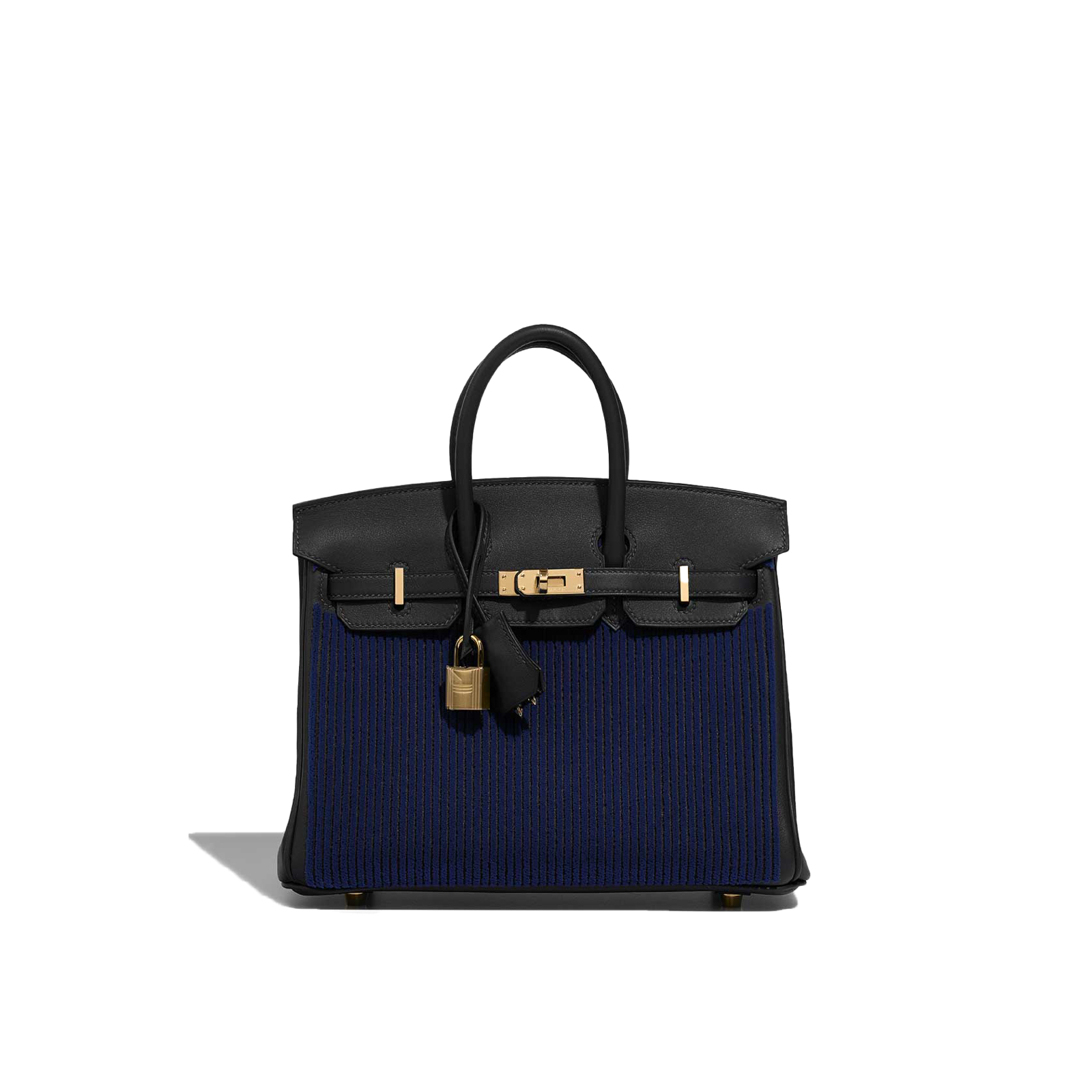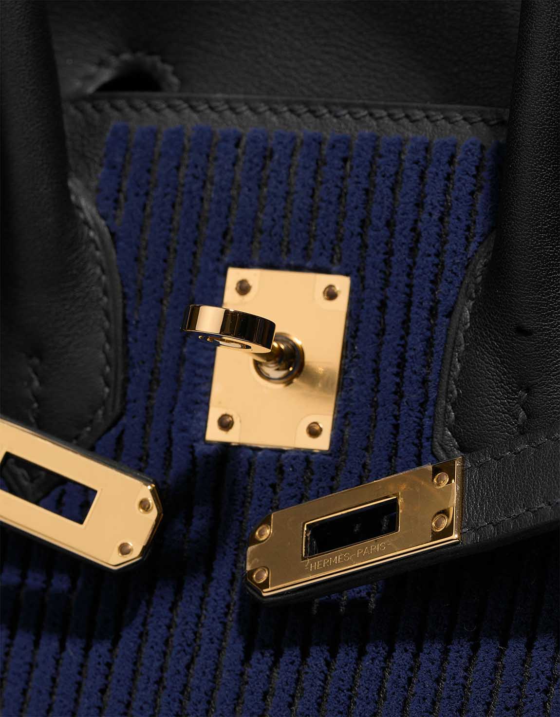 The BK Côte à Côte Tuffetage 25 is an exceptional piece for your collection. Colored in the shades of Caban and Bleu Saphir, it has been handcrafted from Swift leather.