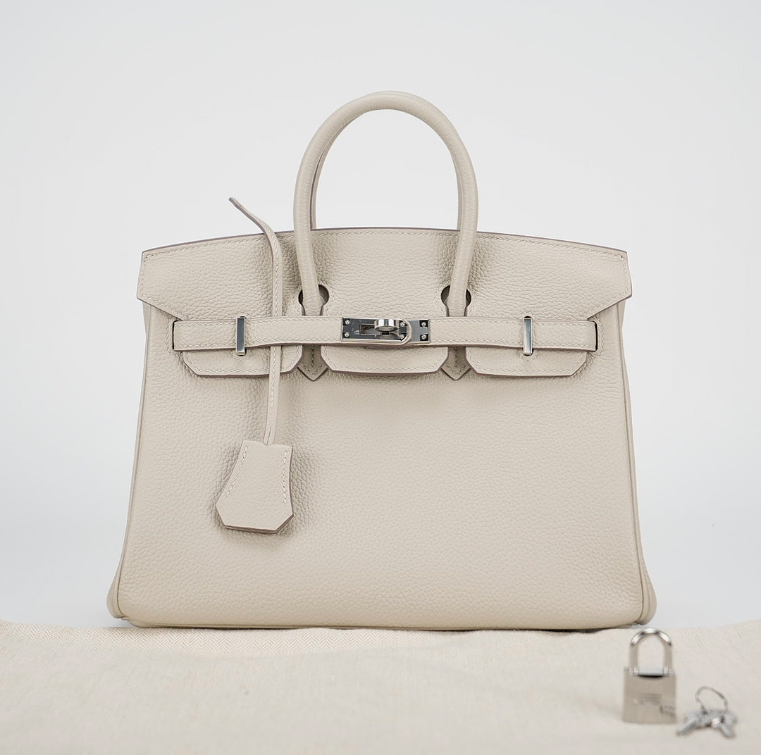 Fall in love with this BK 25 crafted in Togo leather. Its versatile Béton shade that works perfectly with any outfit and its clean lines and perfect size make it a dream to carry.