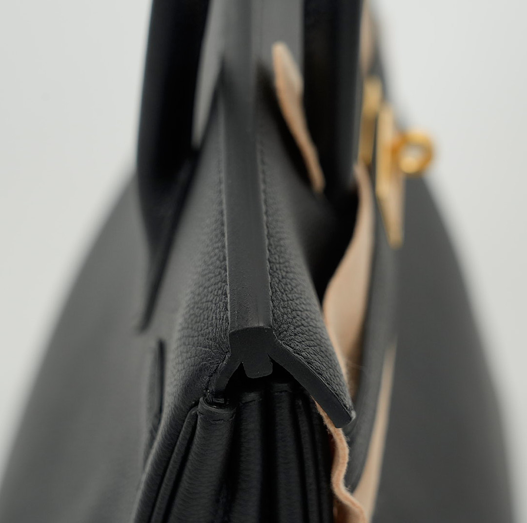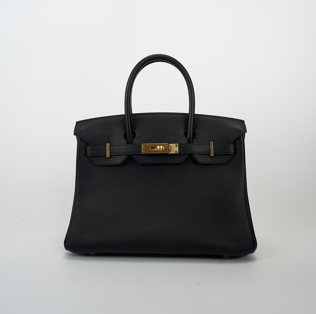 Make a statement with this BK 30, a vintage classic with undeniable charm. Crafted with the expert craftsmanship of the H house, from Evergrain leather in Black, this model is adorned with elegant gold hardware.