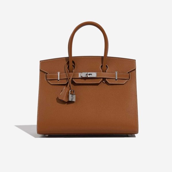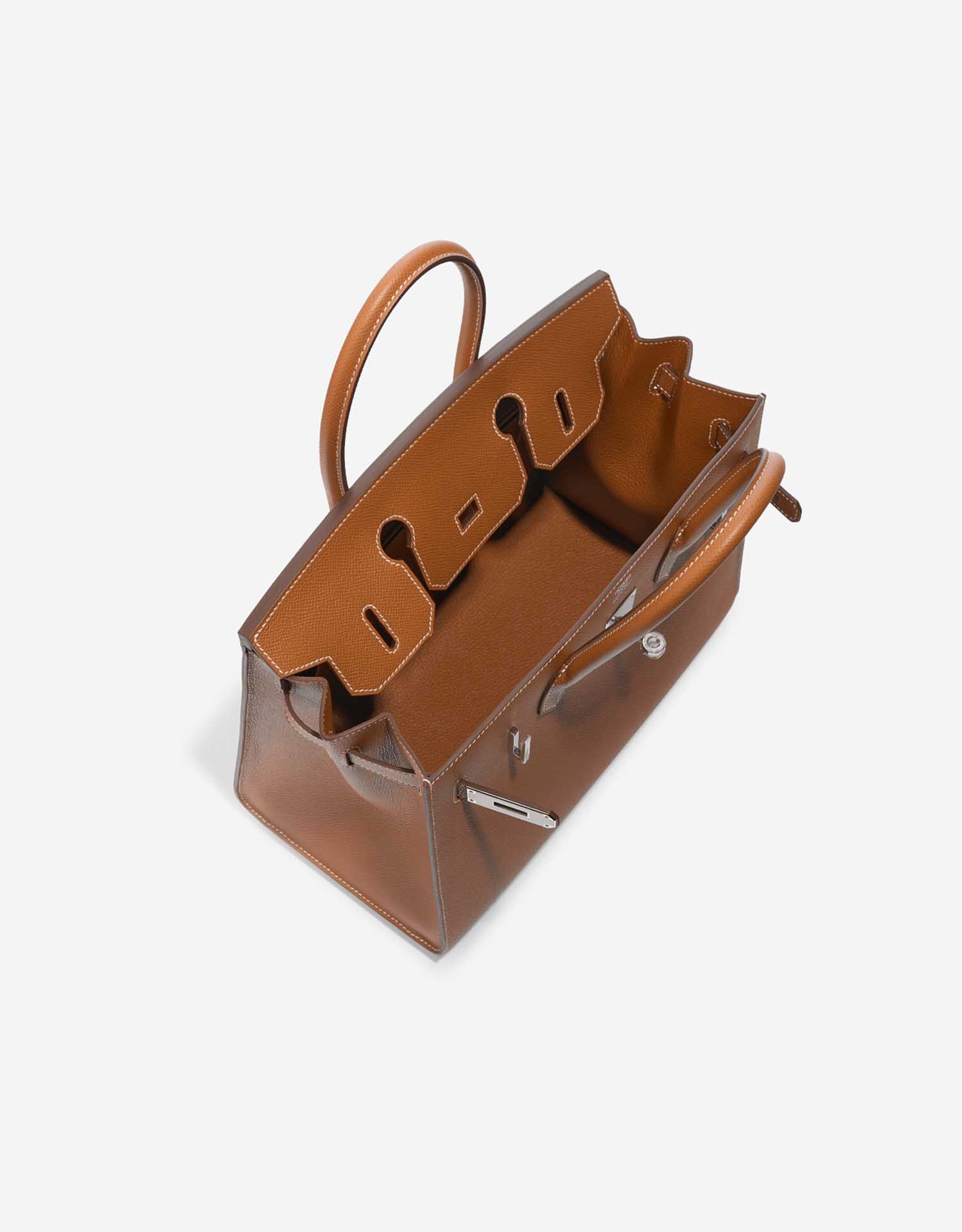 An BK 30 expertly sewn together by hand using Epsom leather in Gold, one of most sought-after shades. It’s detailed with palladium hardware and fitted with a zipped compartment inside to keep your most-used cards close at hand. Carry it unclasped in the crook of your arm for relaxed weekend chic.