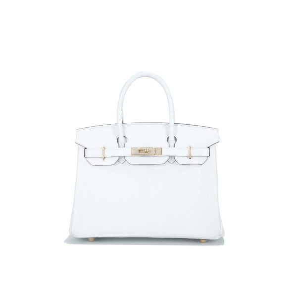 This BK 30 bag featured in the White Matte Niloticus Crocodile. It rare coveted beauty and a true collectors treasure. Fresh with Gold with Encrusted Diamond hardware.