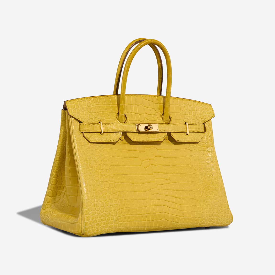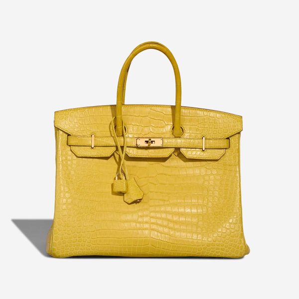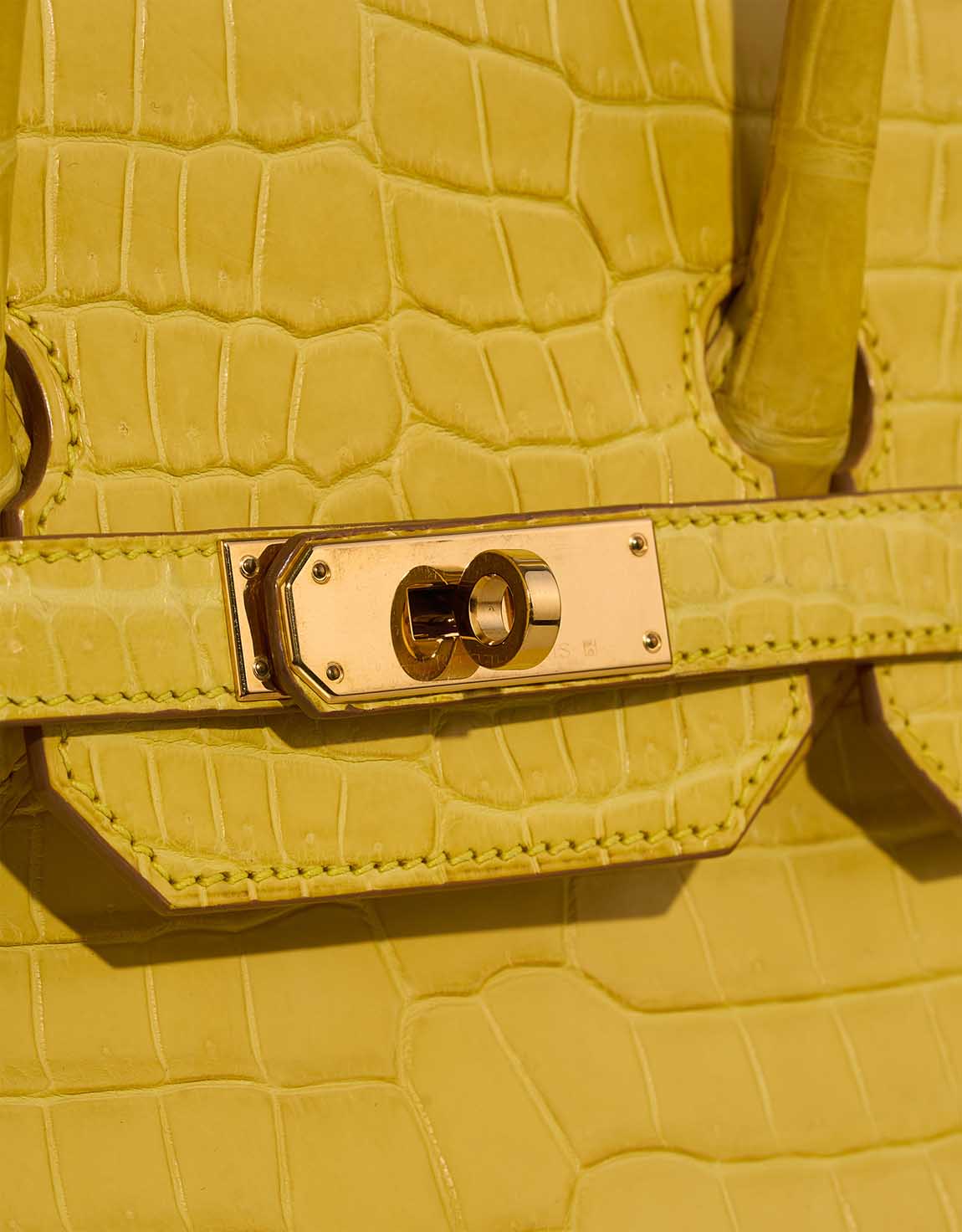 An extraordinary BK 35, crafted from Porosus Crocodile leather in a soft Mimosa shade. The exotic leather’s natural scales create a mesmerizing play of light, enhanced by gold-plated hardware.
