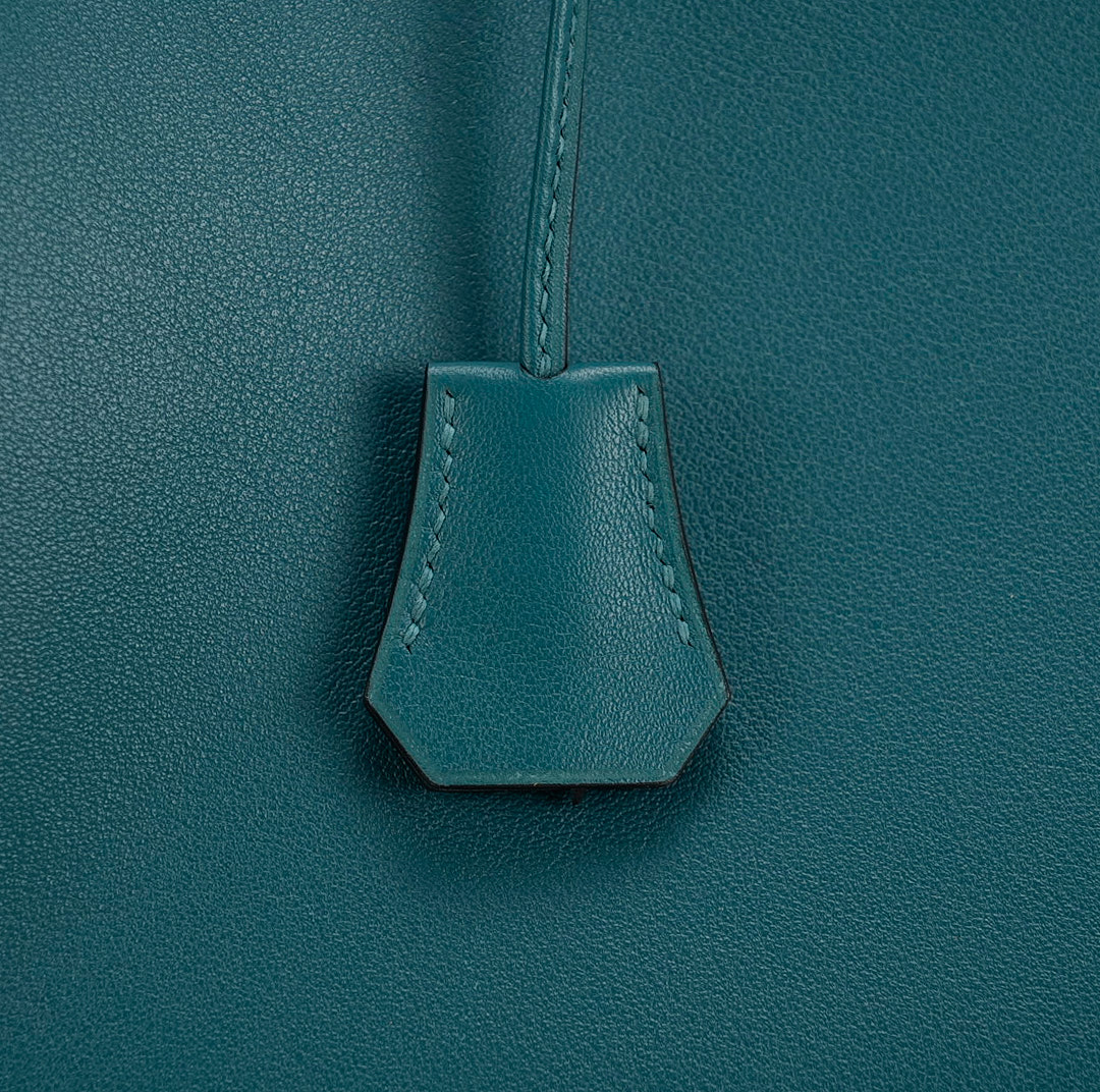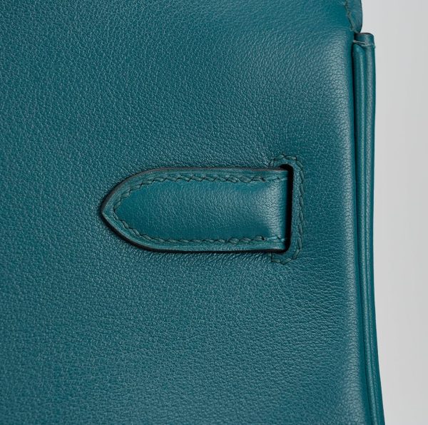 The BK 35 is a spacious addition to your collection. Crafted from Swift leather, it is colored in the refreshing shade of Bleu Paon. Match your jewelry to the palladium hardware to elevate your looks.