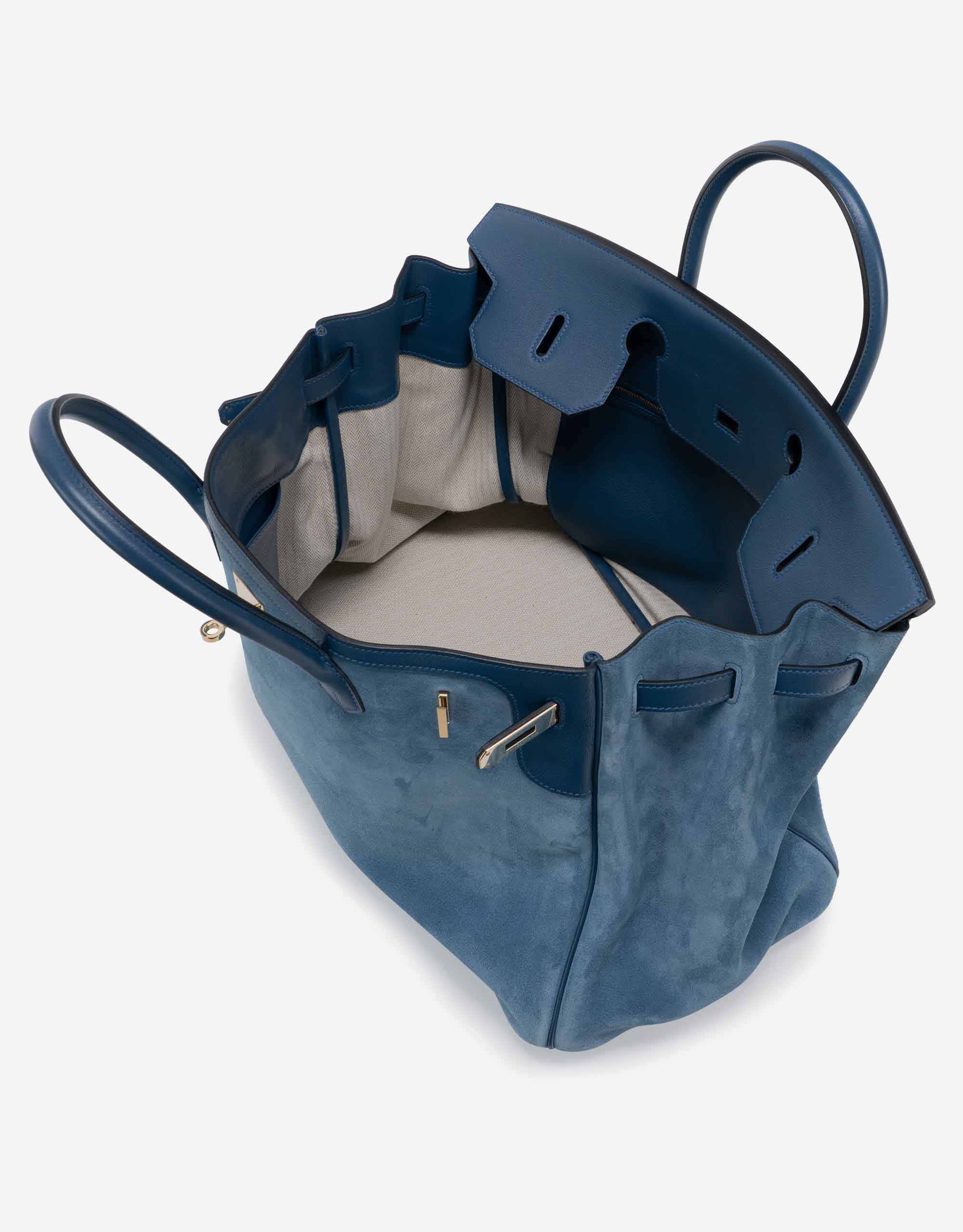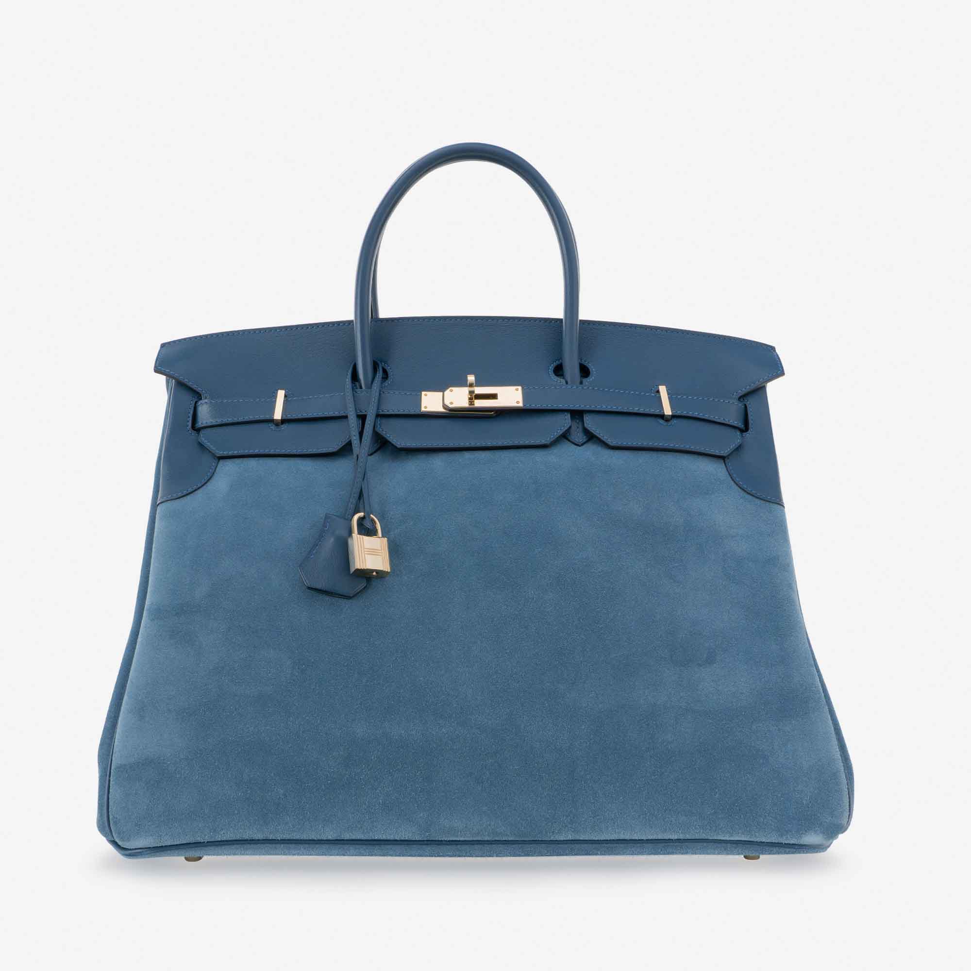 This scaled-up Birkin Grizzly is an exceptionally rare collector’s item. The limited edition was handcrafted from suede in Blue Thalassa and accented with Permabrass hardware – a sought-after champagne hue. It’s sized to hold all your essentials, plus a tablet or notebook, and is an ideal companion for your next getaway.