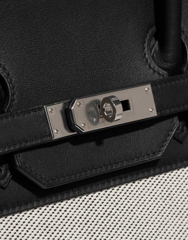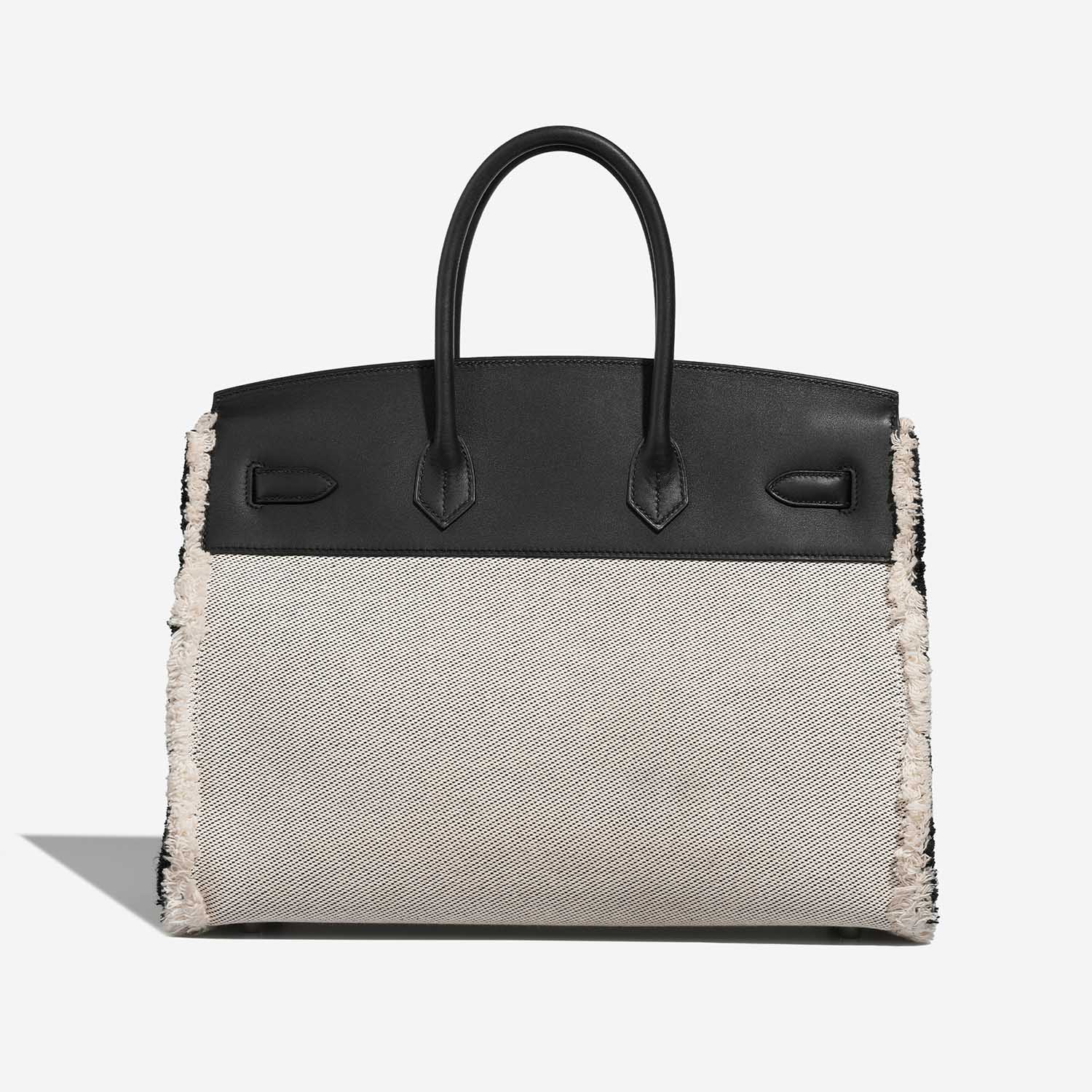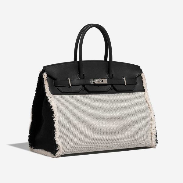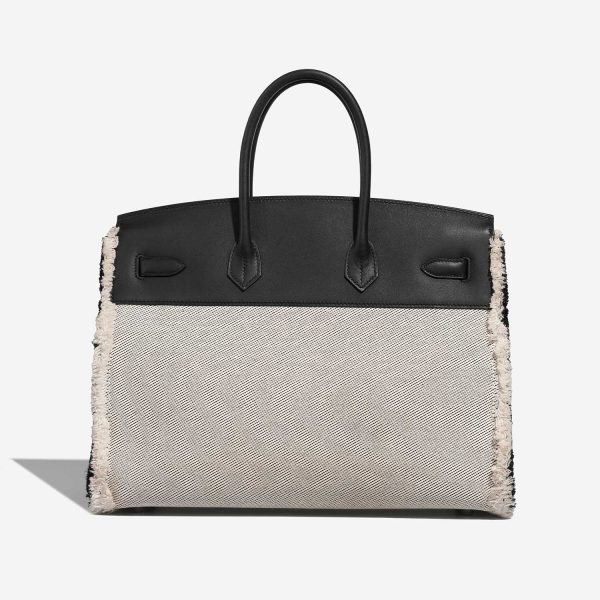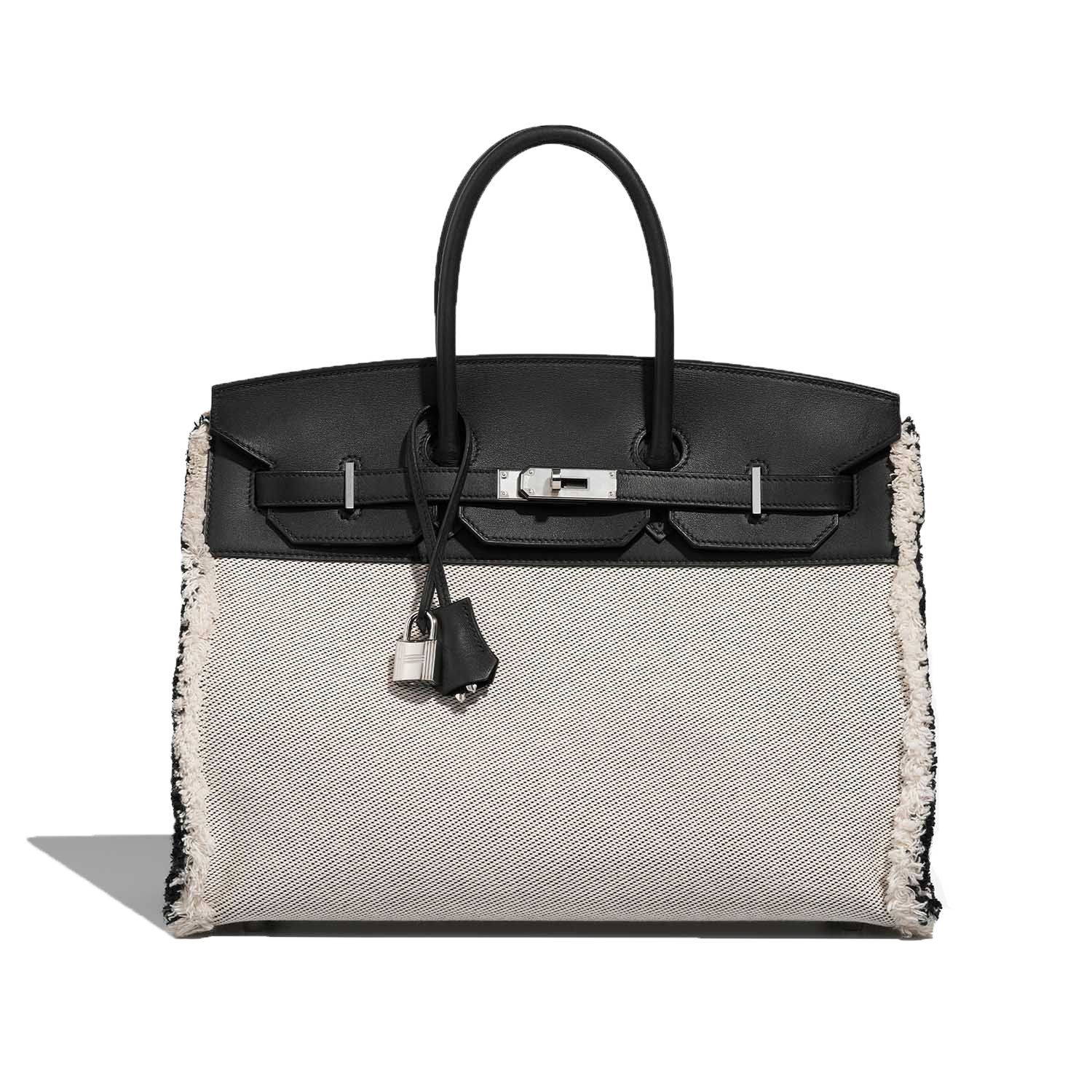 A collectible BK 35 in the shades of Black and Ecru. This BK Fray Fray takes its name from the mini-fringing effect around the edges, adding a unique touch to this design. Handcrafted from Toile and Swift leather, it is topped with palladium hardware.