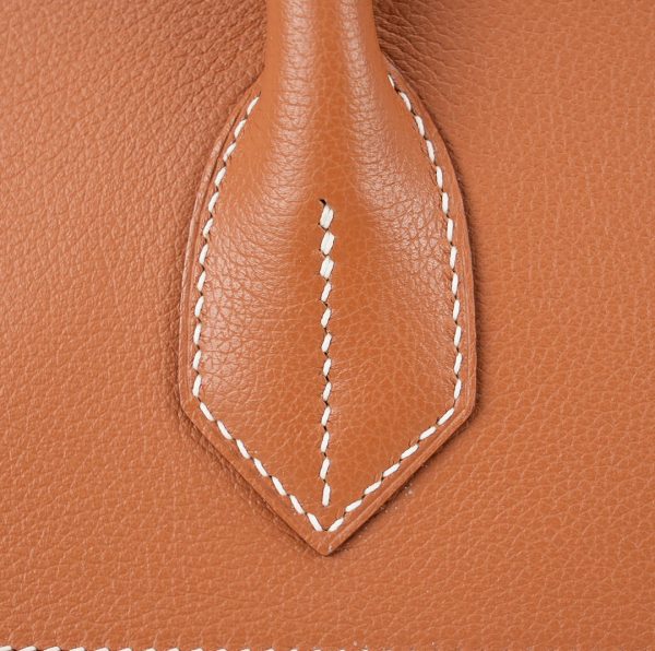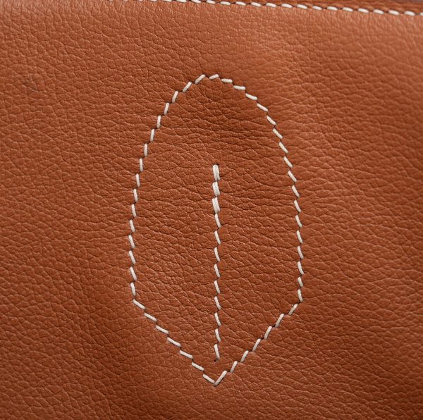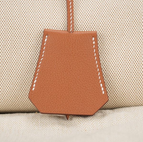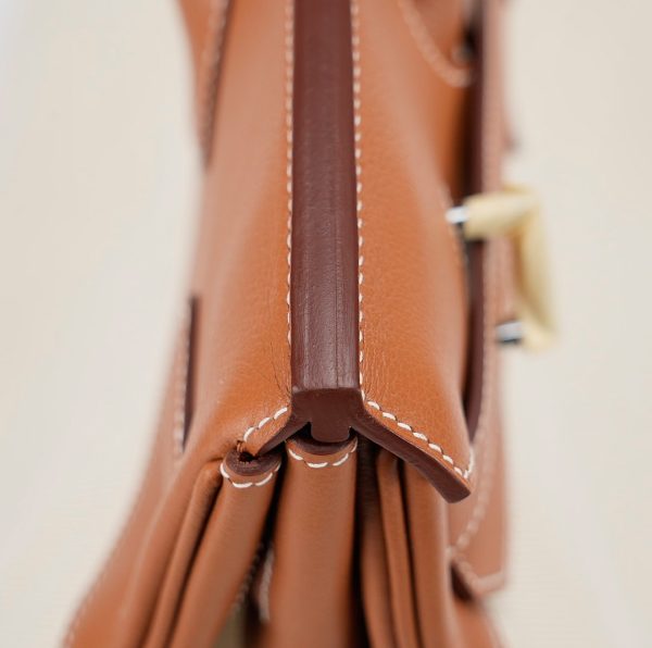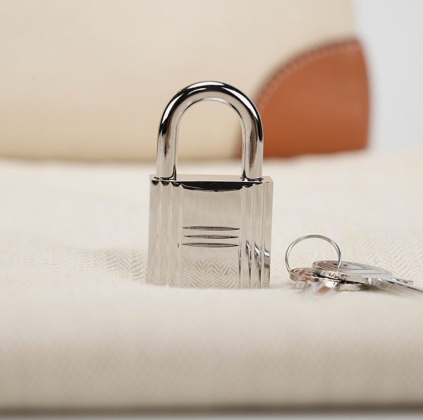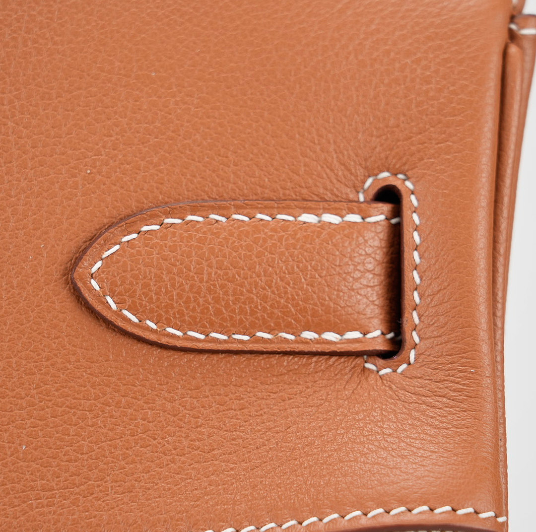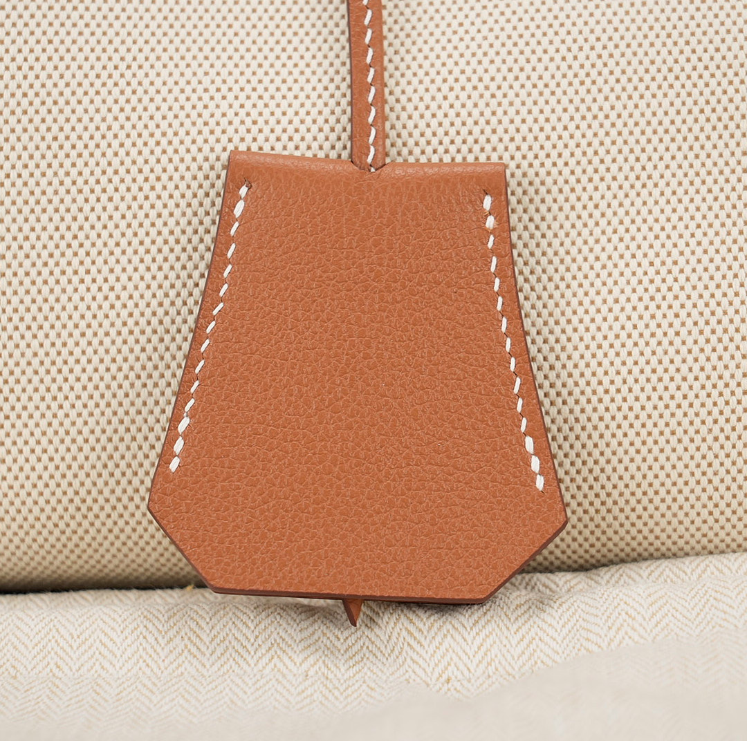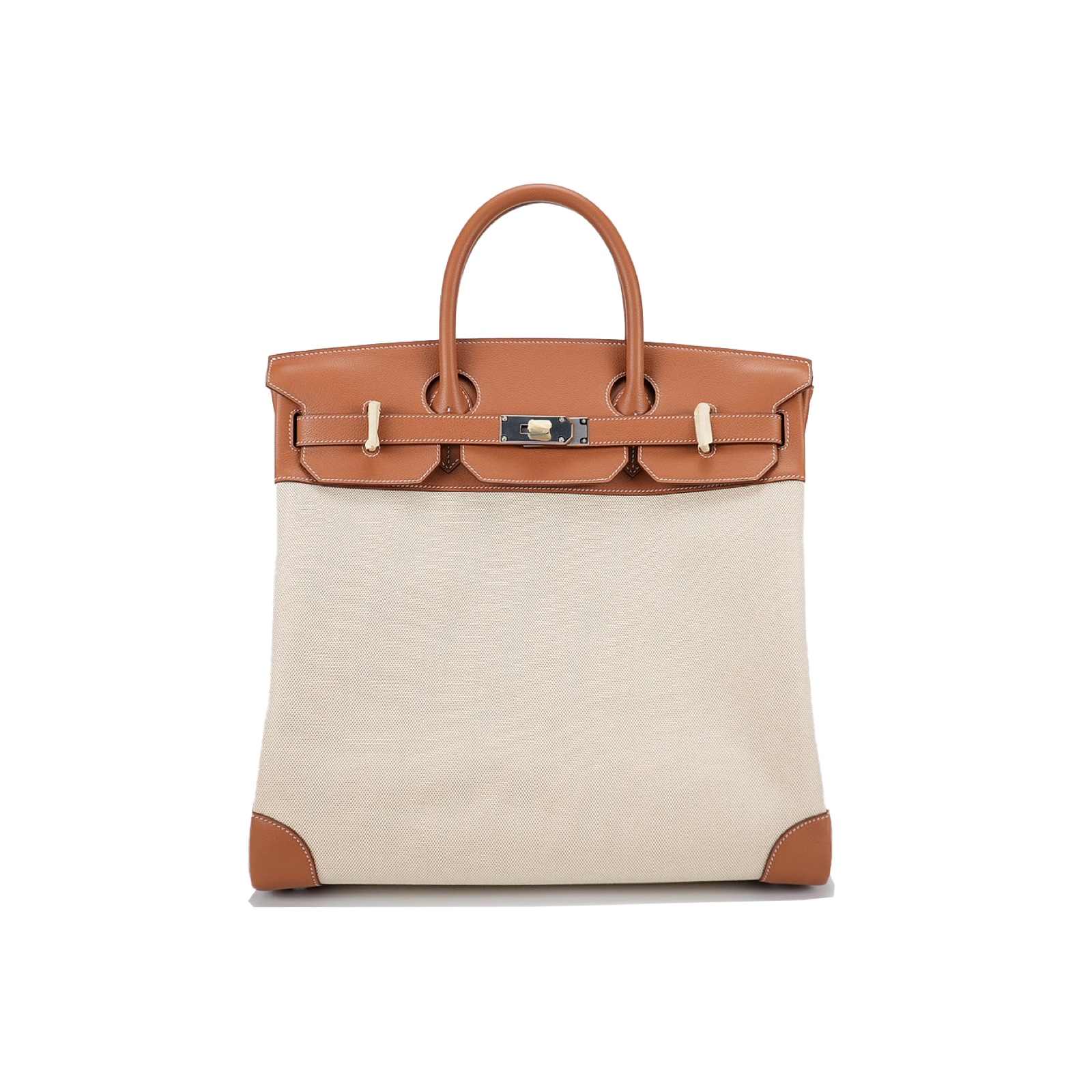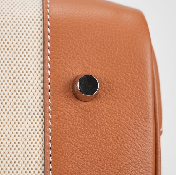 This HAC BK is in Gold evercolor leather and Ecru toile canvas with palladium hardware and has contrast stitching, two straps with HAC toggle closure, clochette with lock and keys and double rolled handles.