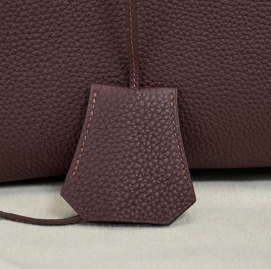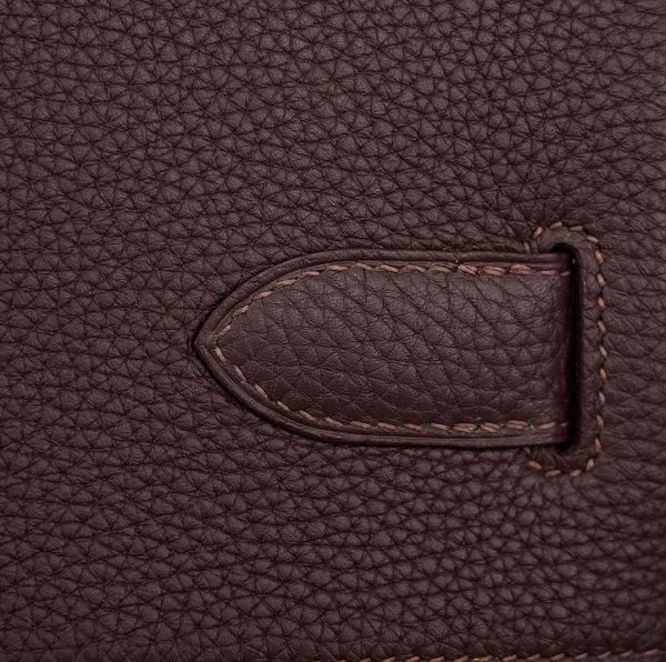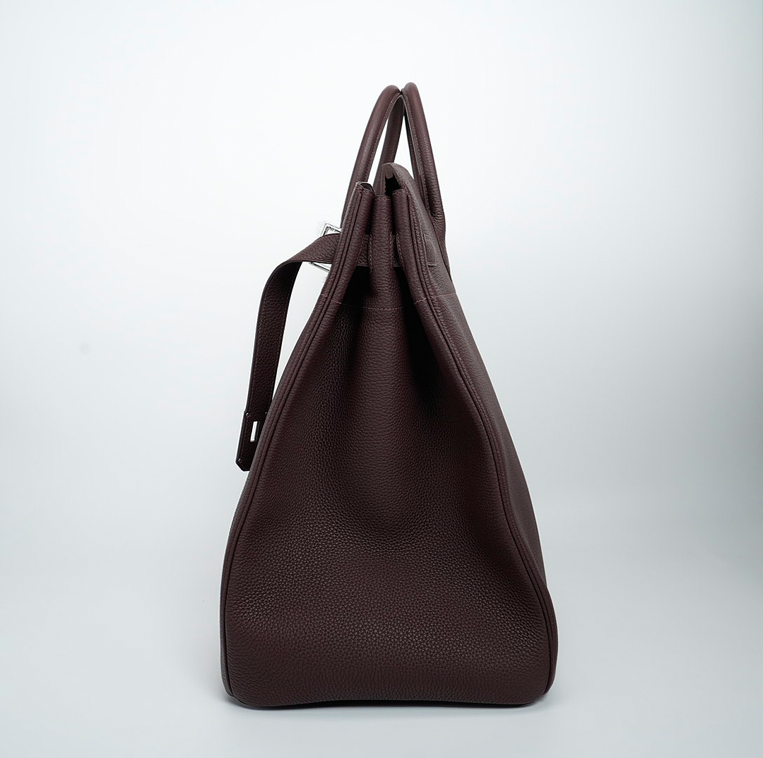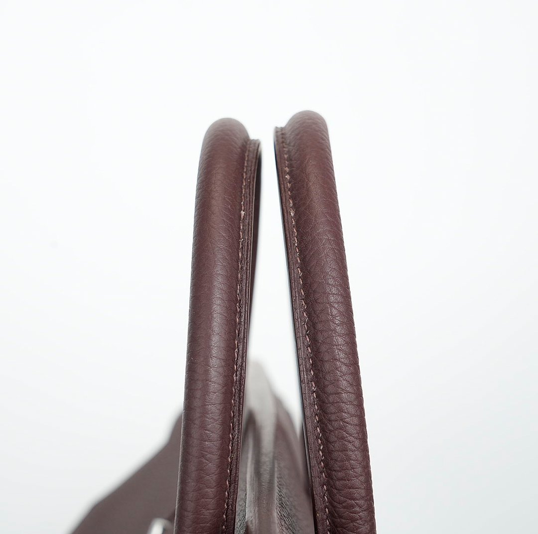 This HAC BK is in Café Taurillon Clemence leather with palladium hardware and has tonal stitching, two straps with HAC toggle closure, clochette with lock and two keys and double rolled handles.