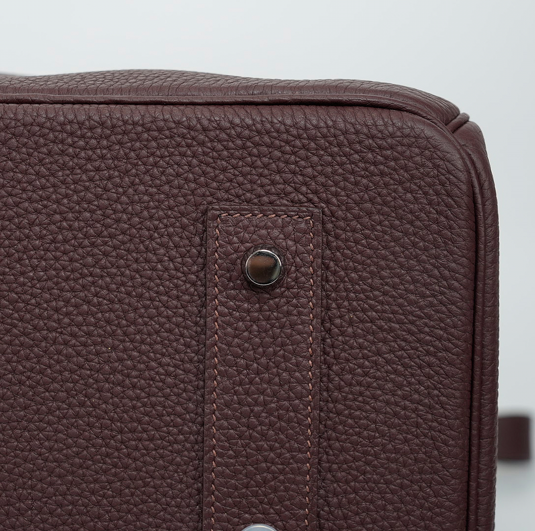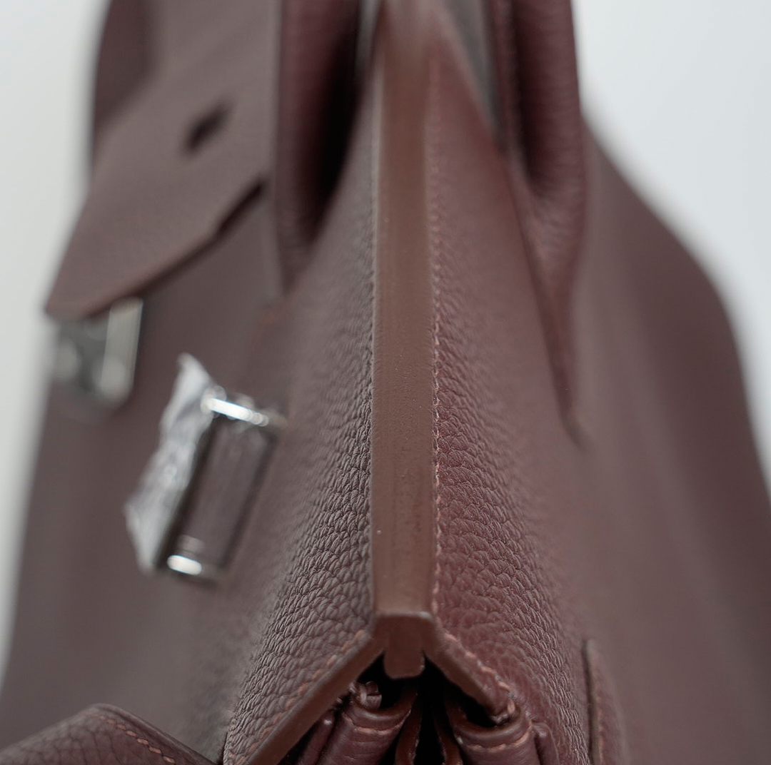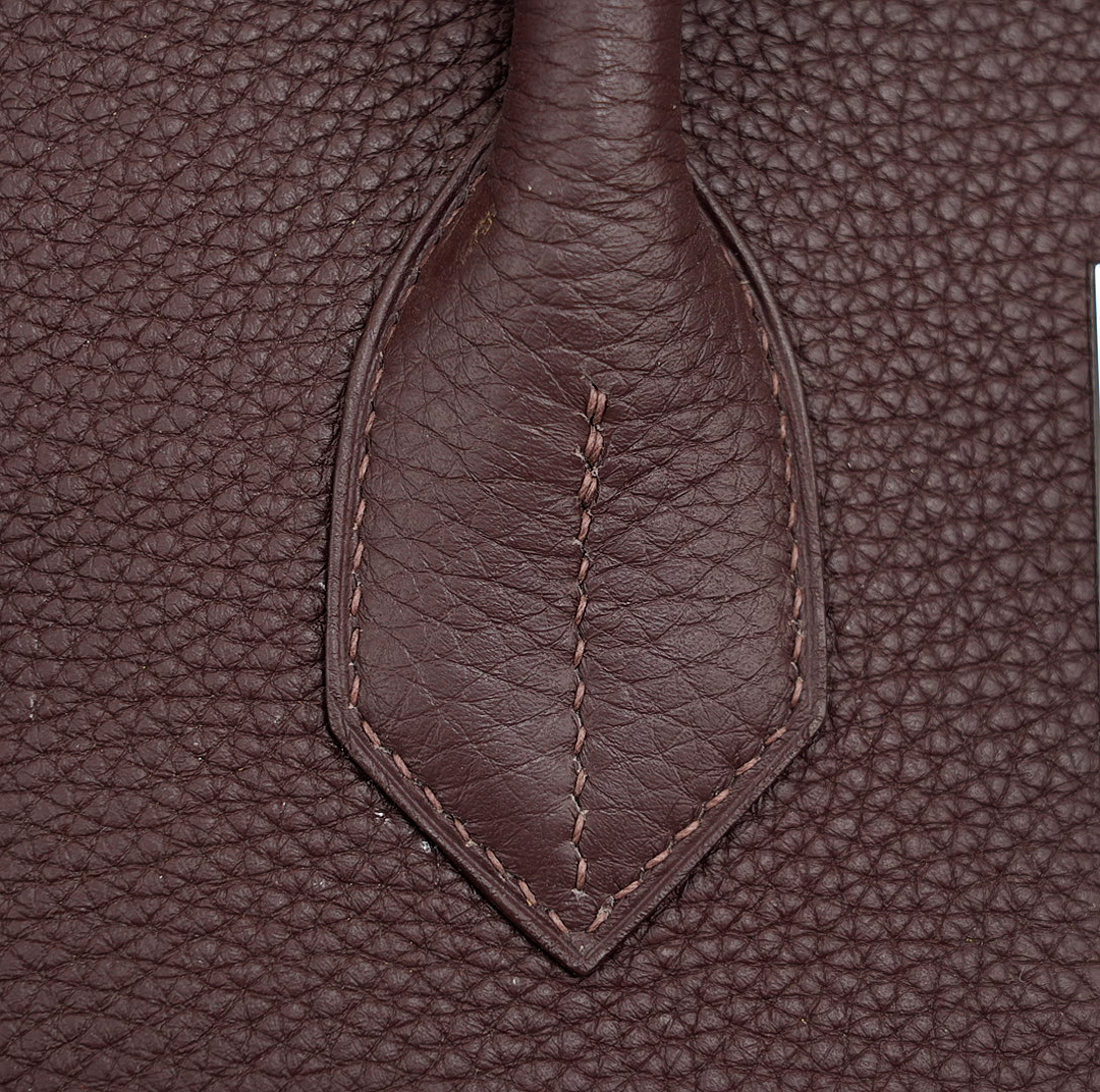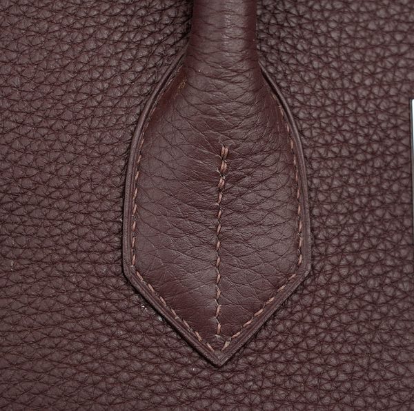 This HAC BK is in Café Taurillon Clemence leather with palladium hardware and has tonal stitching, two straps with HAC toggle closure, clochette with lock and two keys and double rolled handles.