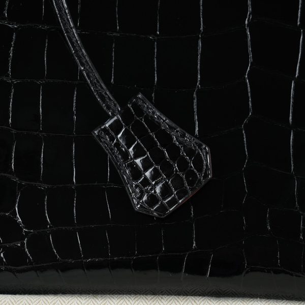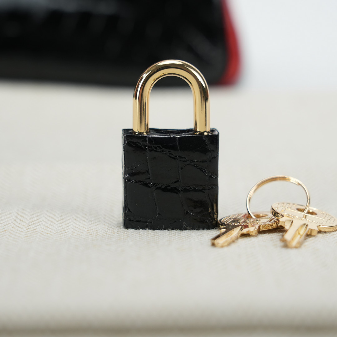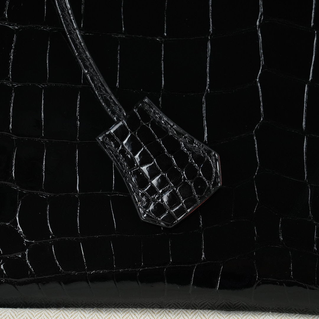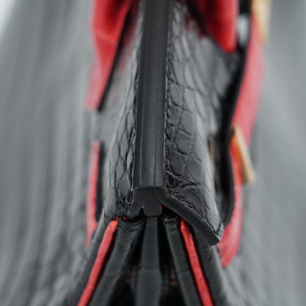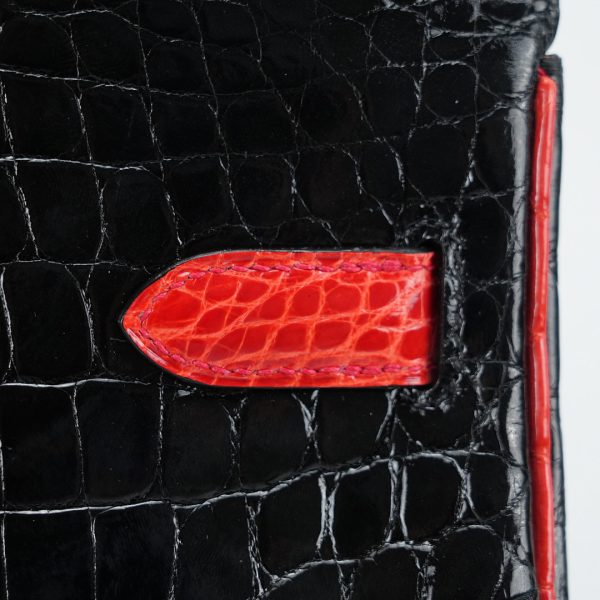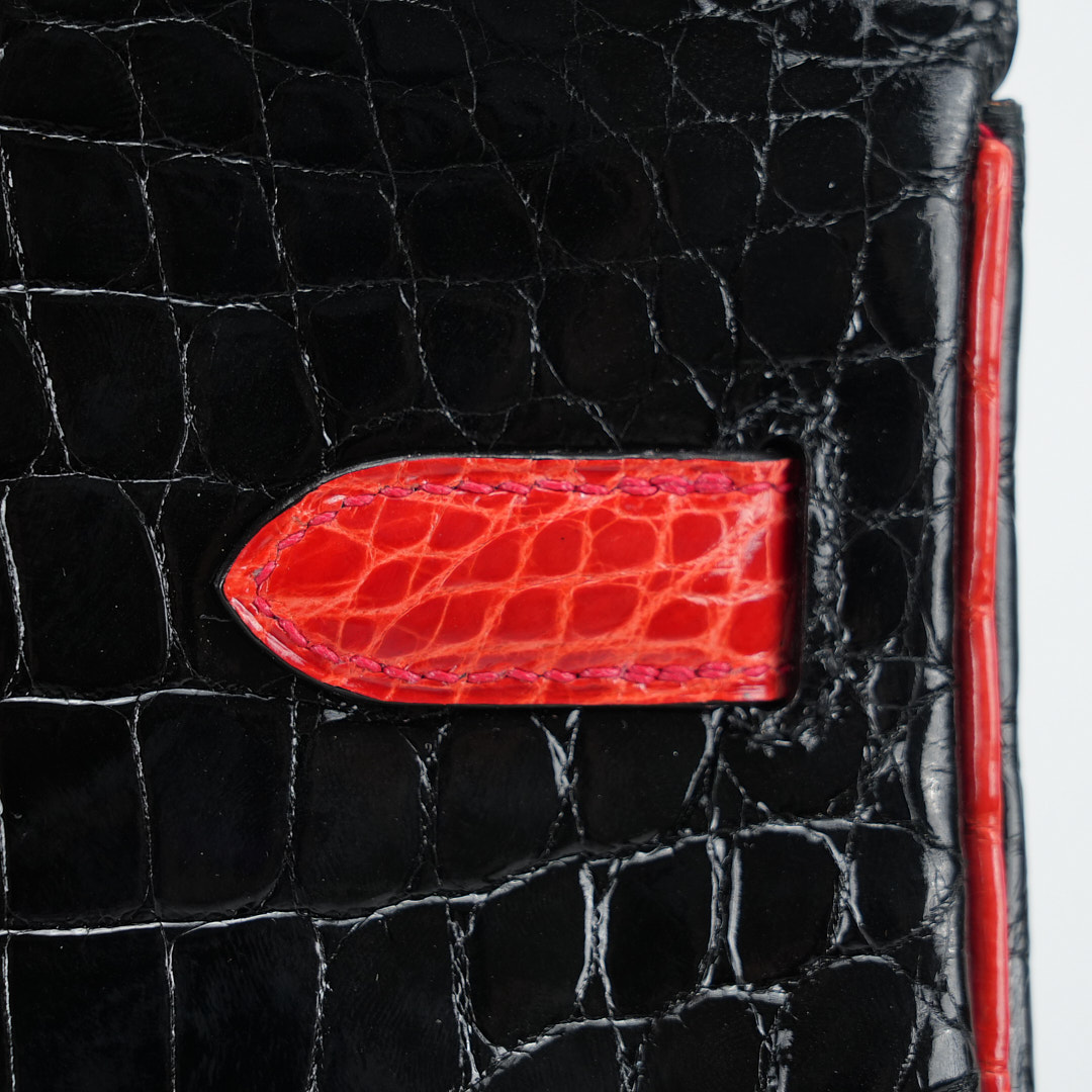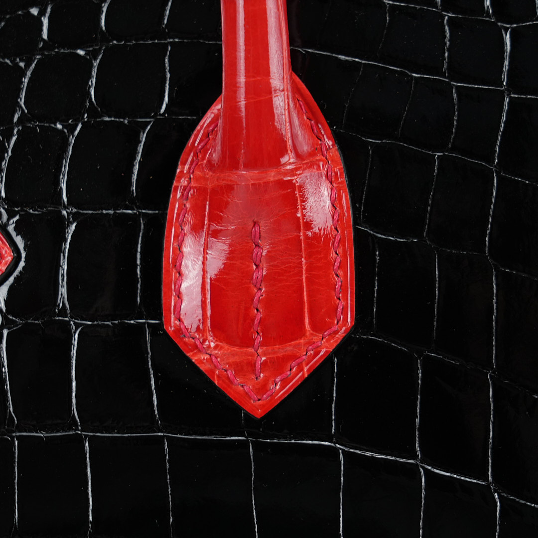 Black and Rouge Braise Shiny Niloticus Crocodile Leather