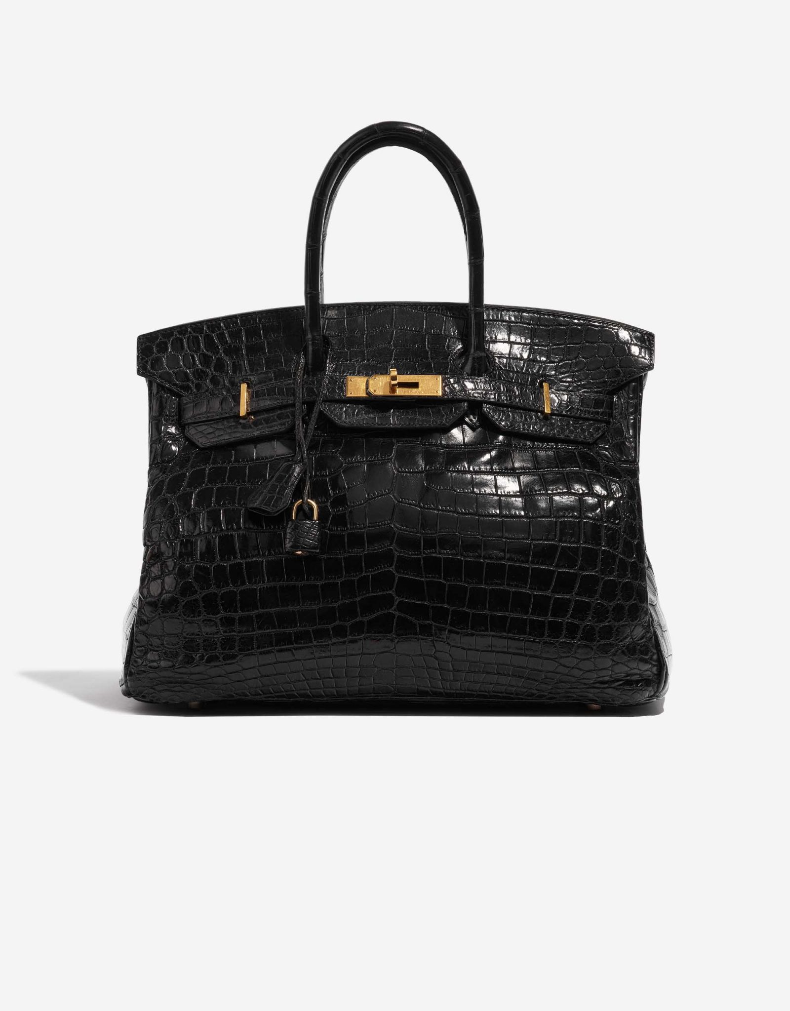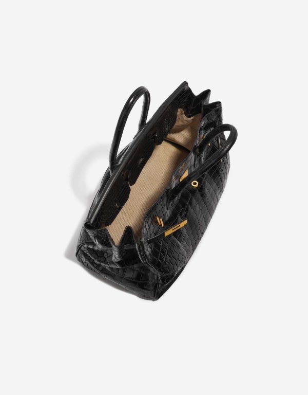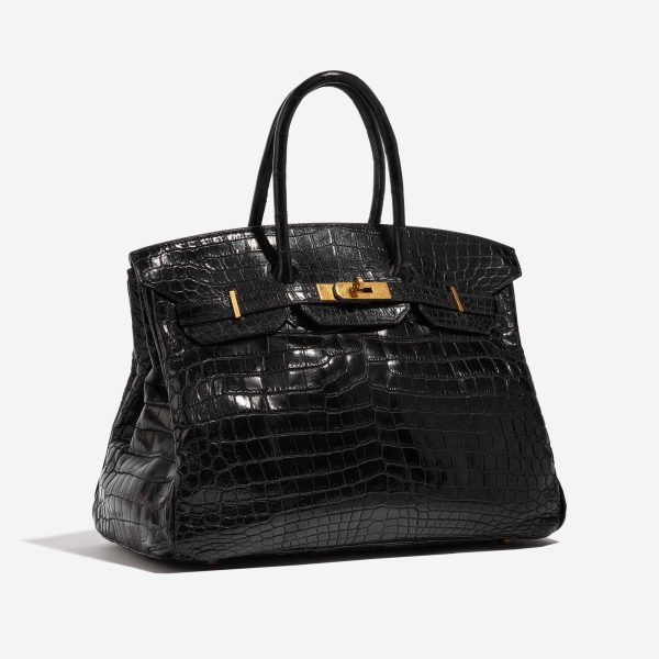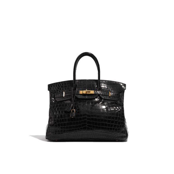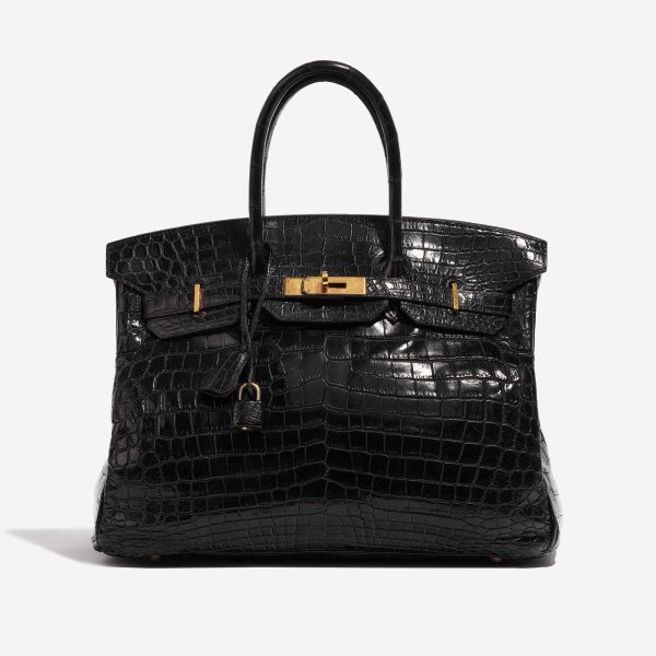 This BK 35 Crocodile Niloticus is a sophisticated addition to your everyday wardrobe. Niloticus Crocodile is one of the most precious leathers, and the glossy surface and seasonless color combination of black and gold make this BK 35 a versatile exotic collectable.