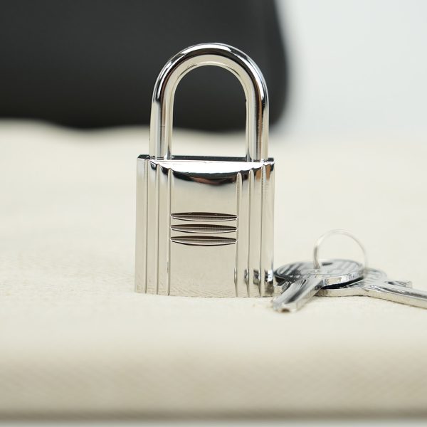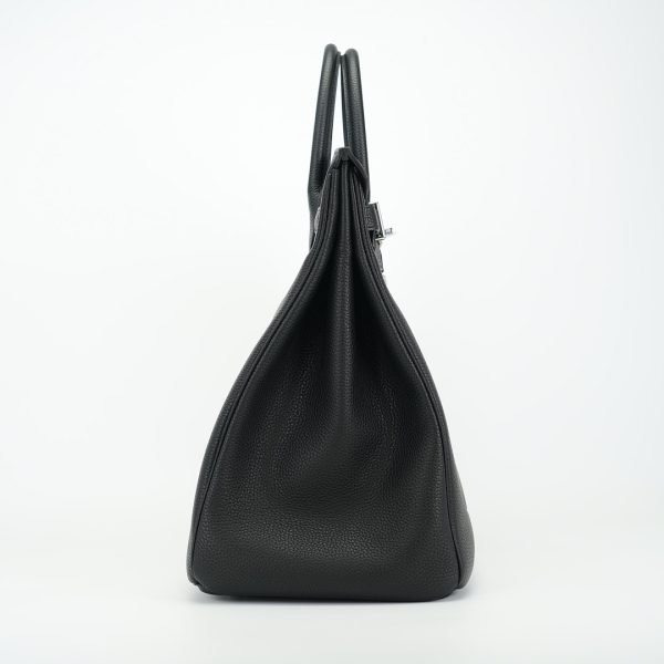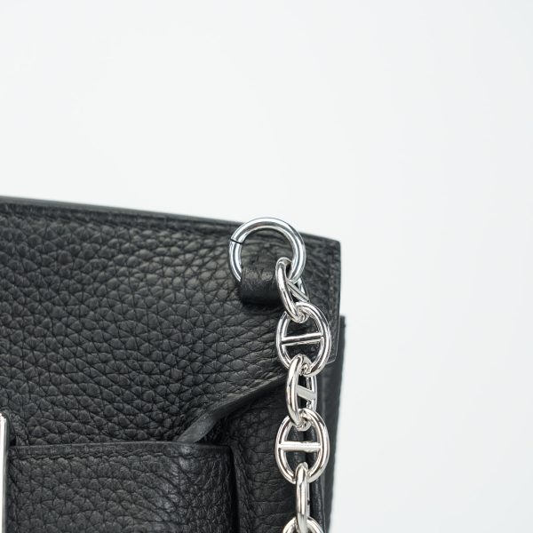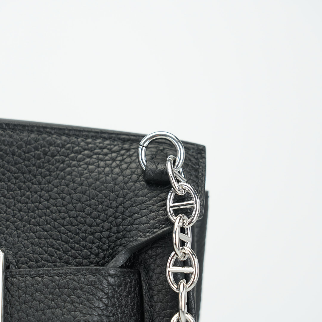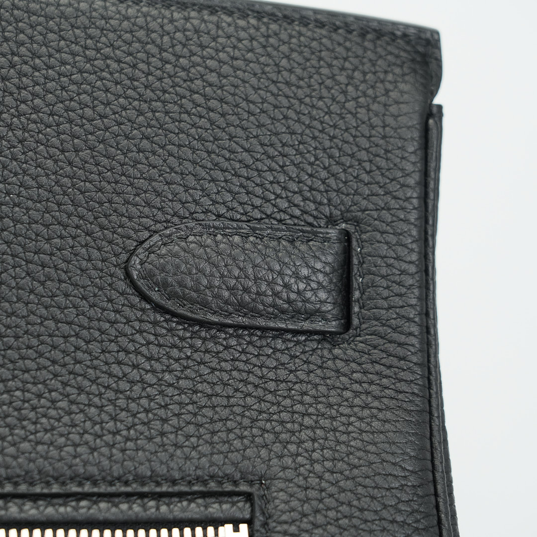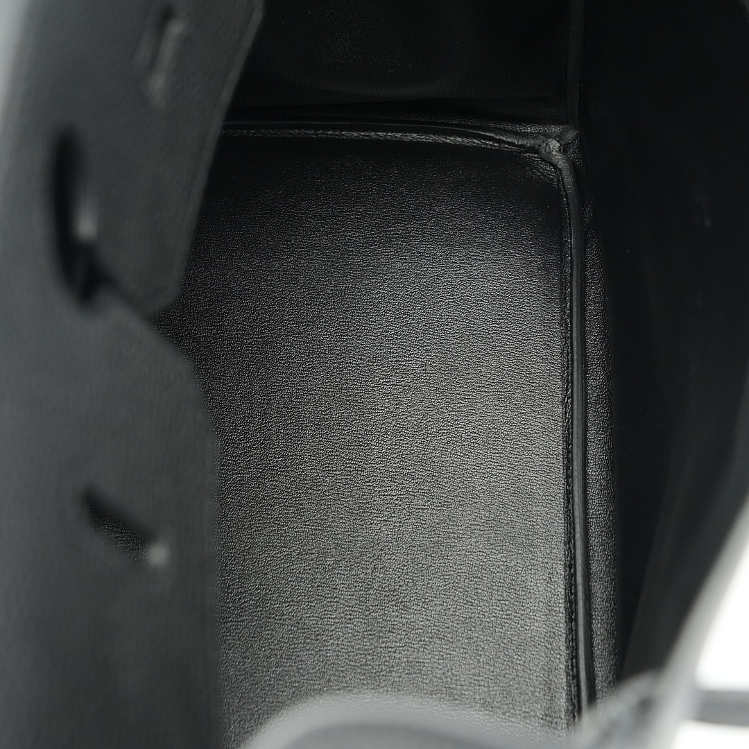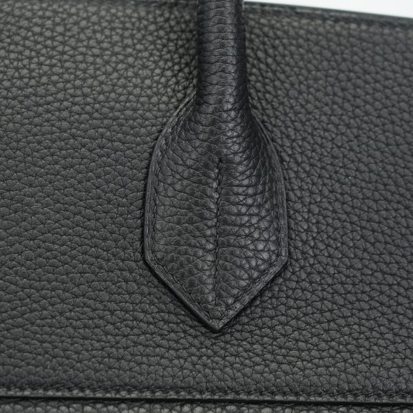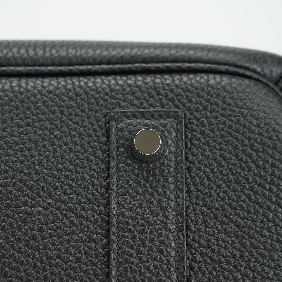 This is a Veau Volupto Rock HAC BK 40 in Black. This BK bag is crafted of Clemence black leather. The handbag features leather top handles, palladium silver hardware and front pockets. This opens to a matching leather interior with zipper and patch pockets.