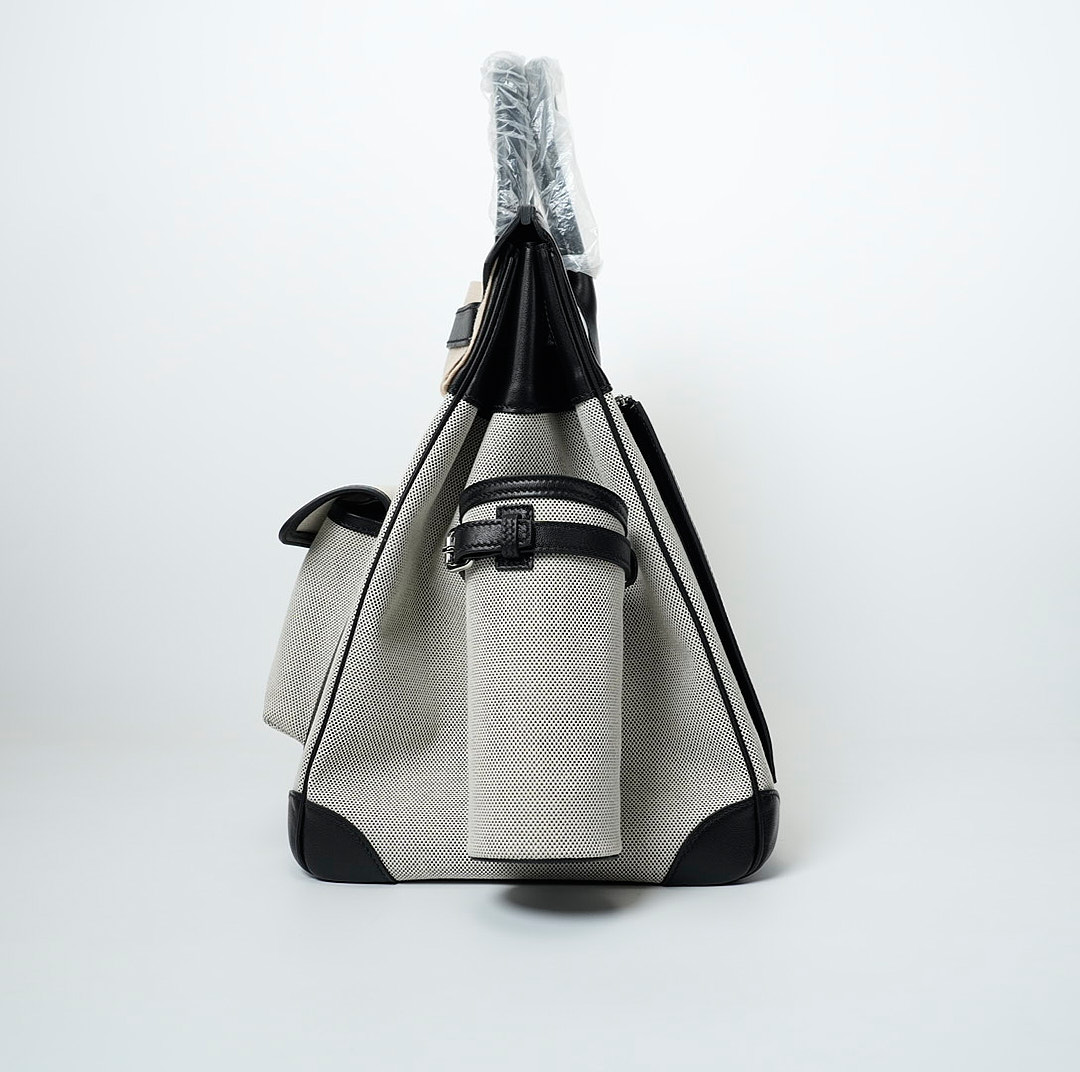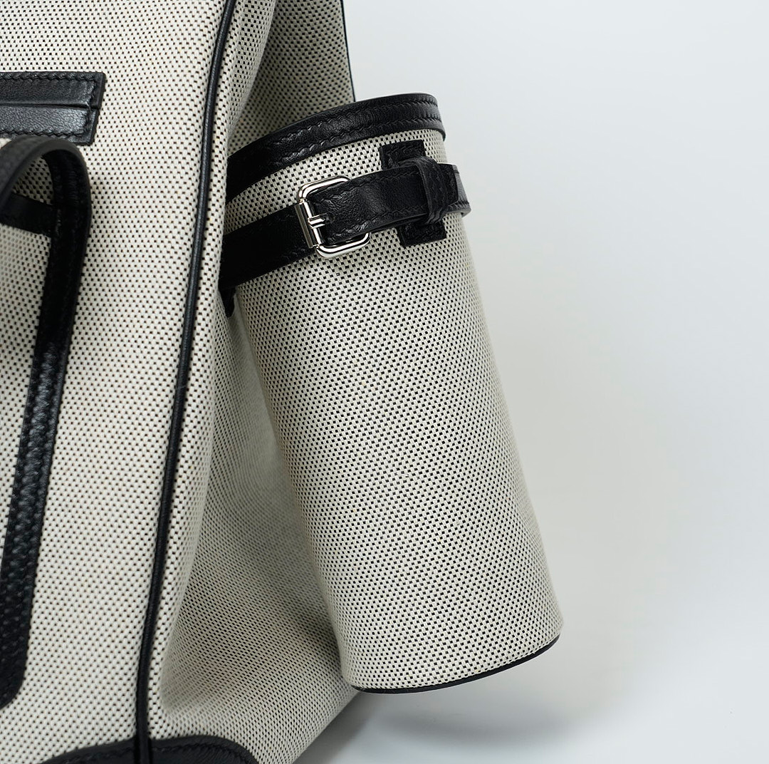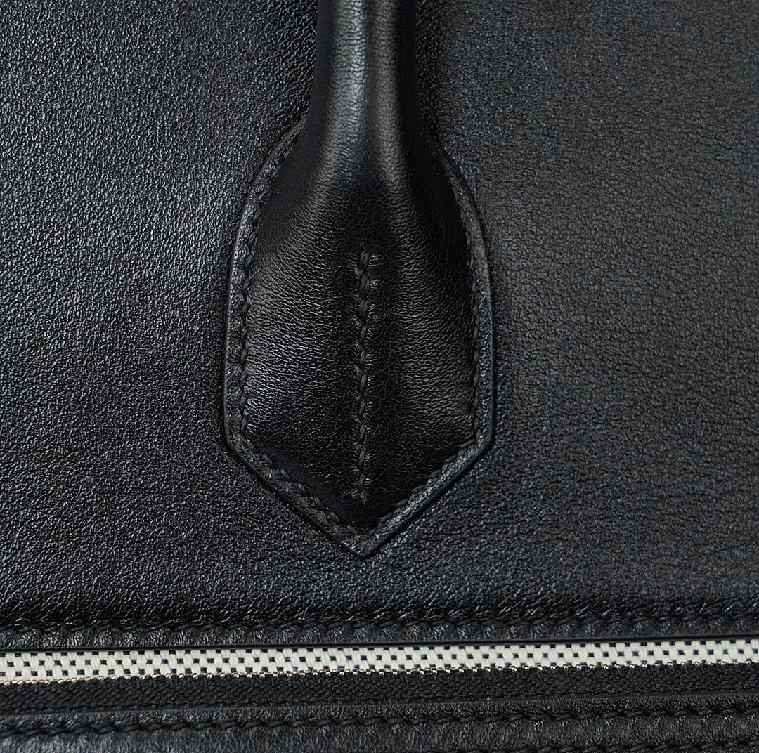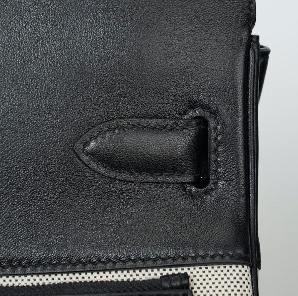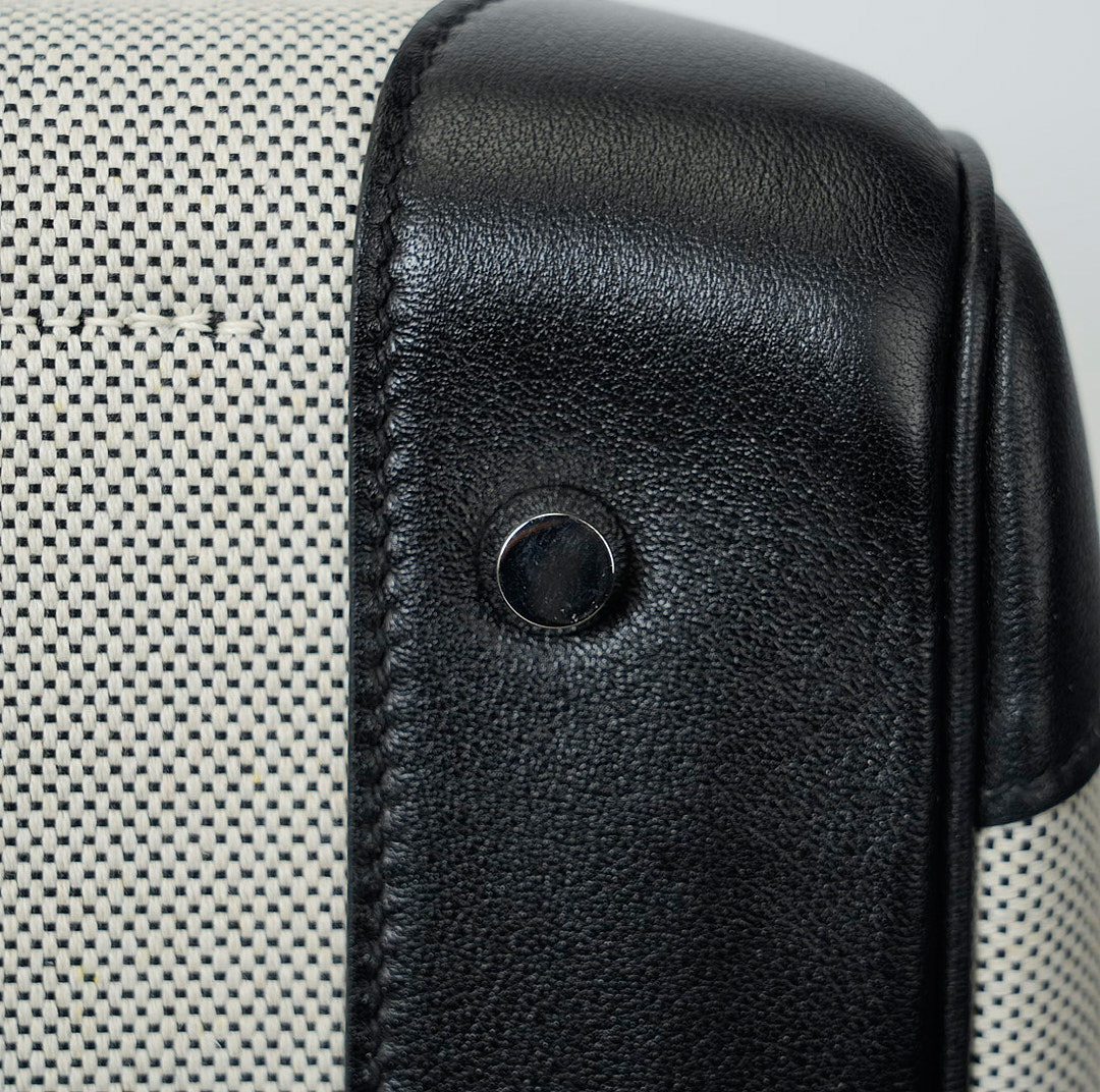 This is a Black Evercalf & Écru Toile Cargo HAC BK 40 in Black. This BK bag is crafted of Black Evercalf leather with Écru Toile Cargo.