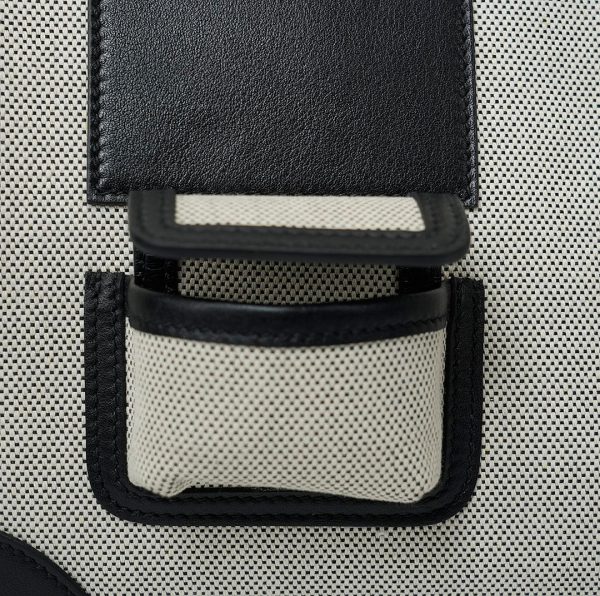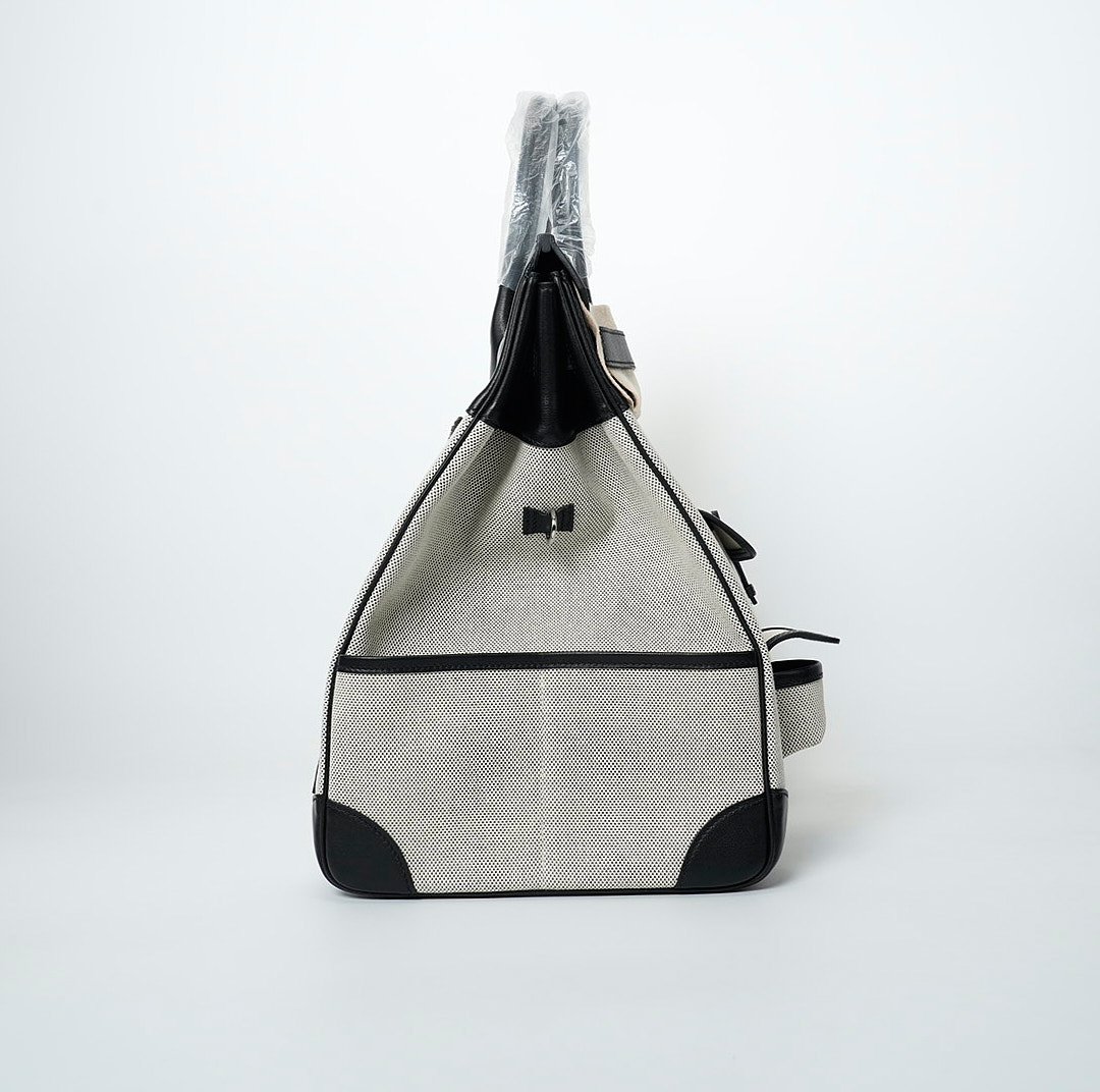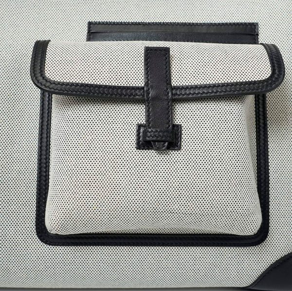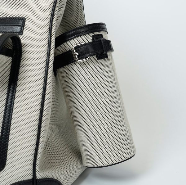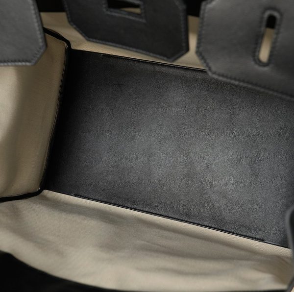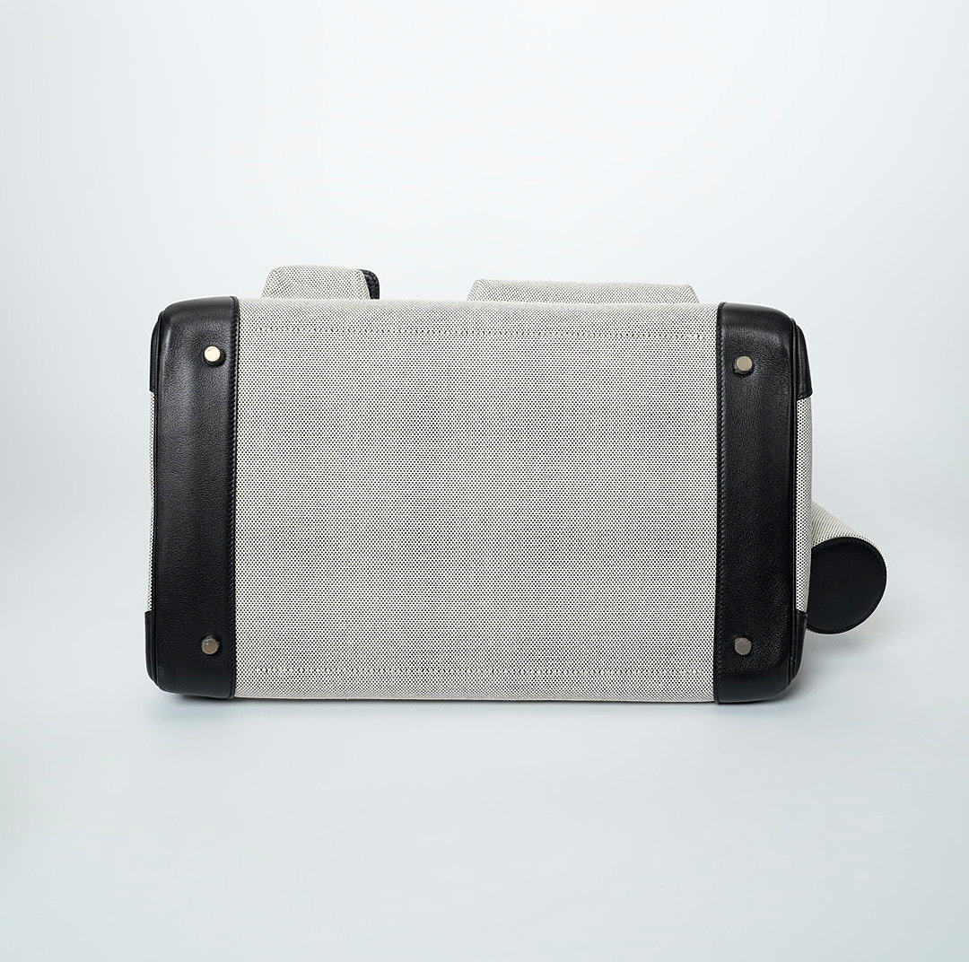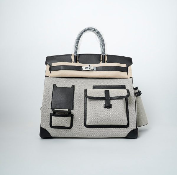 This is a Black Evercalf & Écru Toile Cargo HAC BK 40 in Black. This BK bag is crafted of Black Evercalf leather with Écru Toile Cargo.