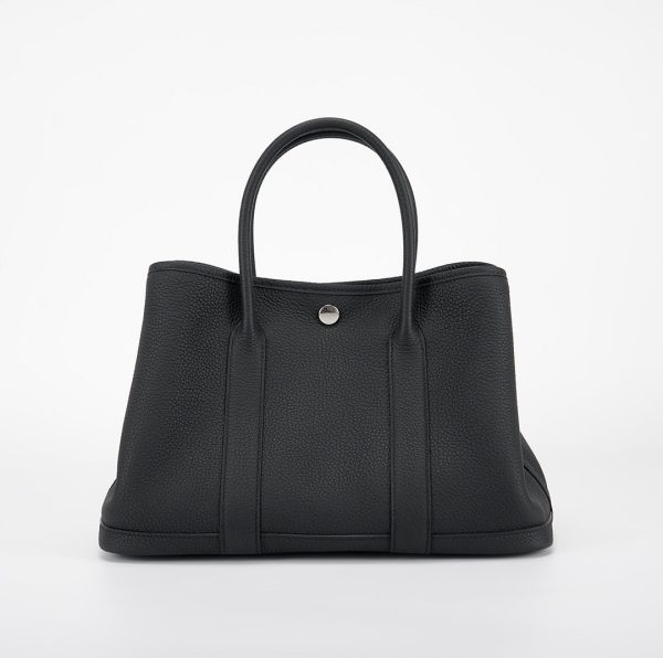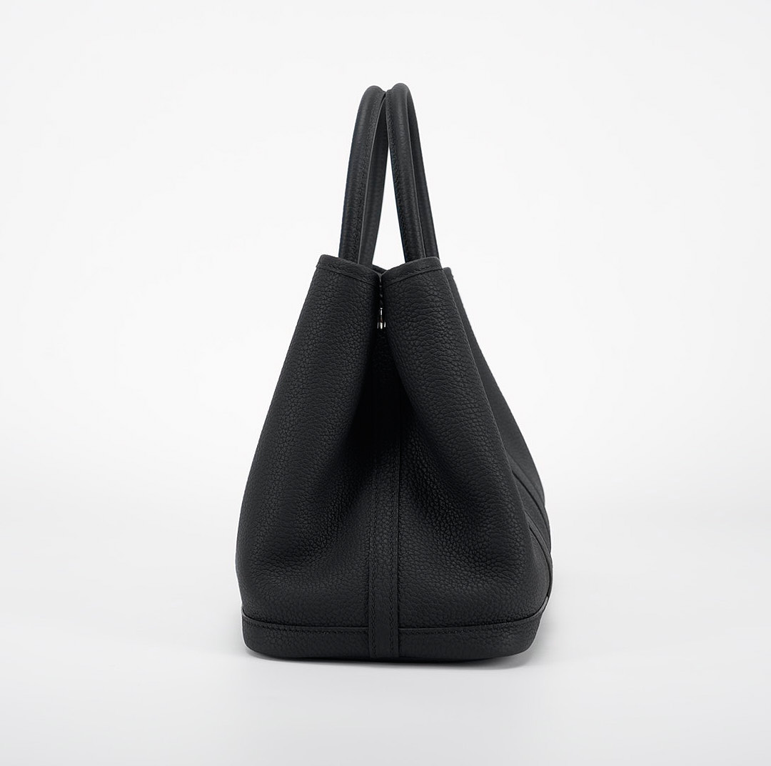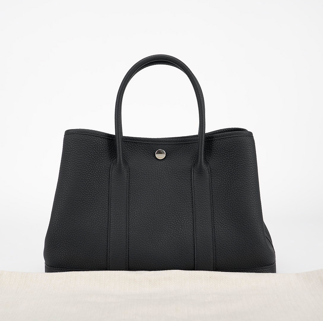 Garden Party 30 in black is a stunning and versatile bag that exudes effortless style and sophistication. Handmade from Negonda leather, known for its durability, making it the perfect choice for an everyday bag. Its spacious interior and sturdy handles make it ideal for both work and play, while the bold tone of black topped with palladium hardware adds a touch of individuality to your ensemble.