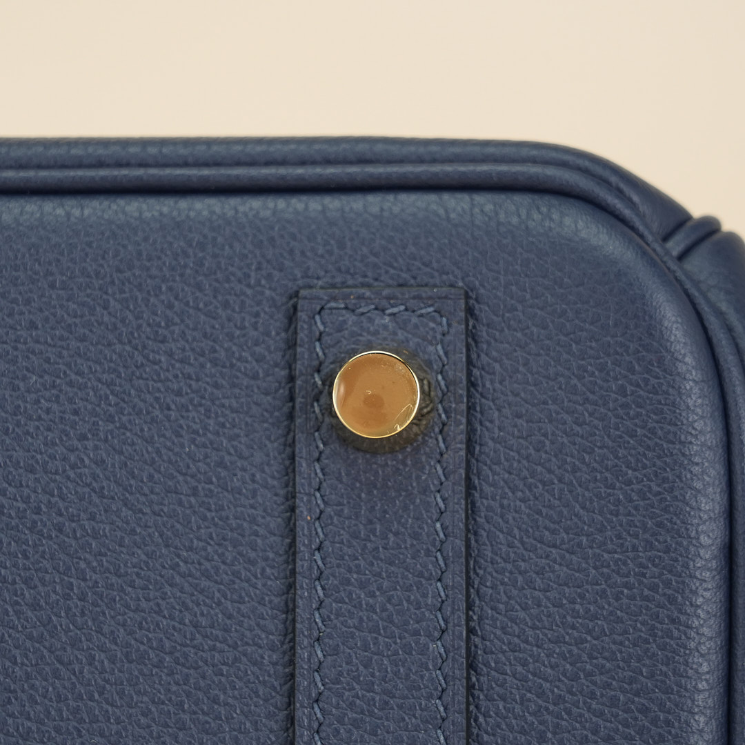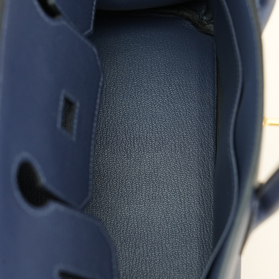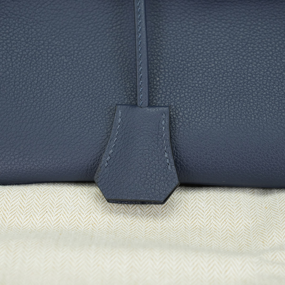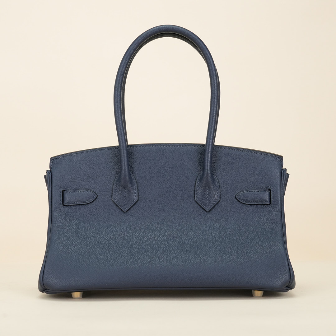 This Shoulder BK 29 is in Bleu Abysse evercolor leather with gold hardware and has tonal stitching, two straps with front toggle closure, clochette with lock and two keys and double rolled handles.