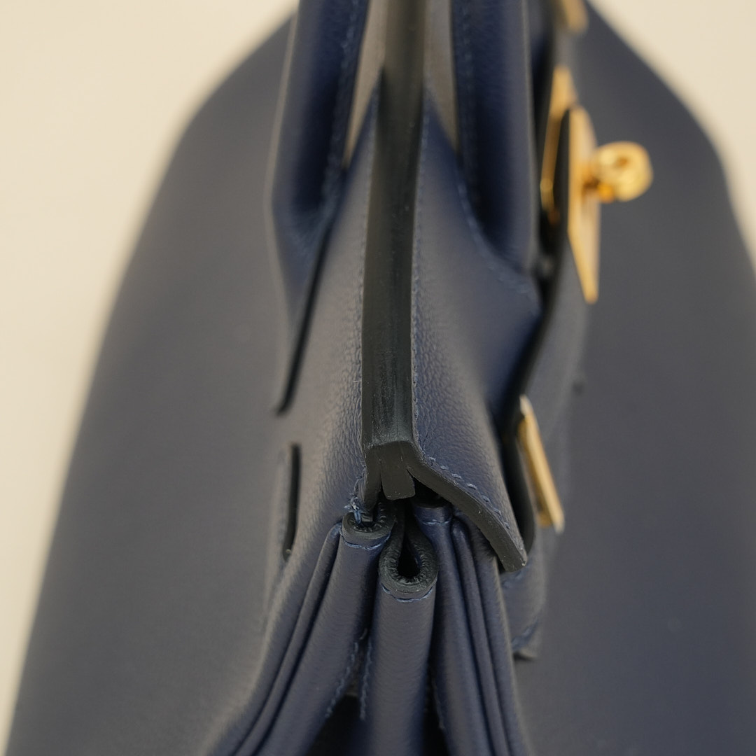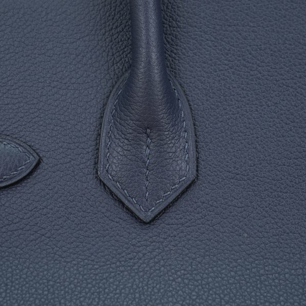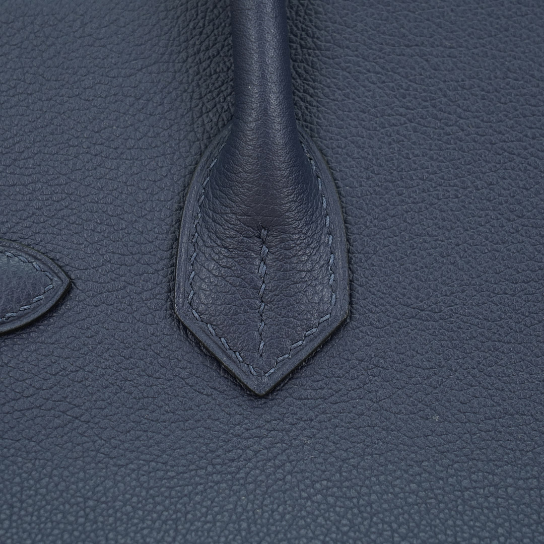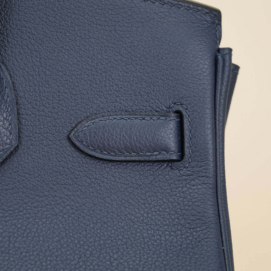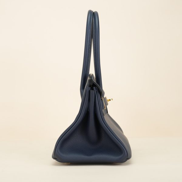 This Shoulder BK 29 is in Bleu Abysse evercolor leather with gold hardware and has tonal stitching, two straps with front toggle closure, clochette with lock and two keys and double rolled handles.