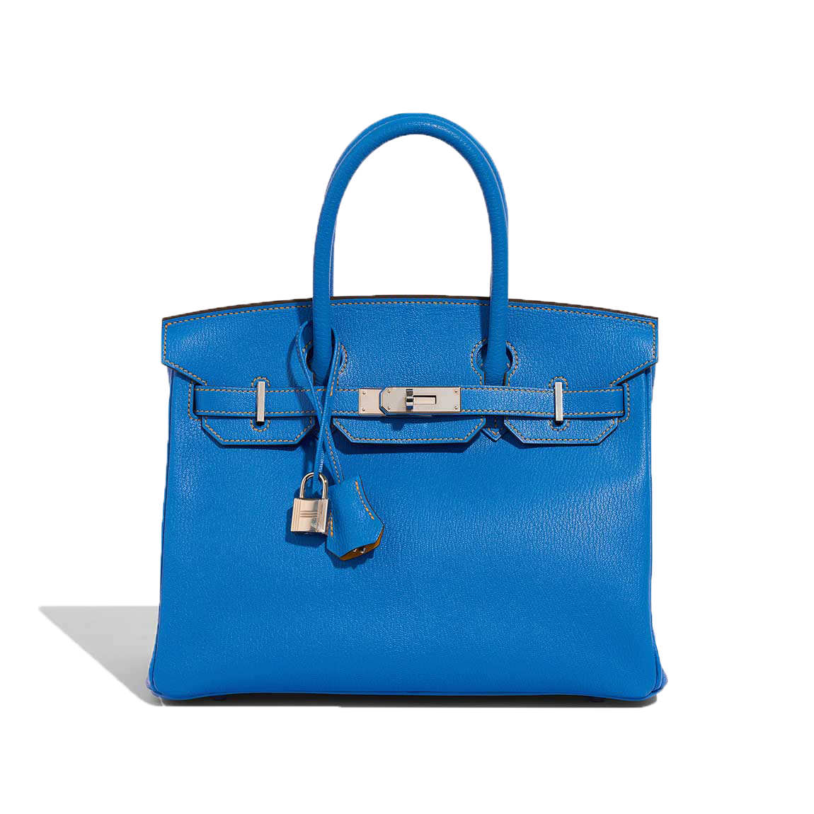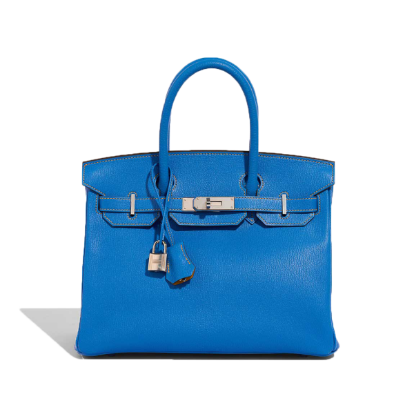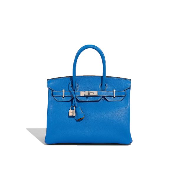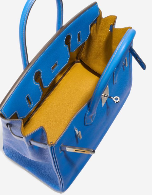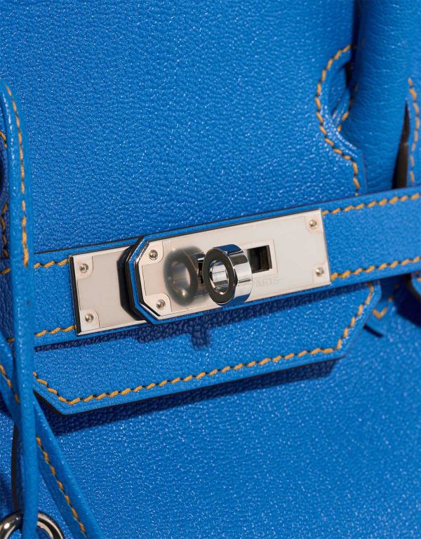 Make heads turn everywhere you go with this vibrant classic. This BK 30 HSS in Mysore goatskin leather in Bleu Hydra, a captivating blue, accented with Jaune Ambre stitching and interior, as well as palladium hardware, showcases the exceptional craftsmanship of the Hanyans studio.