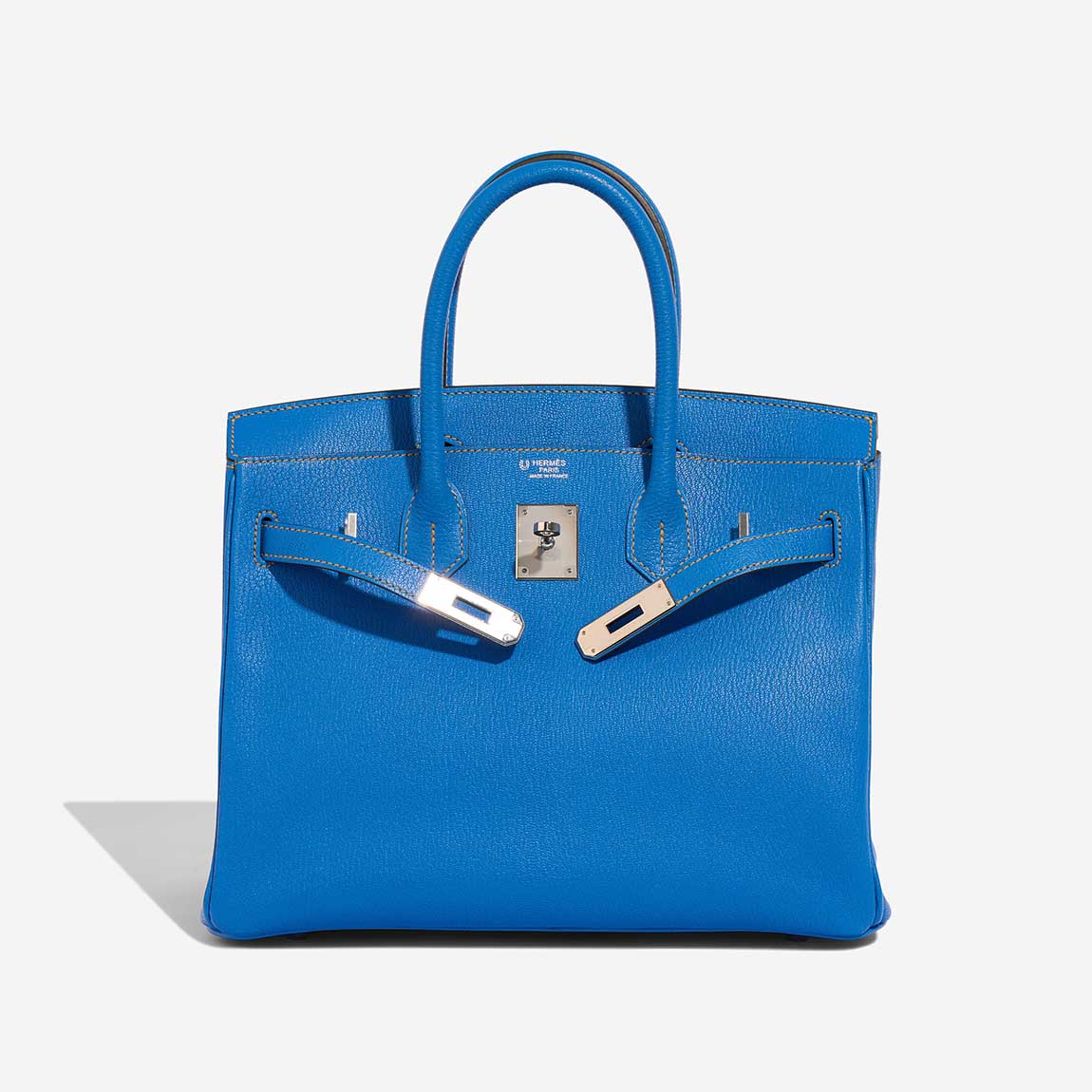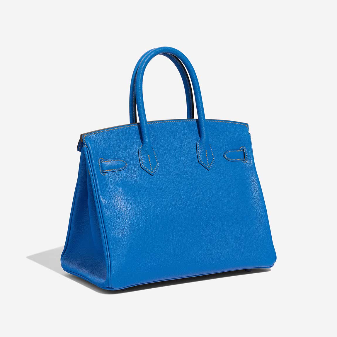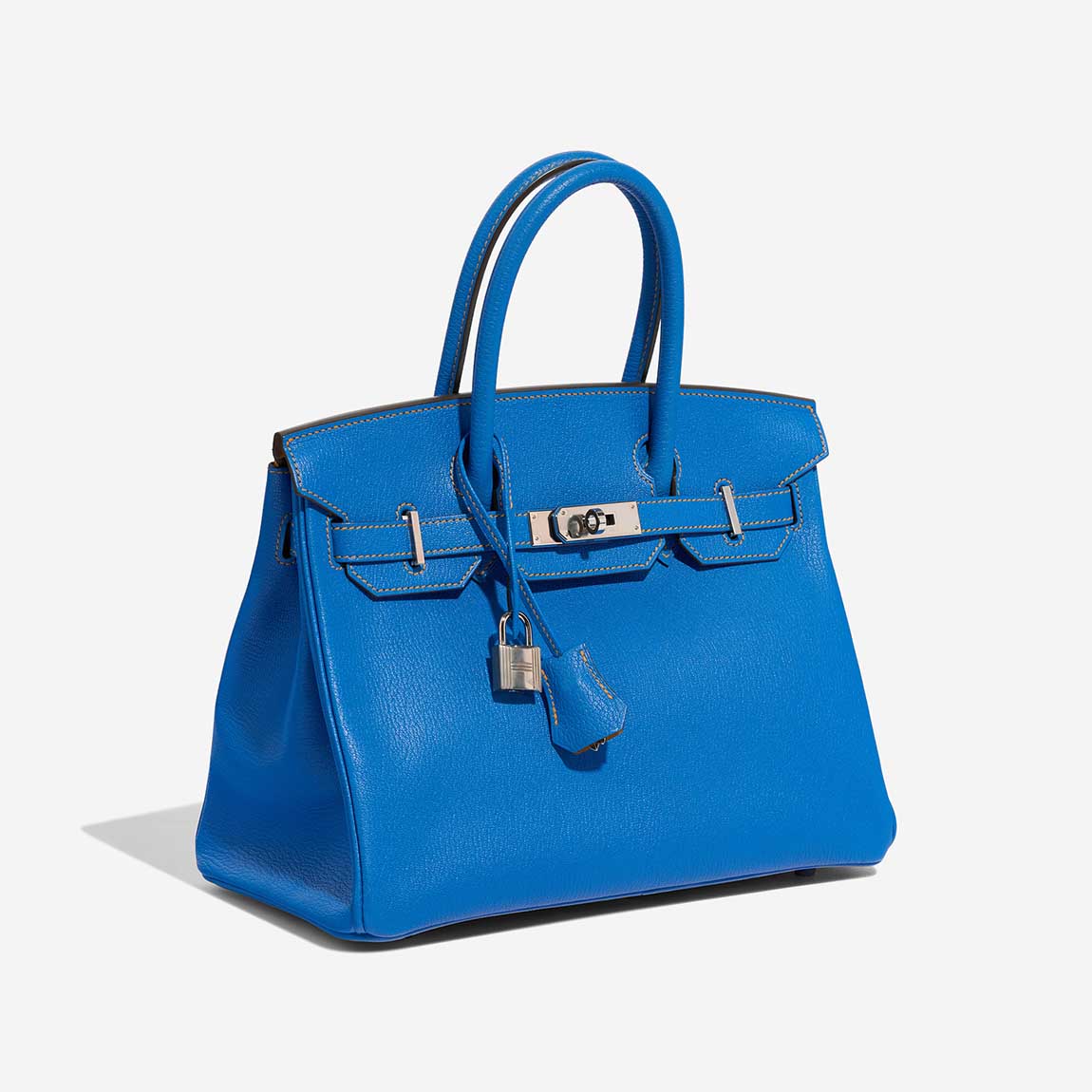 Make heads turn everywhere you go with this vibrant classic. This BK 30 HSS in Mysore goatskin leather in Bleu Hydra, a captivating blue, accented with Jaune Ambre stitching and interior, as well as palladium hardware, showcases the exceptional craftsmanship of the Hanyans studio.