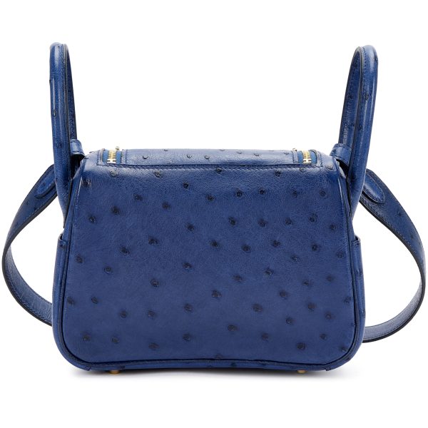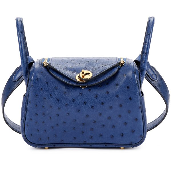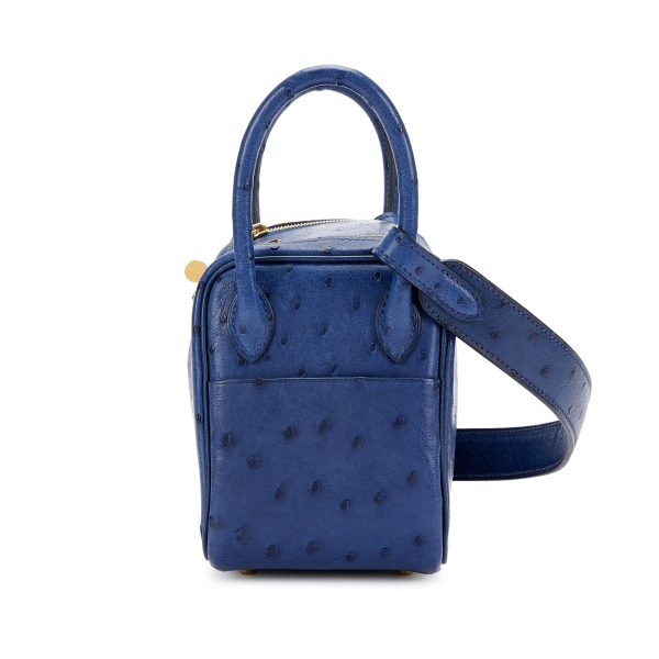 Bleu Saphir Ostrich Mini LD 20 Gold Hardware,The interior is lined with Bleu leather,Includes felt, carebooklet,raincoat, dust bag and box