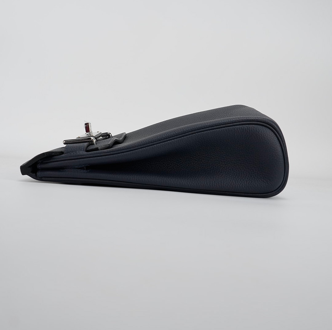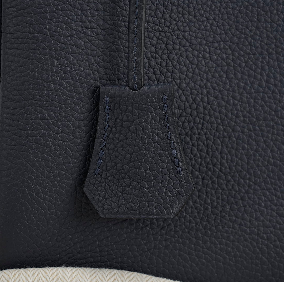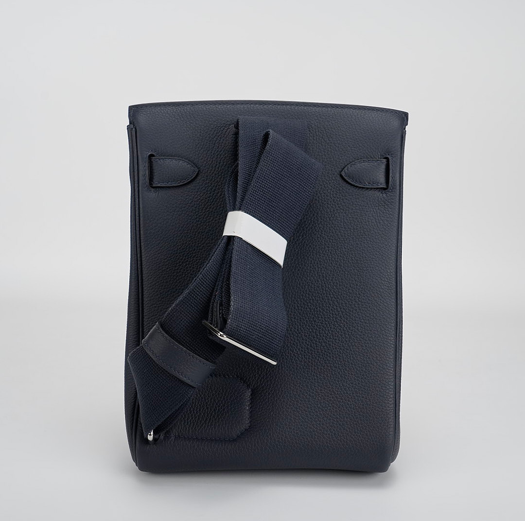This is a Togo Hac A Dos Backpack. This stylish backpack is crafted of calfskin leather with a cross-over flap, polished palladium hardware including a strap anchors, and long adjustable canvas shoulder straps. The flap opens to a compact leather interior with a patch pocket.
