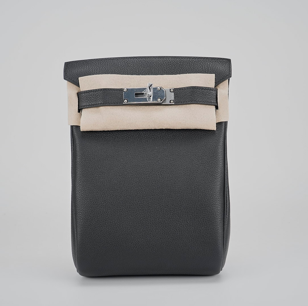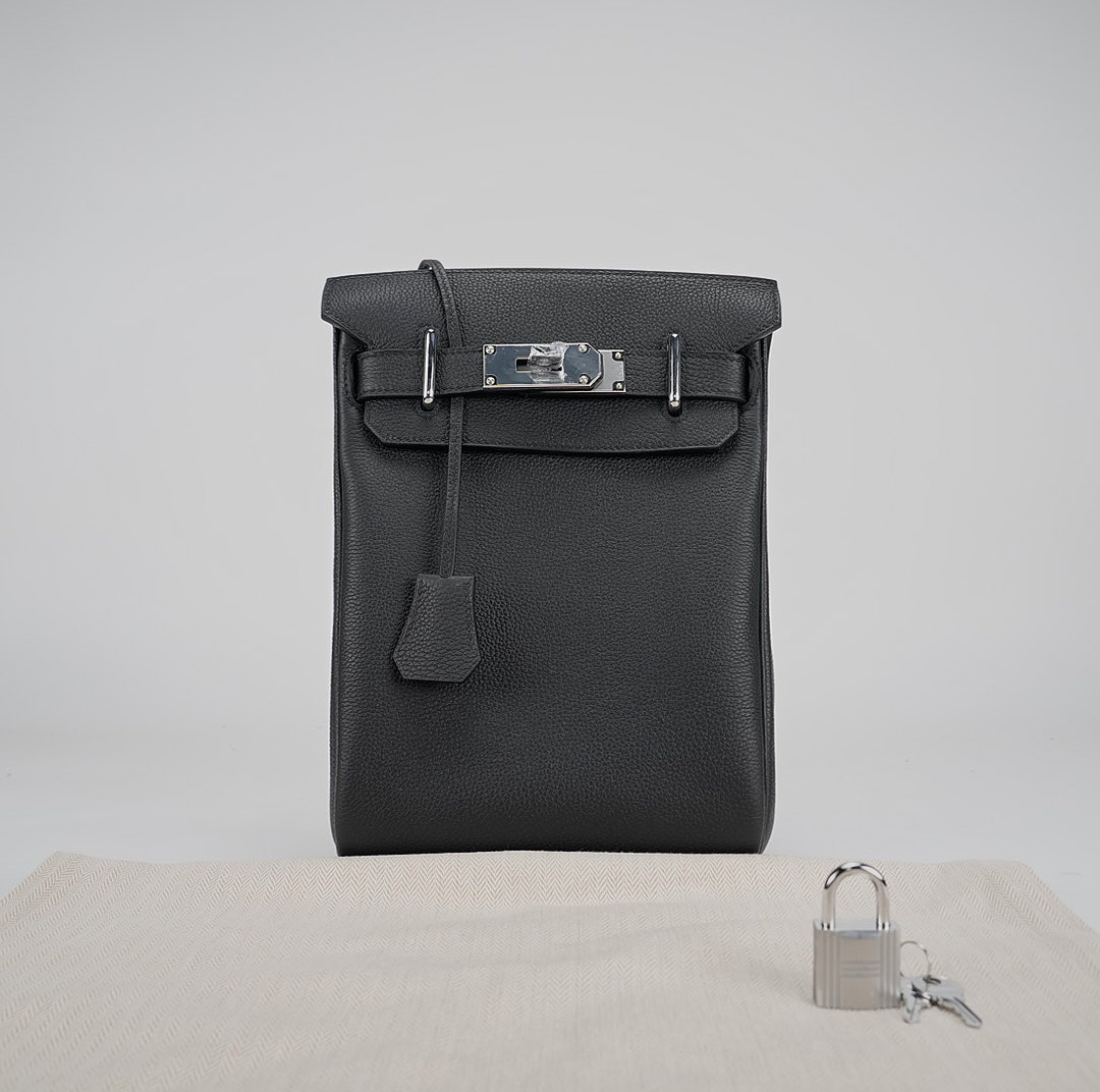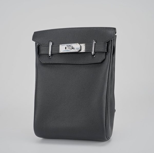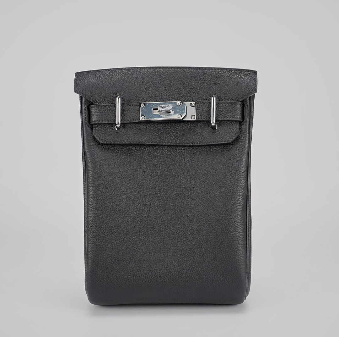 This is a Togo Hac A Dos Backpack. This stylish backpack is crafted of calfskin leather with a cross-over flap, polished palladium hardware including a turn lock, strap anchors, and long adjustable canvas shoulder straps. The flap opens to a compact leather interior with a patch pocket.