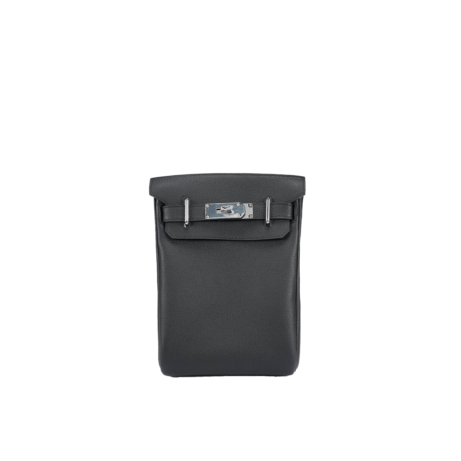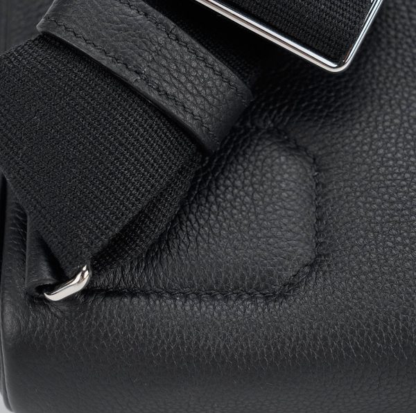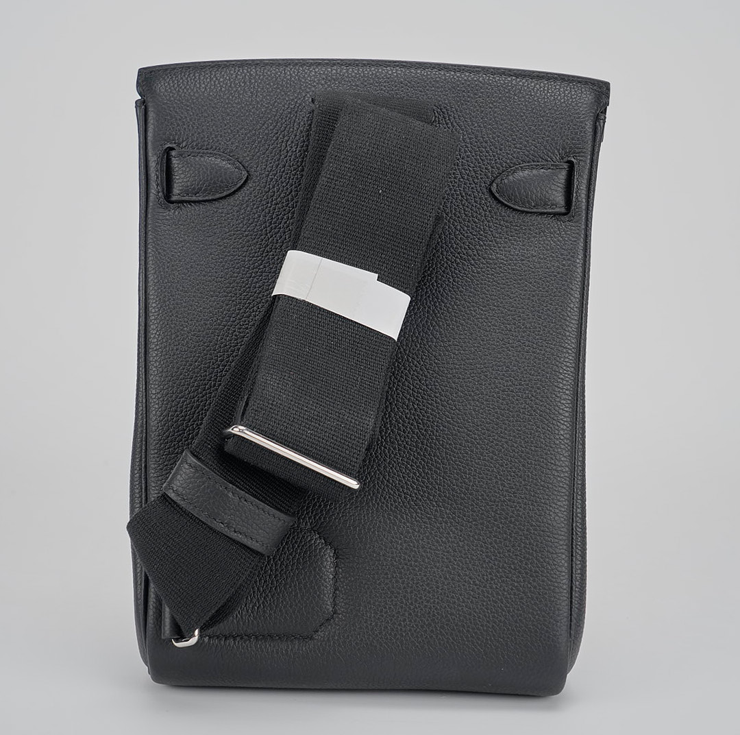 This is a Togo Hac A Dos Backpack. This stylish backpack is crafted of calfskin leather with a cross-over flap, polished palladium hardware including a turn lock, strap anchors, and long adjustable canvas shoulder straps. The flap opens to a compact leather interior with a patch pocket.