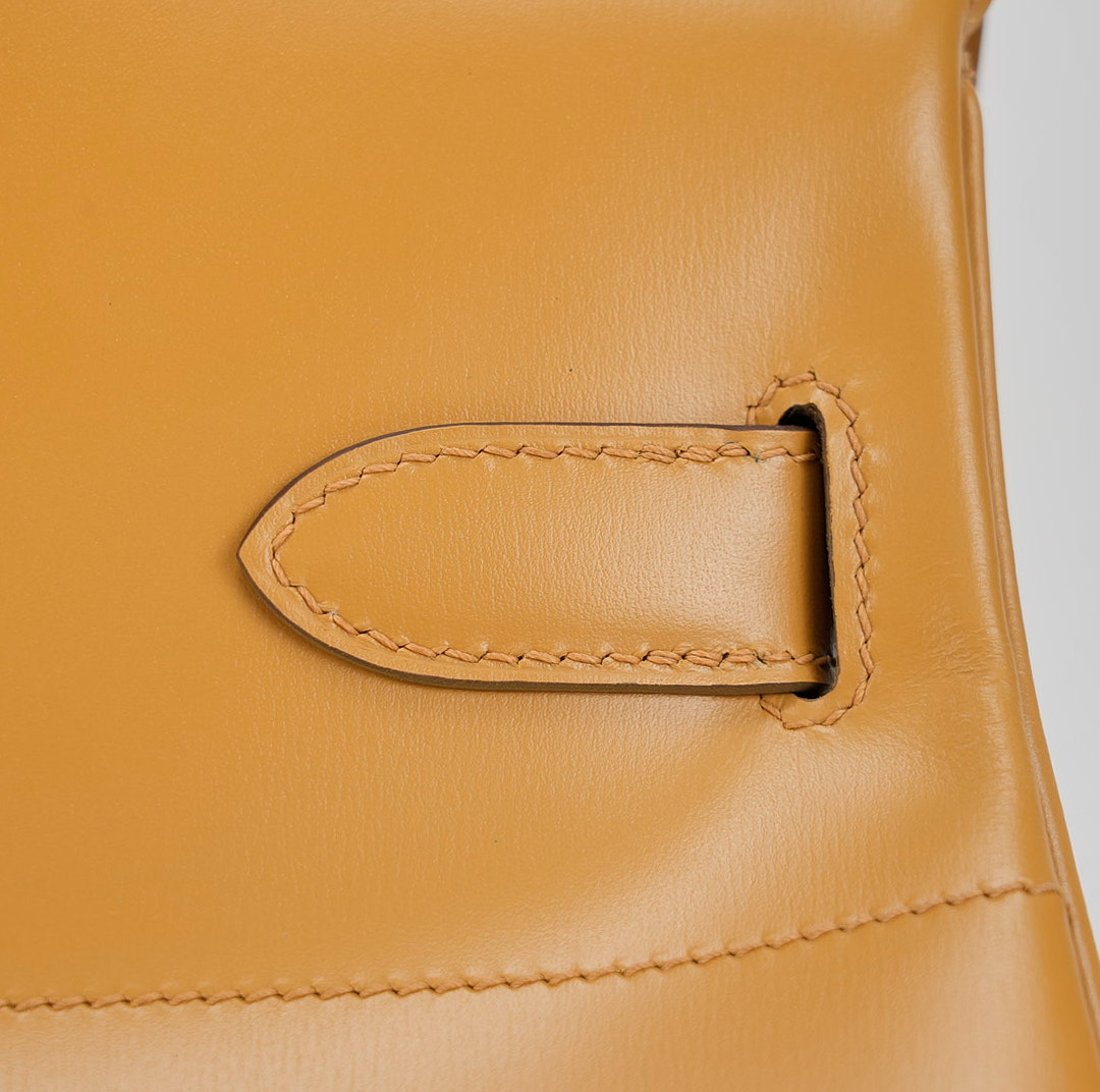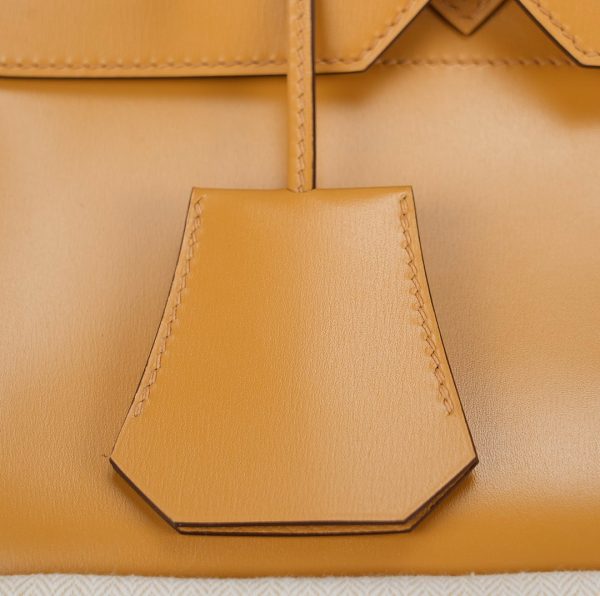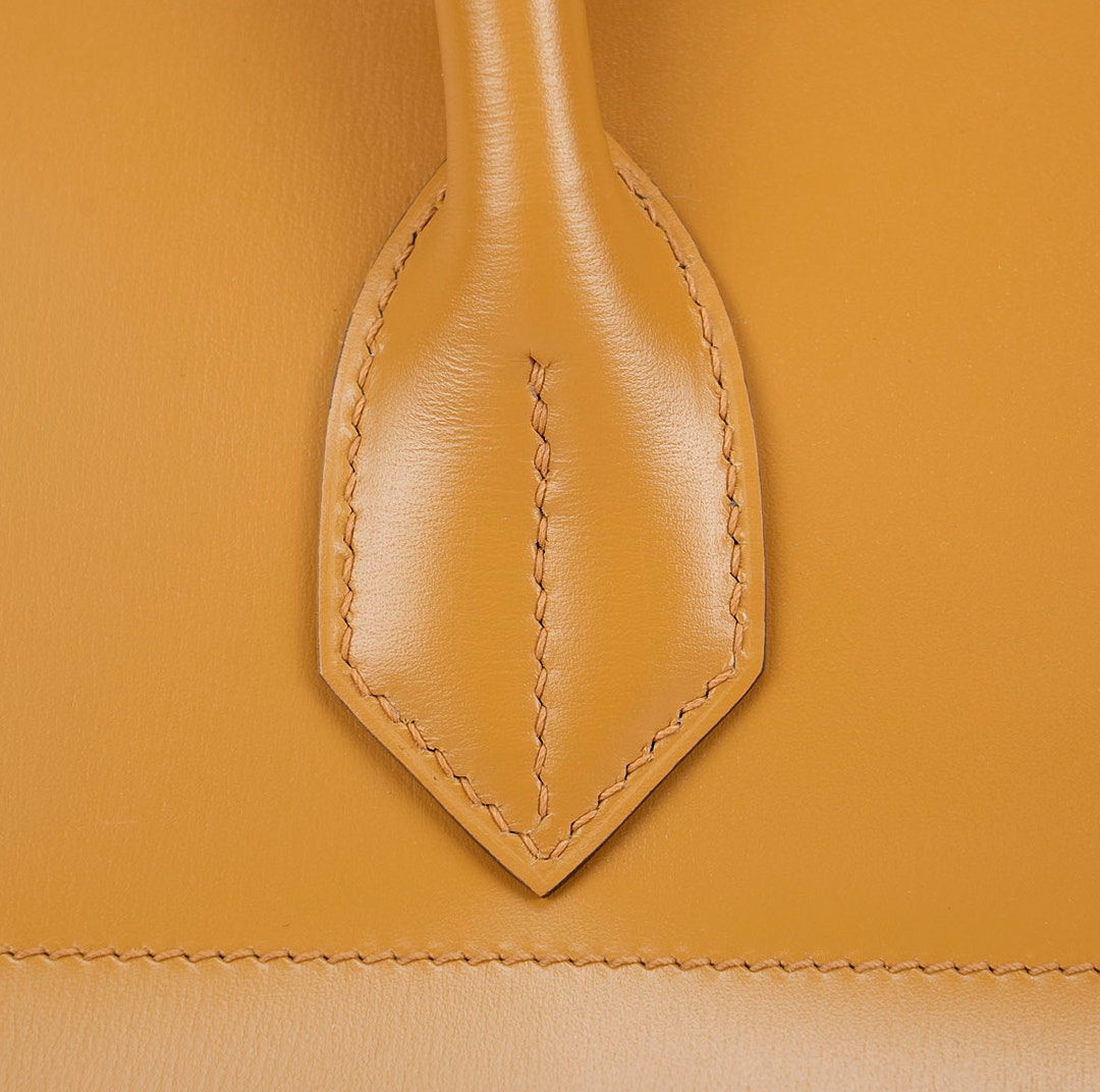 Box Leather JPG Shoulder BK 42 in Possiere. This stylish tote is crafted of yellowish leather and features long rolled leather top handles for carrying at the shoulder, a front leather flap and palladium silver plated hardware including a squared plated silver turn lock. The flap opens to a matching leather interior with zipper and patch pockets.
