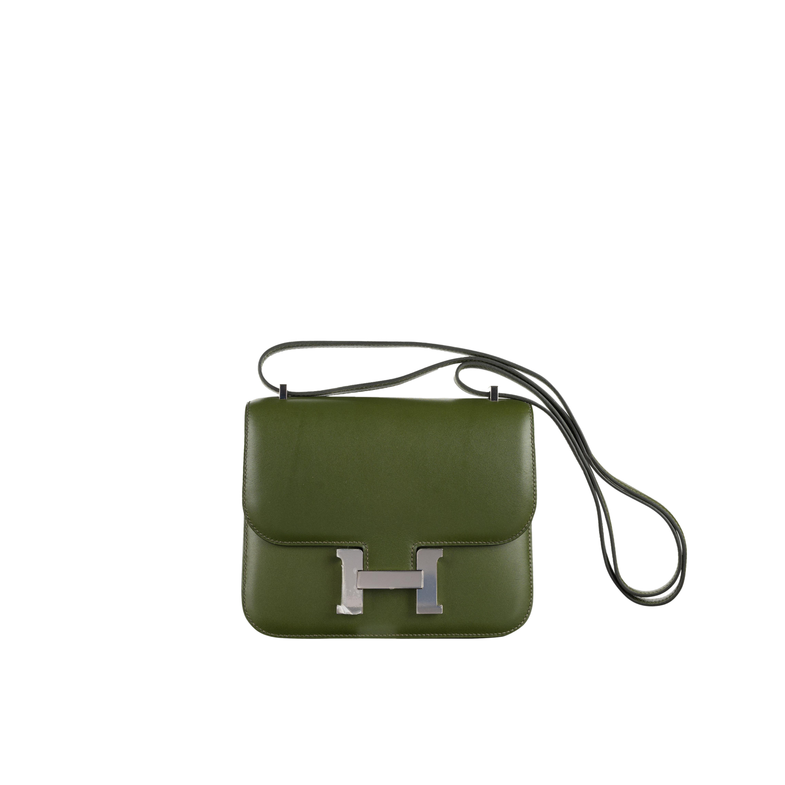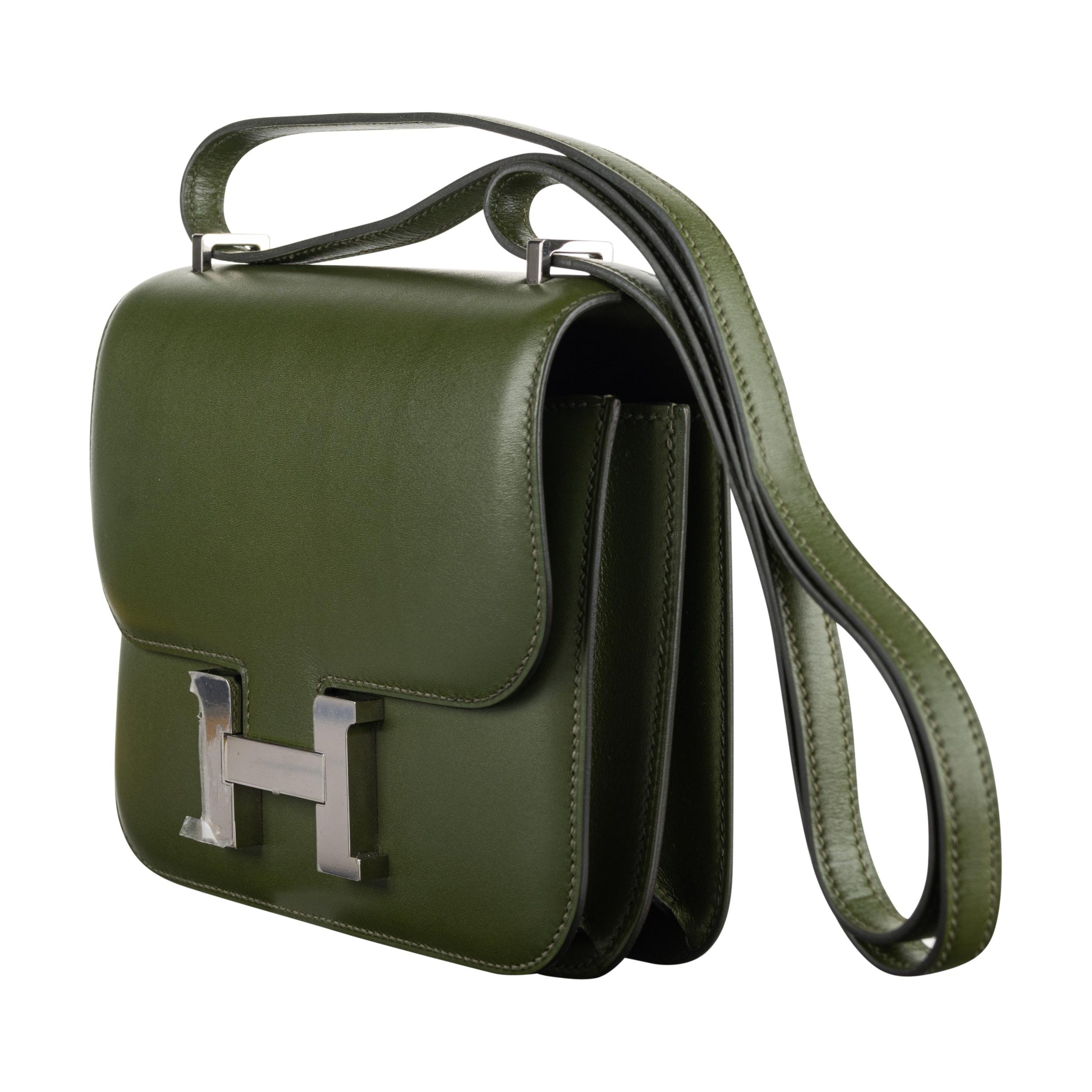 This Constance is in Canopee Swift with palladium hardware, has tonal stitching, a metal “H” snap lock closure and adjustable shoulder strap. The interior is lined with Canopee lambskin and has an open pocket on the front wall, a center divide.