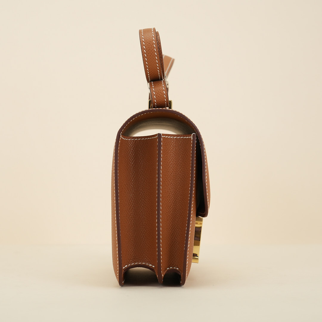 Handcrafted from scratch-resistant Epsom leather in Gold, this Constance 18 is the perfect cross-body bag. With sleek minimalist lines, a long shoulder strap and elongated ‘H’ clasp, it is practical yet stylish in equal measure. Organize your phone, cardholder and lipstick in the compartments inside, and match your jewelery to the oversized gold-plated buckle.
