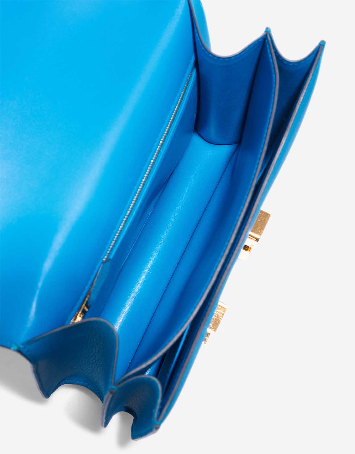 For clean lines and discreet luxury, the Constance wins out – it has a sleek, simple ‘60s silhouette that was adored by the likes of Jackie O. This stunning Constance 24 was handcrafted from ultra-soft Evercolor leather in Bleu Zanzibar, topped with gold-plated hardware.