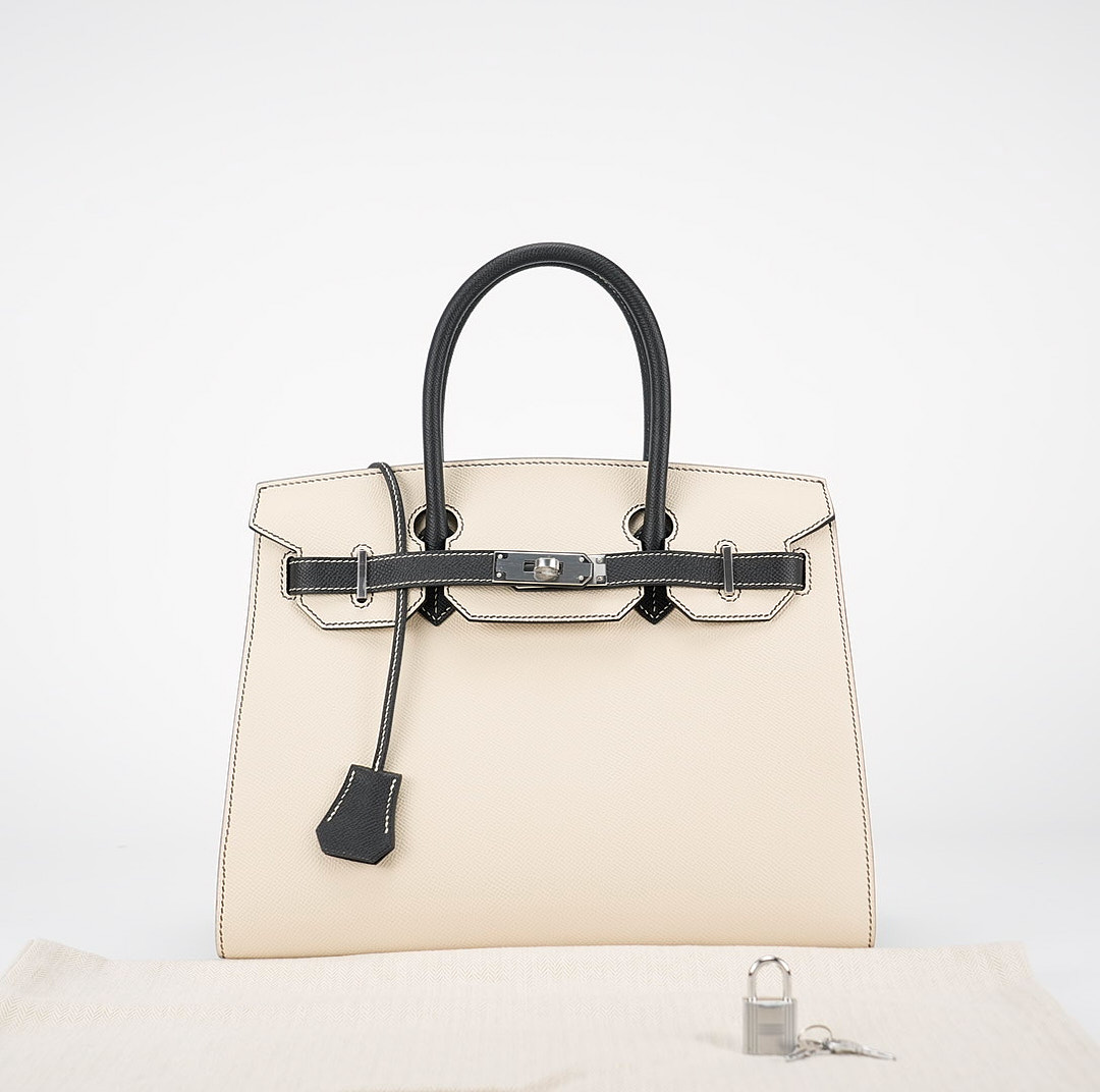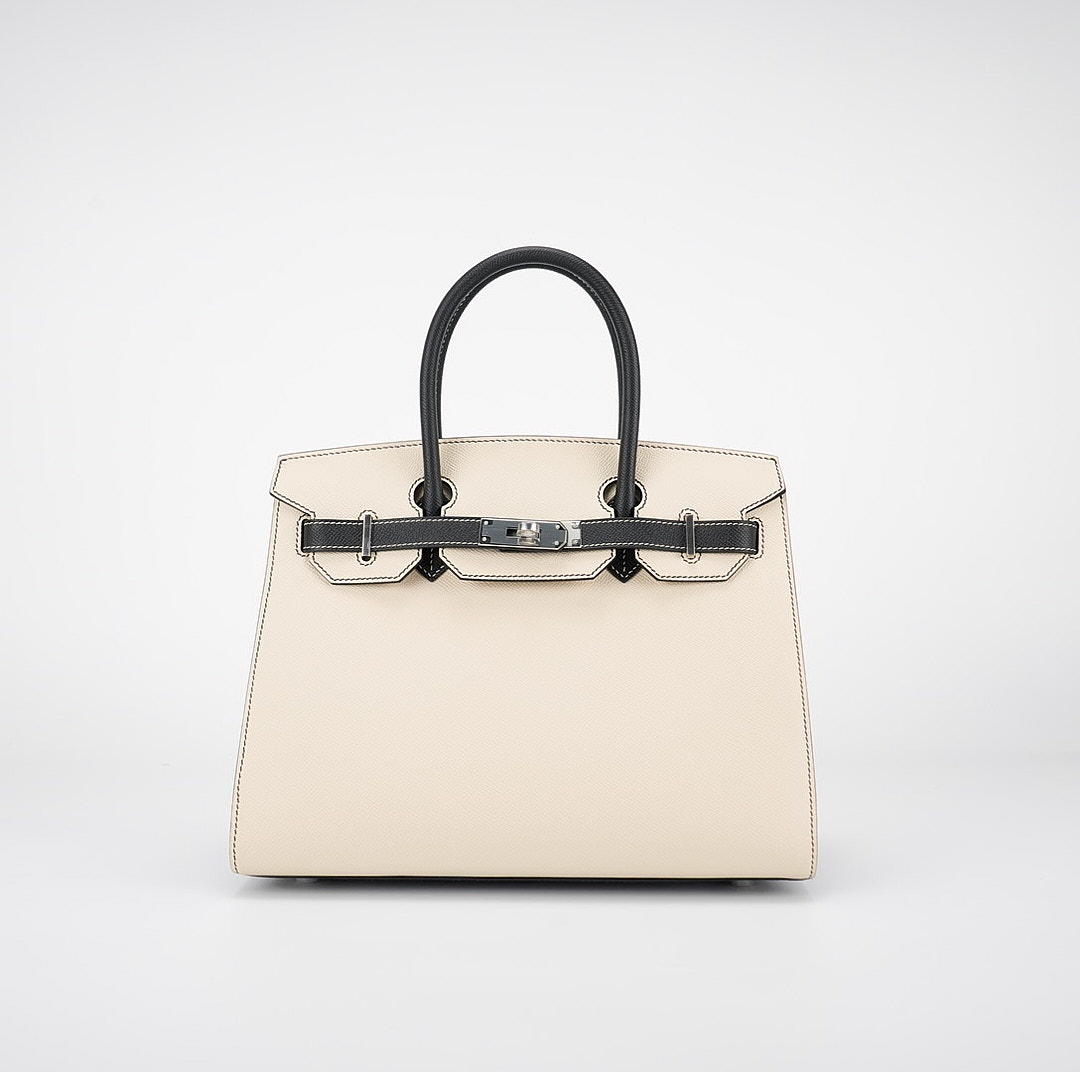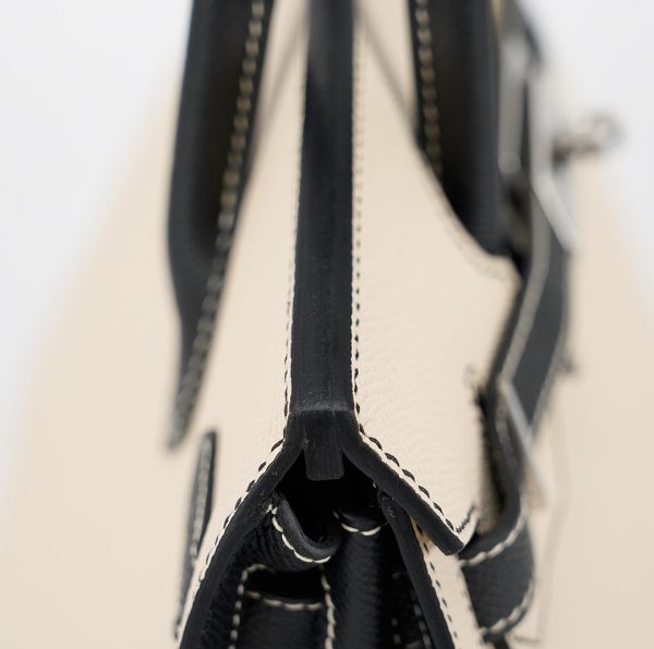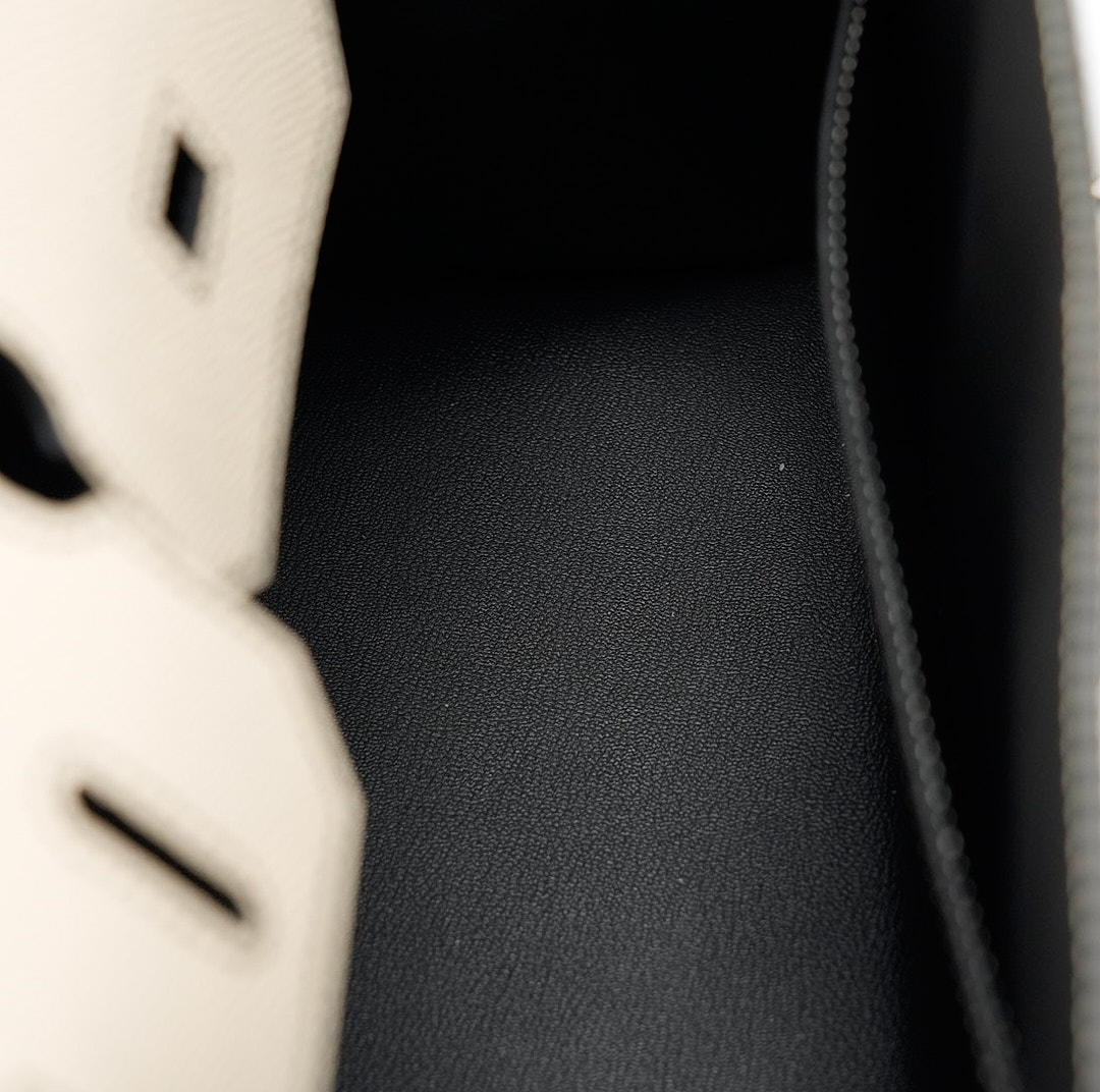 This BK 30 is crafted in sellier epsom leather with craie and black color. The stunning special combination with Palladium hardware makes this piece ‘a one of a kind’.