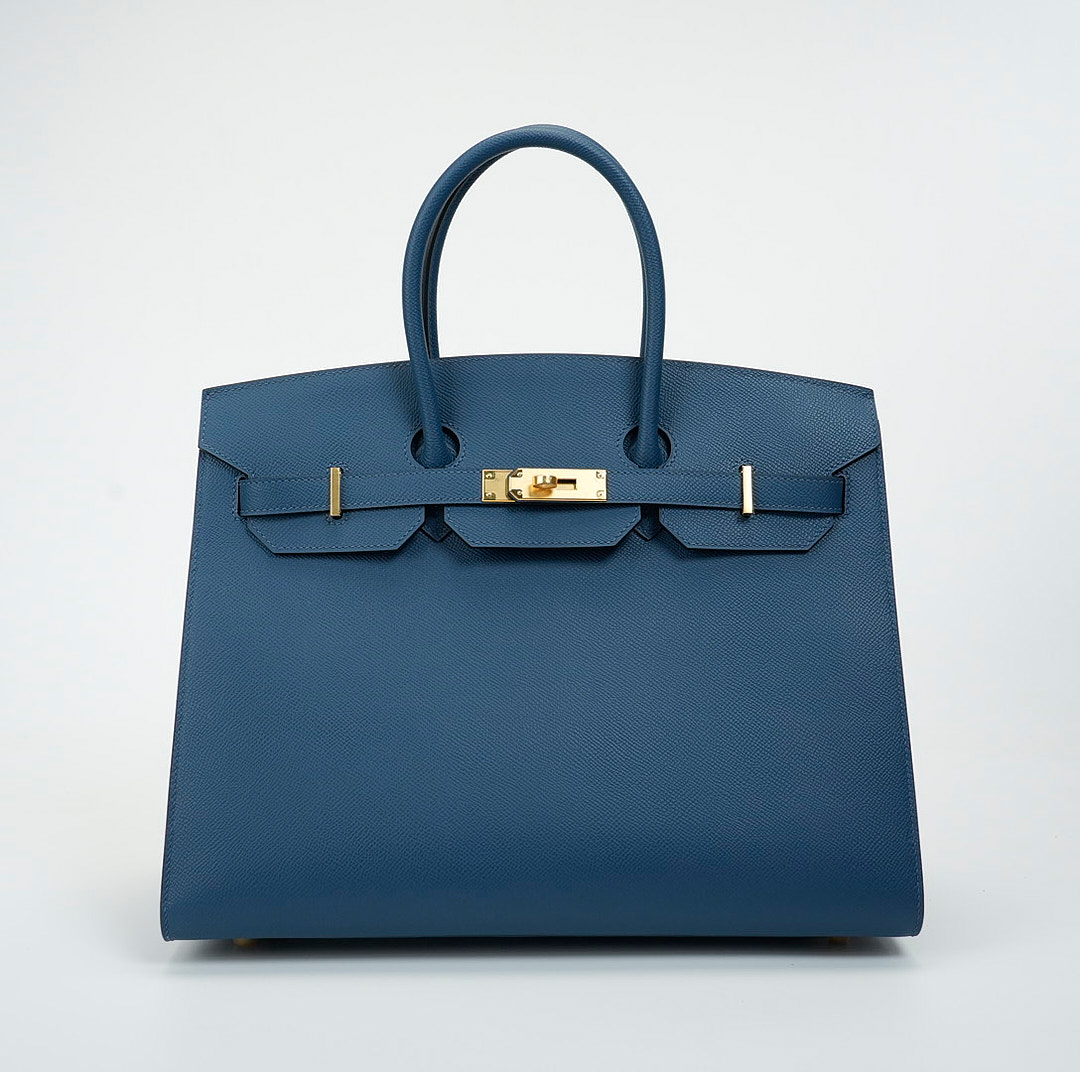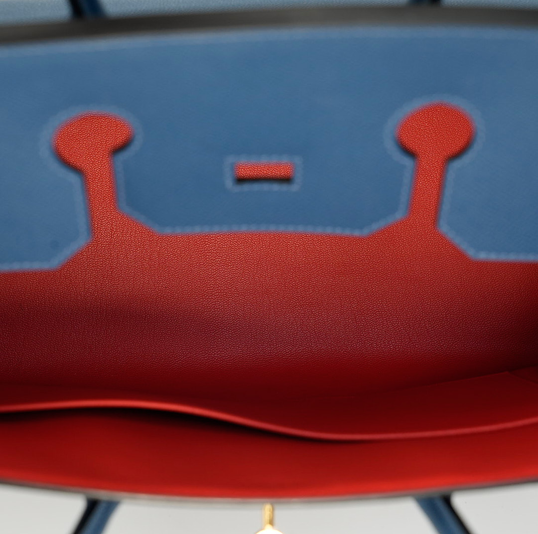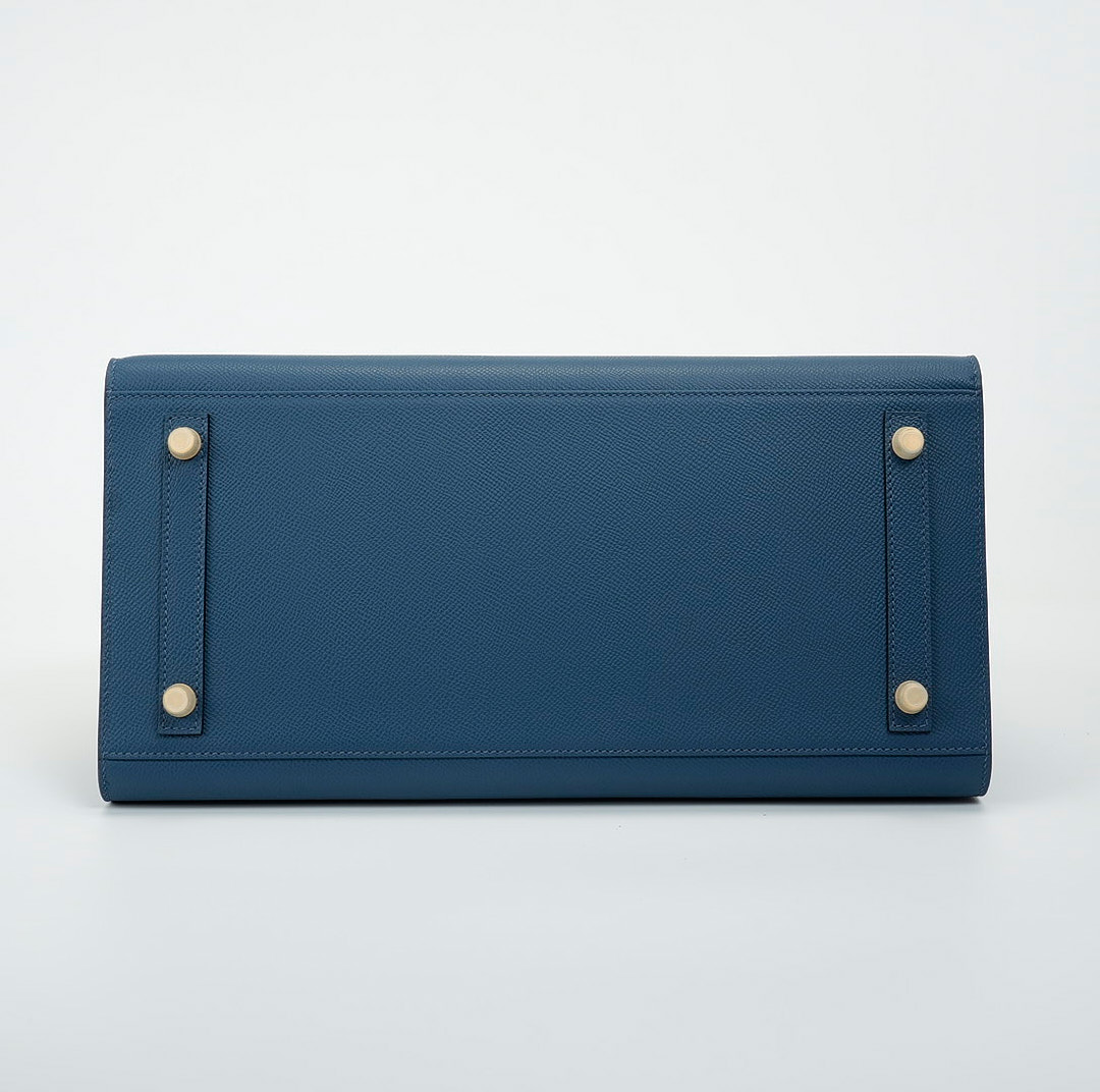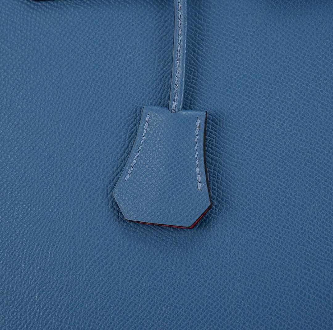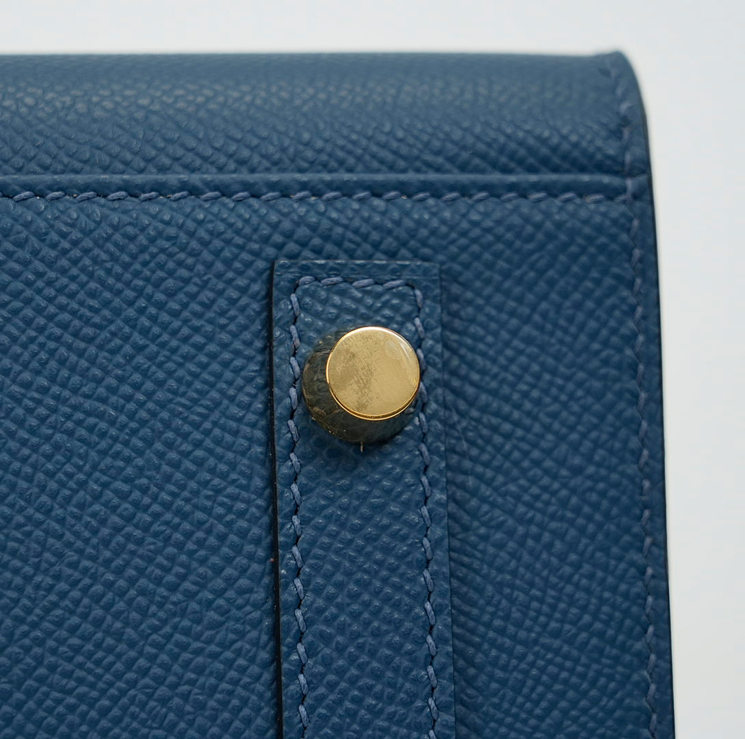 This BK 35 is handcrafted from Epsom in Bleu Agate with Rouge Casaque interior. The embossed leather stands out as a low-maintenance favorite – it holds shape extremely well and is resistant to scratching. The bright navy shade and gold hardware are best paired with matching jewelry and tailored neutrals.
