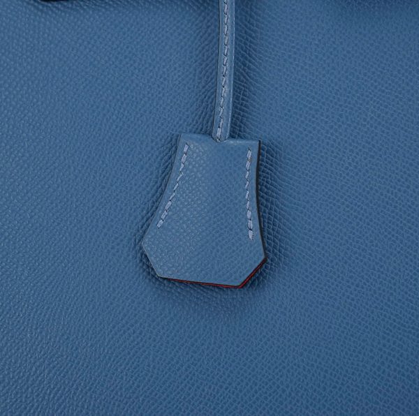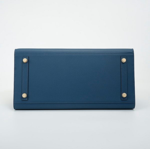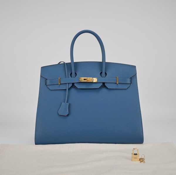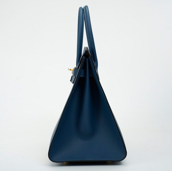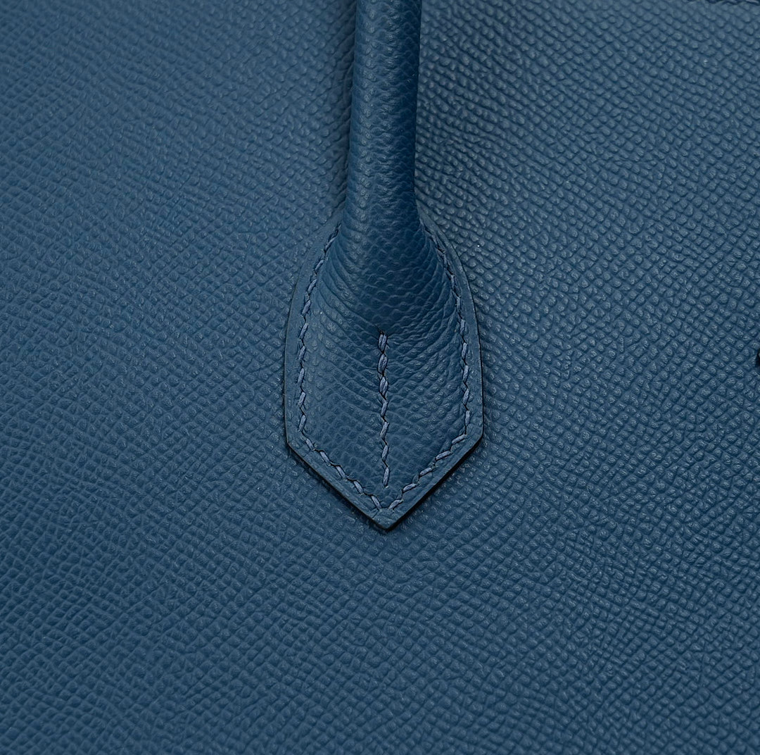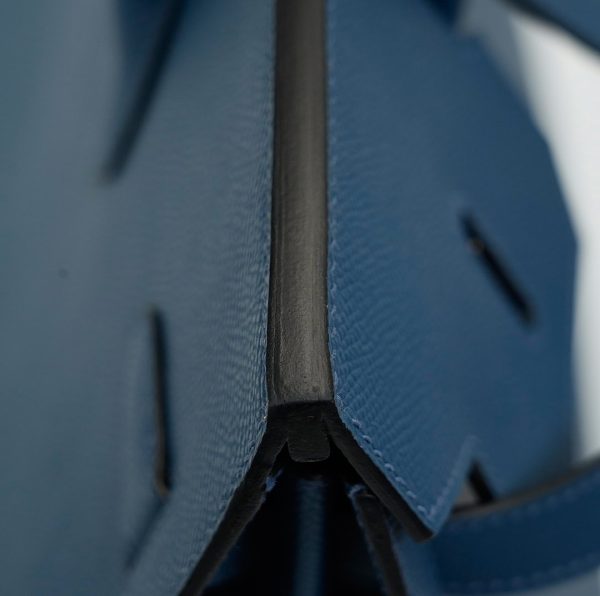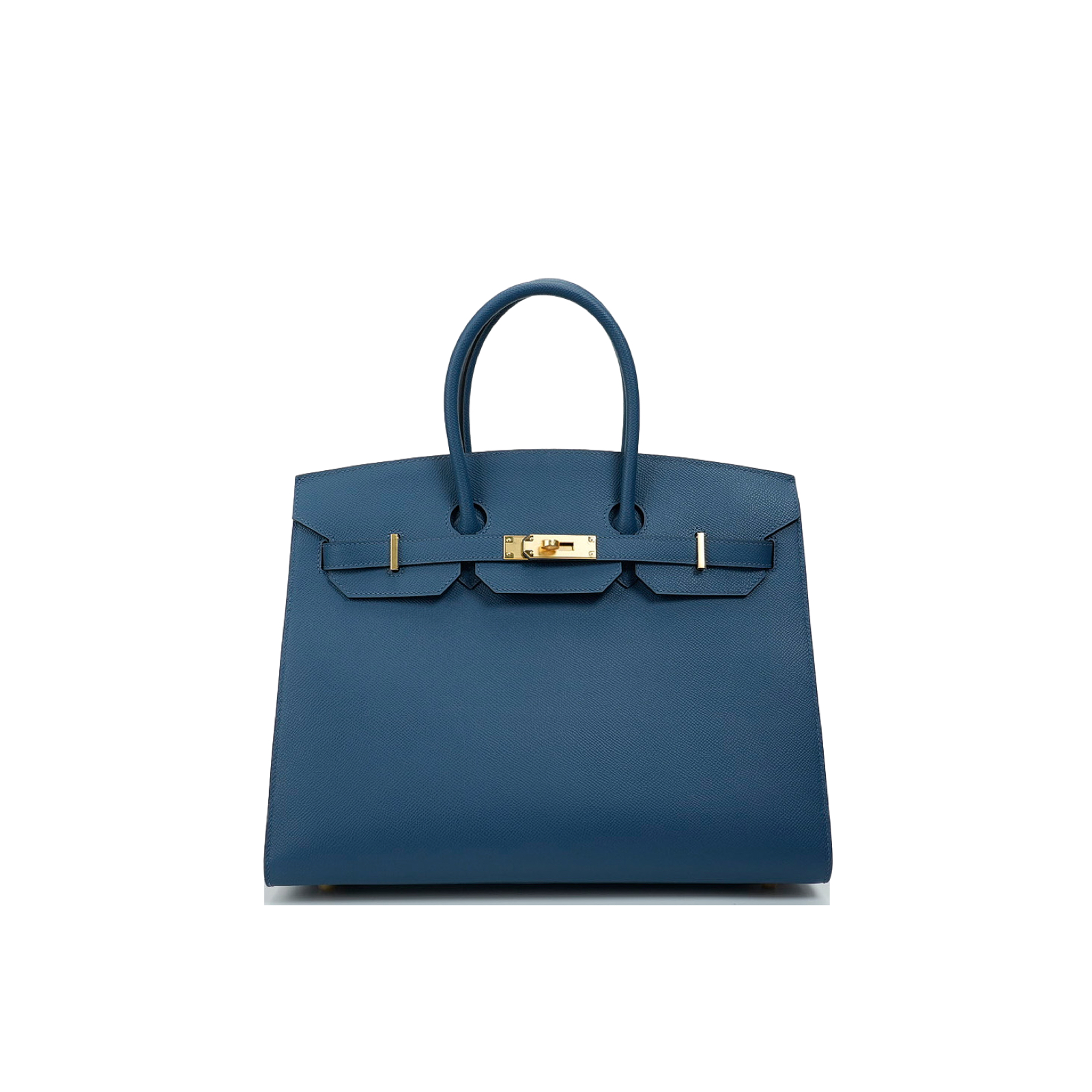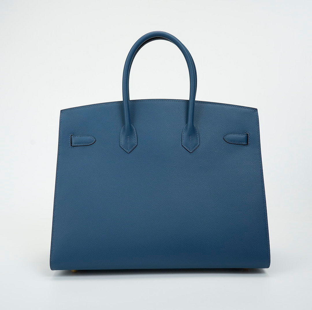 This BK 35 is handcrafted from Epsom in Bleu Agate with Rouge Casaque interior. The embossed leather stands out as a low-maintenance favorite – it holds shape extremely well and is resistant to scratching. The bright navy shade and gold hardware are best paired with matching jewelry and tailored neutrals.