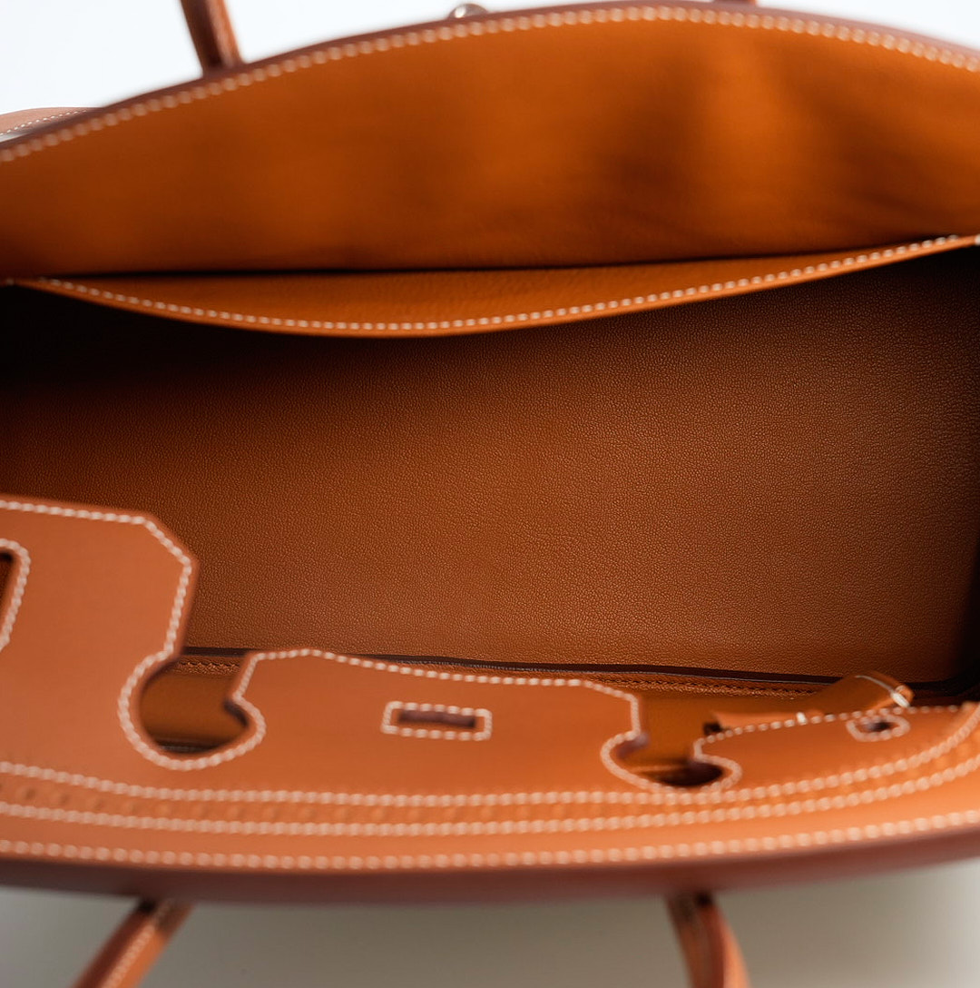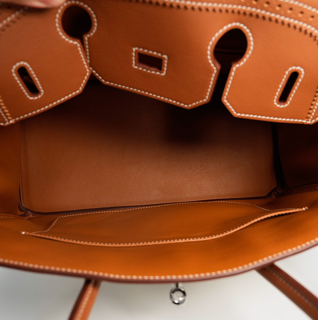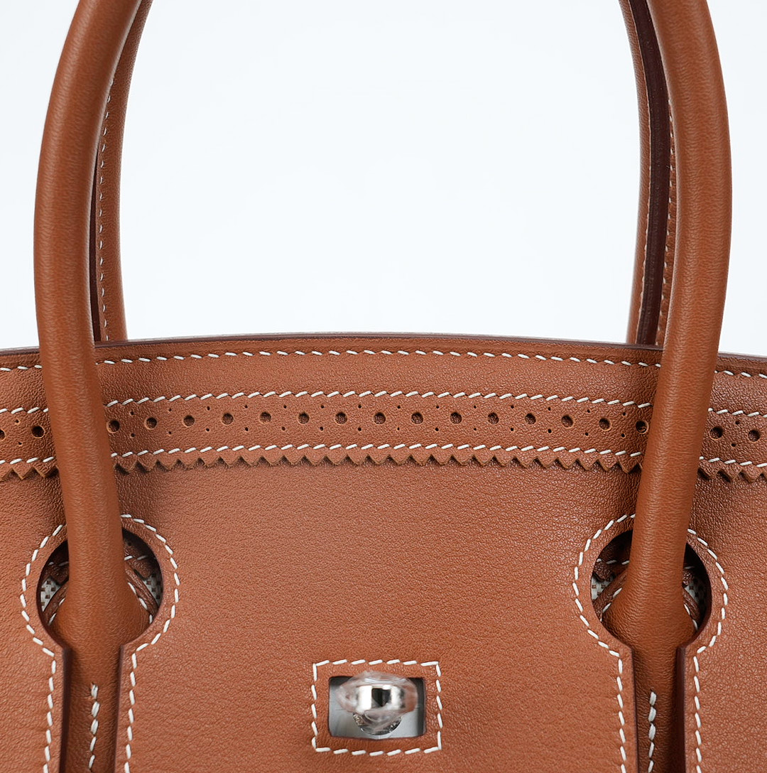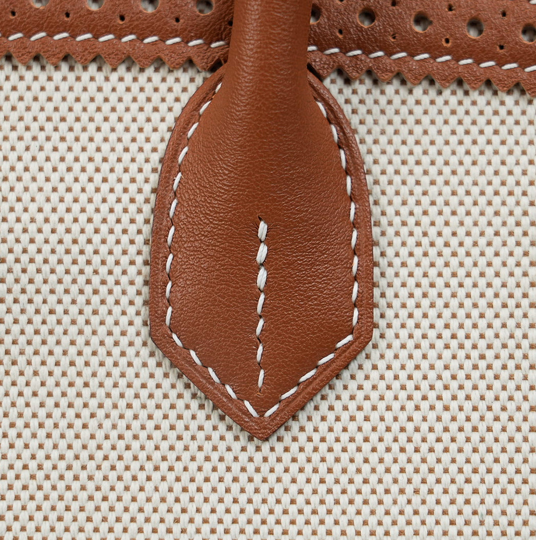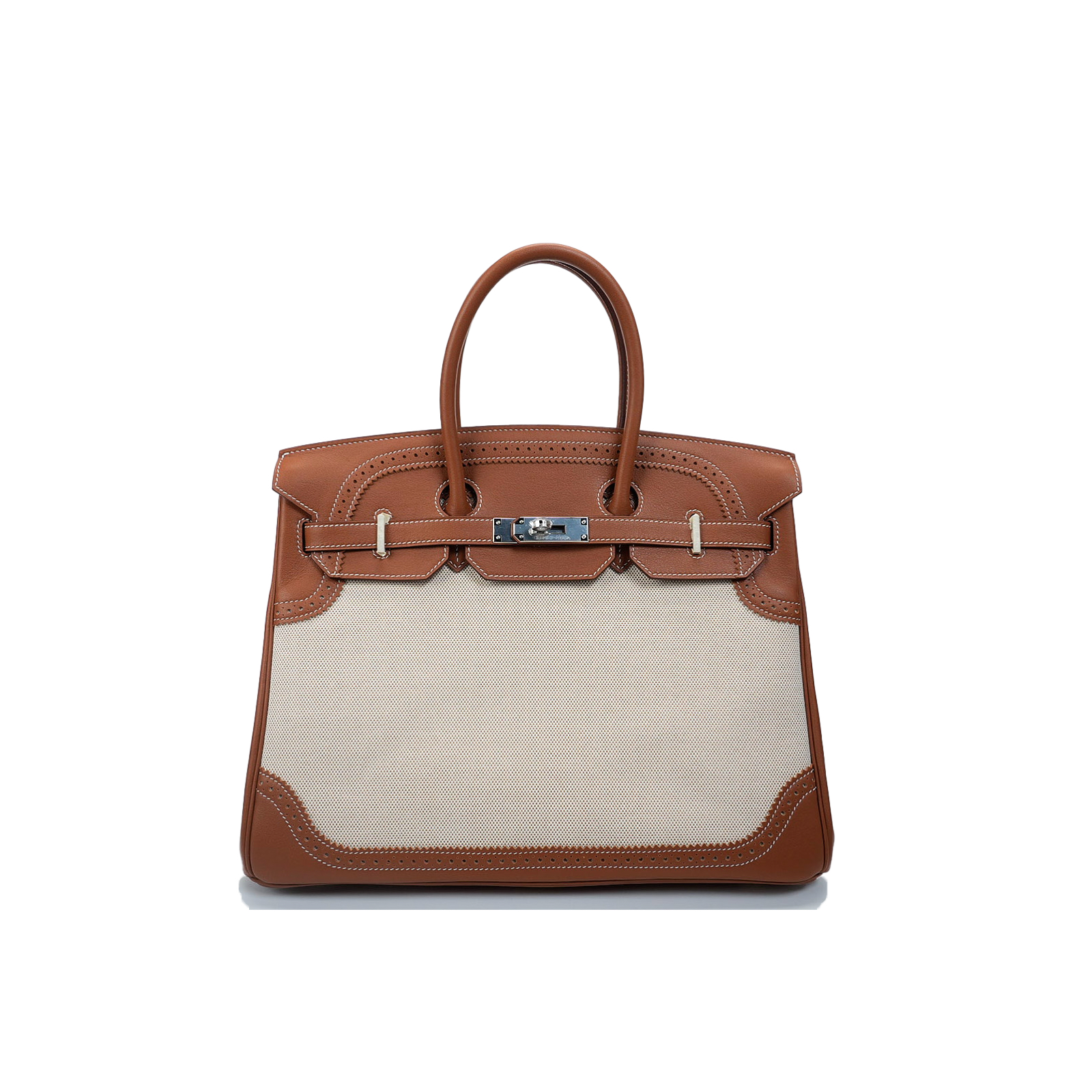 This BK is in Fauve Swift and Toile H with palladium hardware and has contrast stitching, front flap, two straps with center toggle closure, clochette with lock and two keys, and double rolled handles.