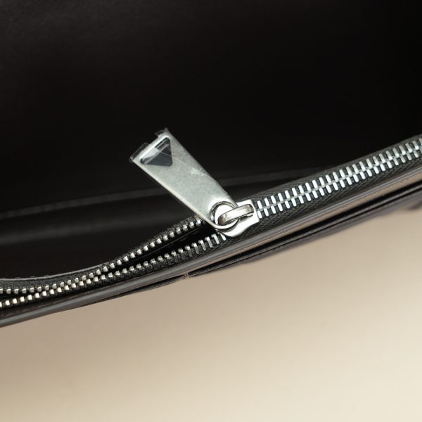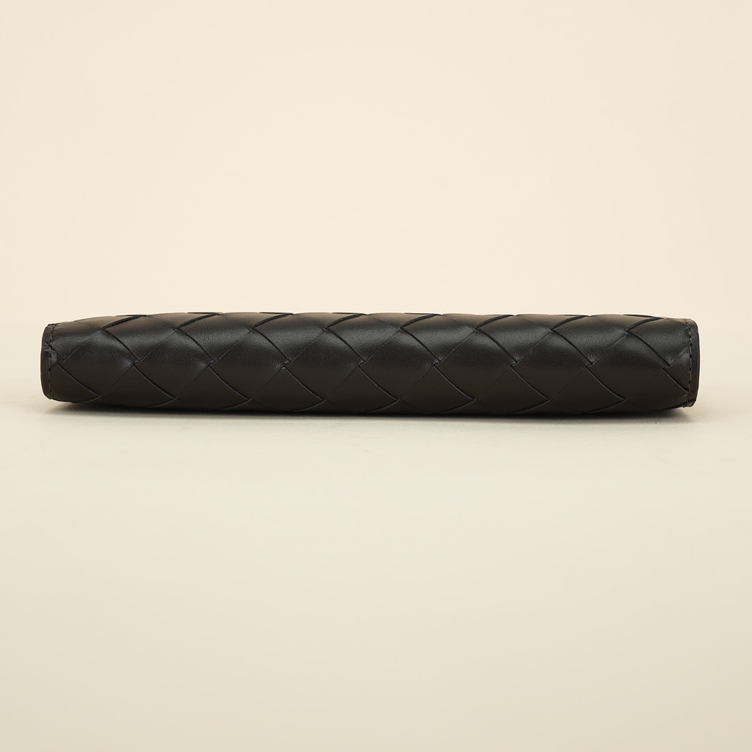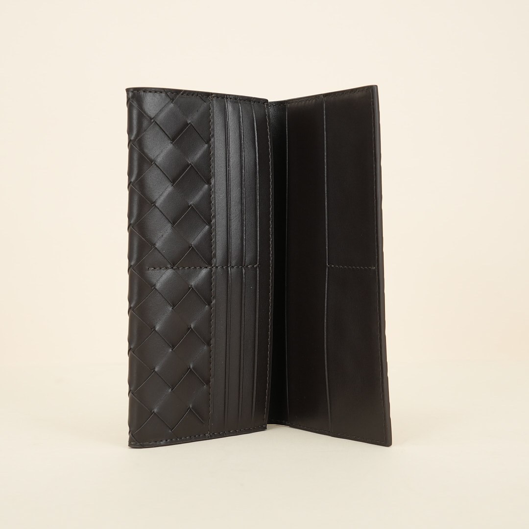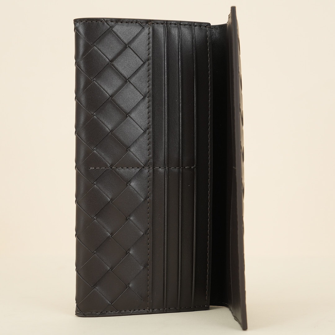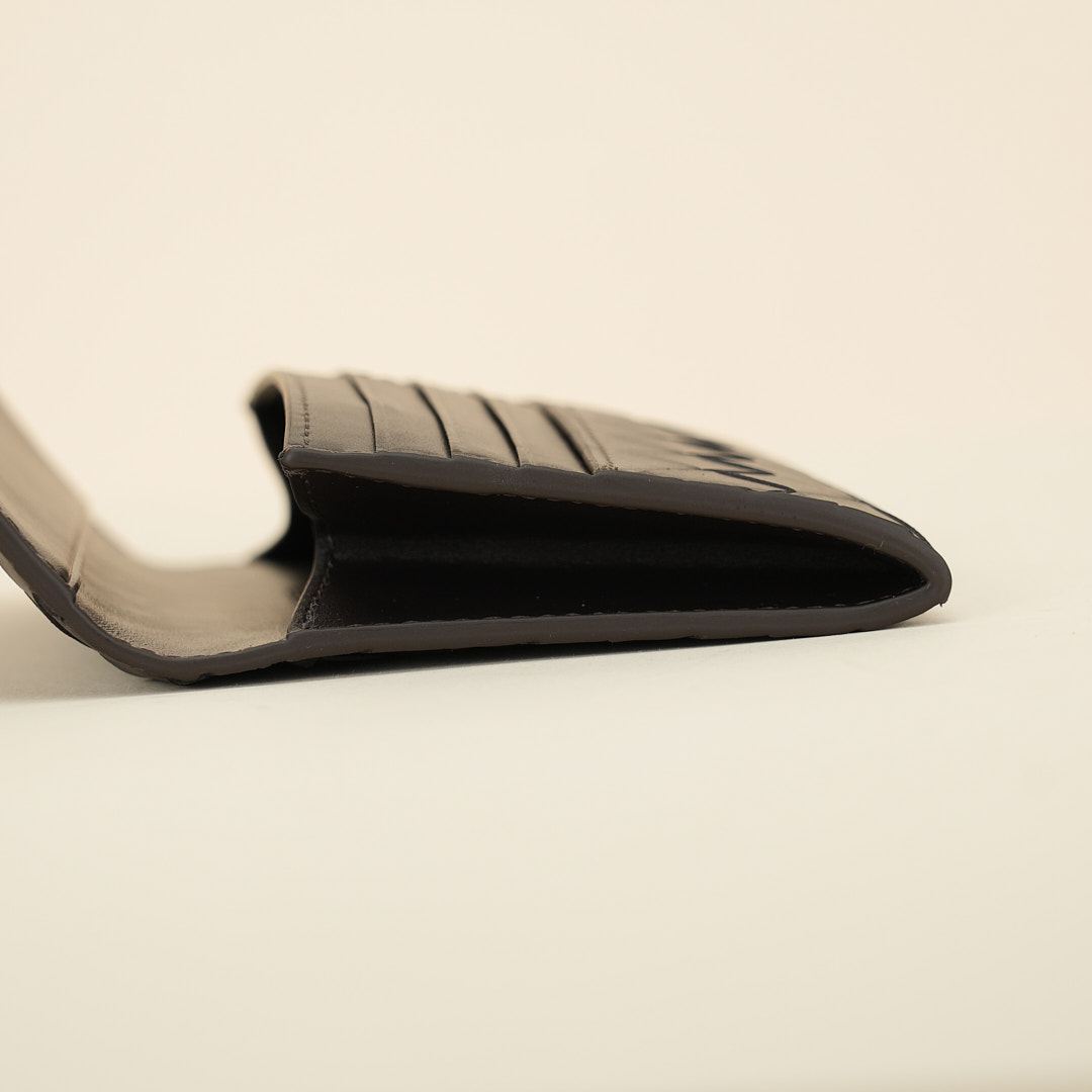 Ten card slots, one bill compartment, one additional pocket, one zippered coin purse. Colored in Fondant.