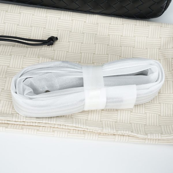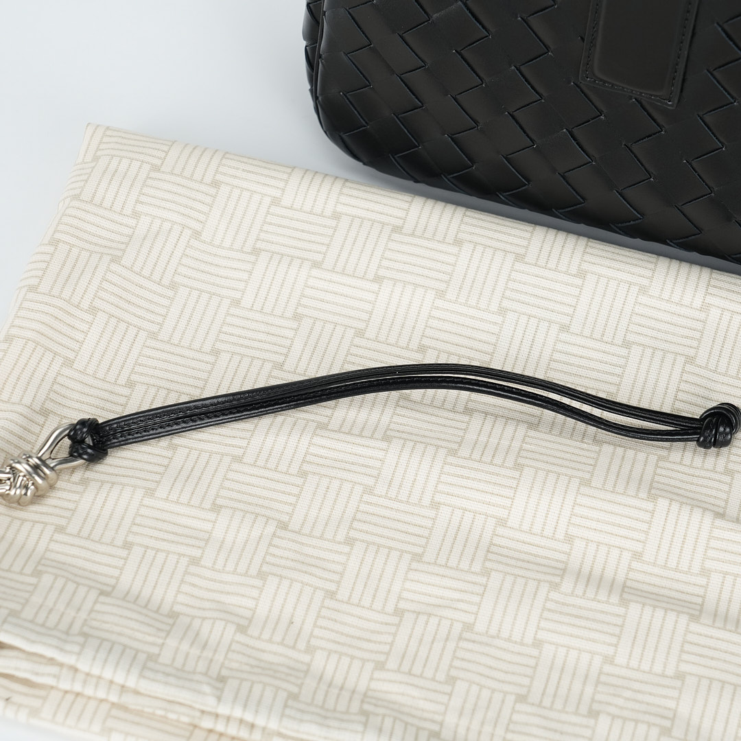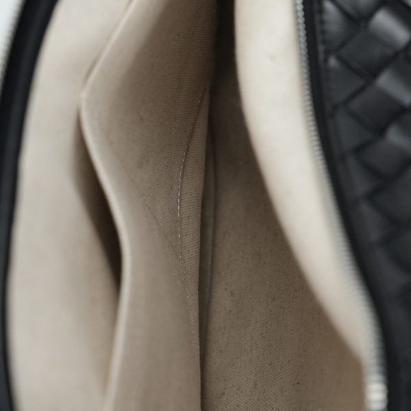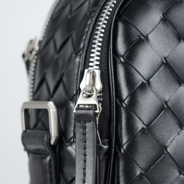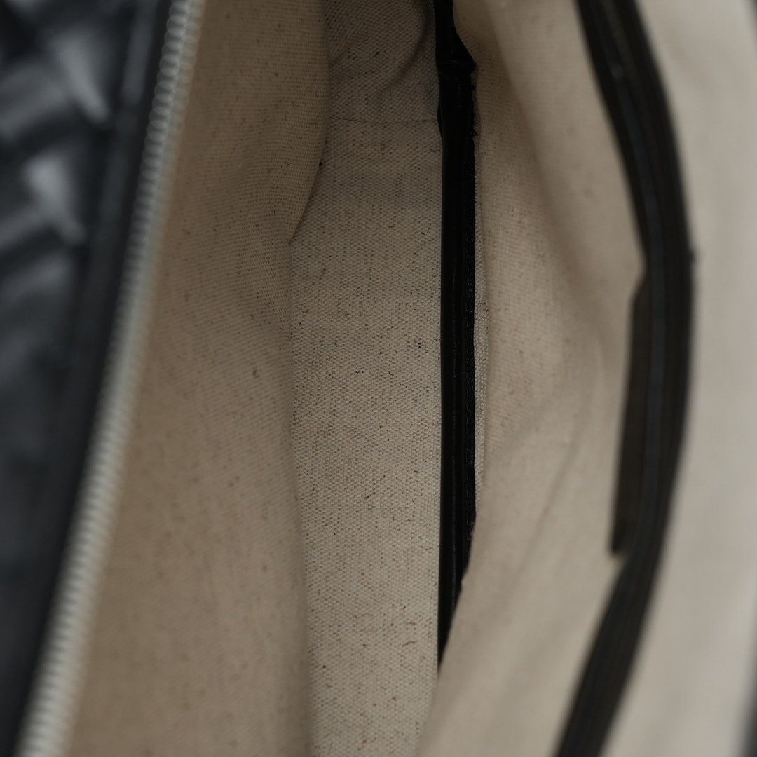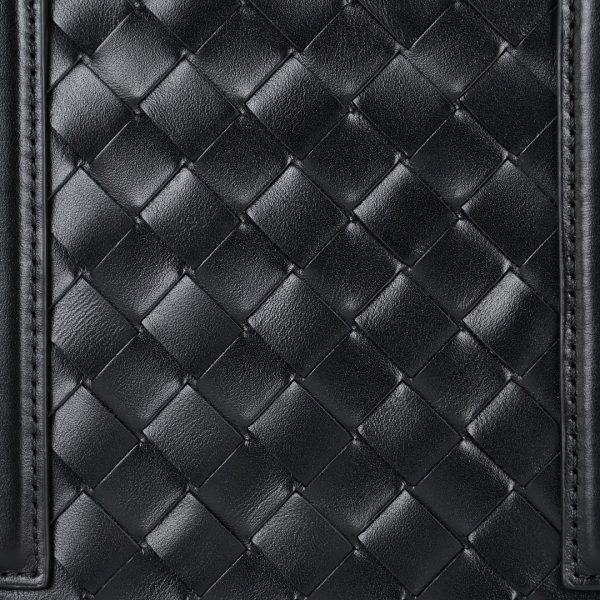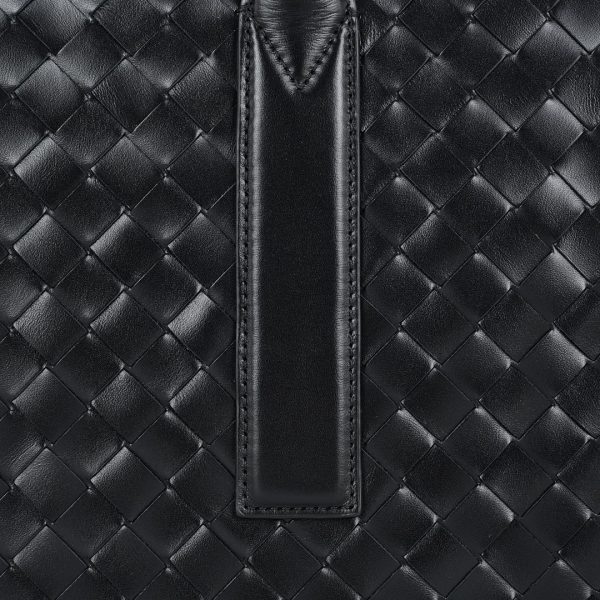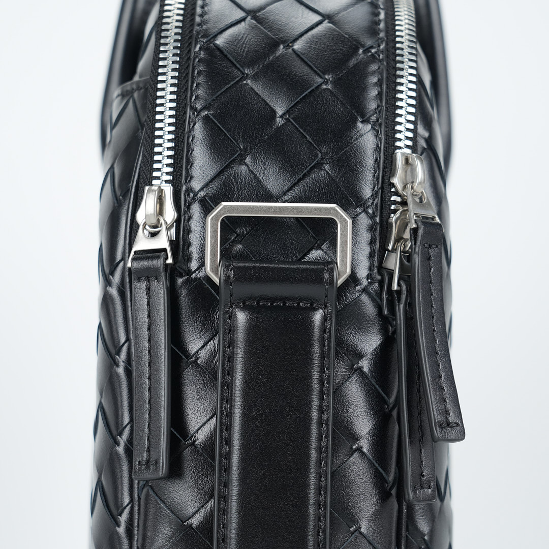 Briefcase in soft Intrecciato leather with adjustable strap and signature knot detail. Metallic knot detail on leather strap. Padded laptop compartment and one zipped pocket.