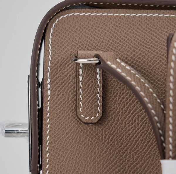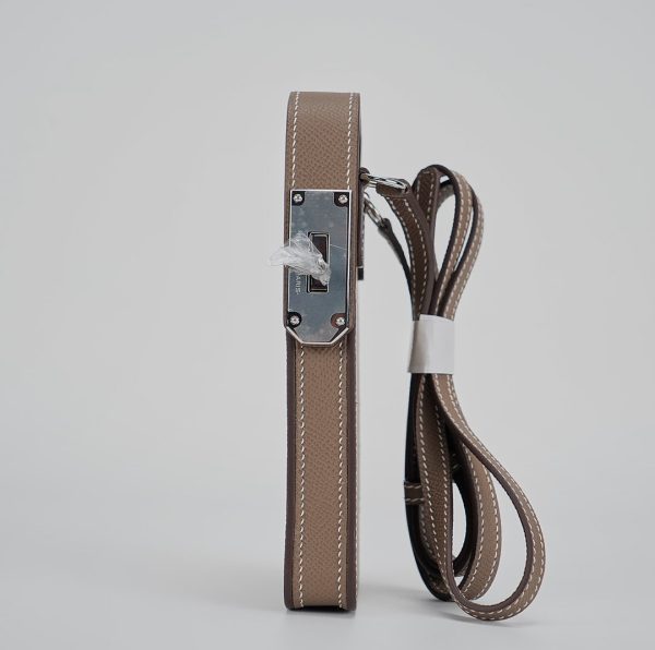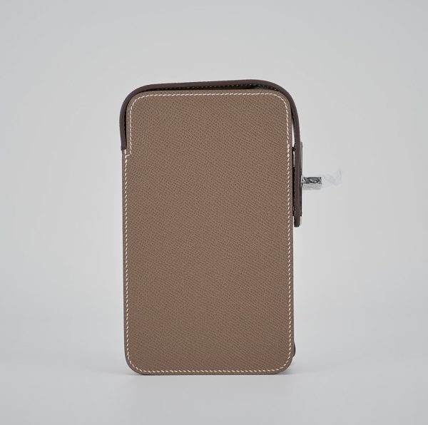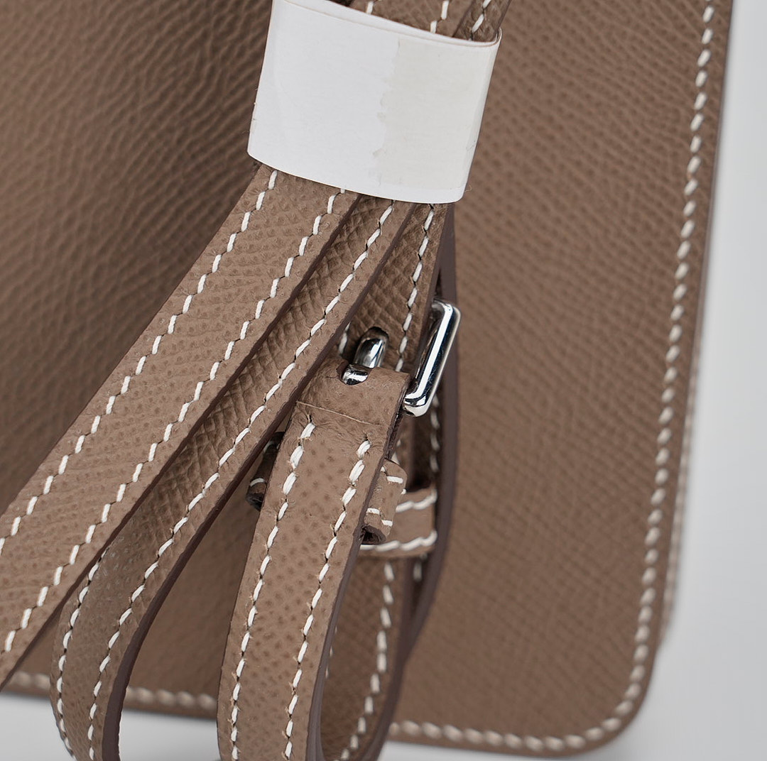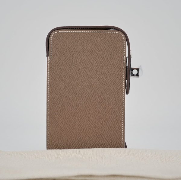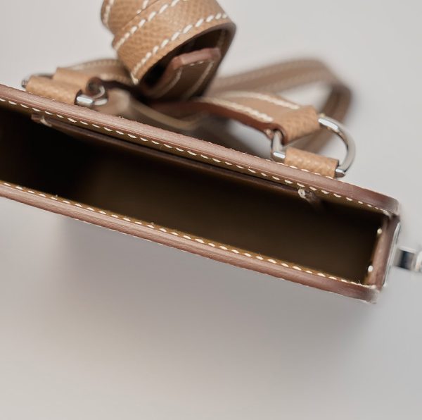 This hard leather phone case draws inspiration from the Haut a courroies bag with the front belt-closure. Straps and a turn clasp are revisited in a side closure format, designed to secure your essentials: your phone and a credit card. The pouch juxtaposes the expertise of leather work with metal details. An accessory that keeps with the spirit of the times, it allows for hands-free carry thanks to its adjustable shoulder strap.
