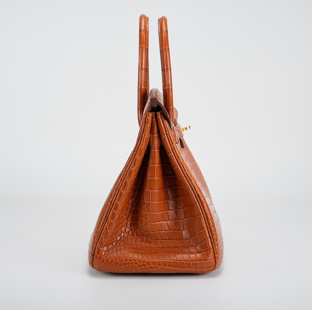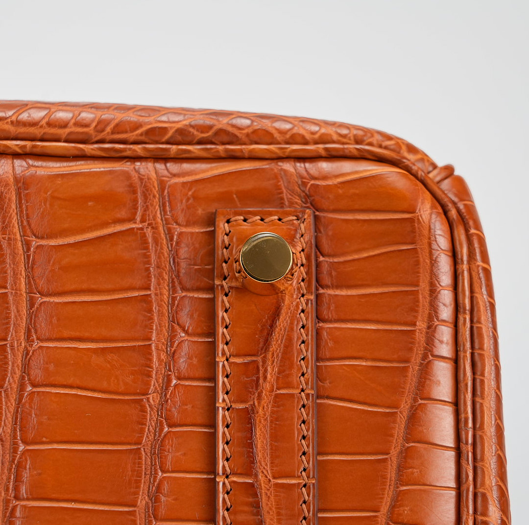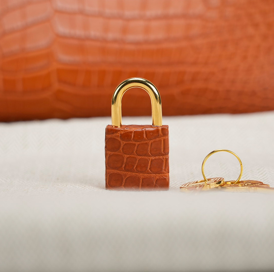 A magnificent BK, crafted in sumptuous Gold Matte Porosus Crocodile leather and enhanced by gold hardware. This exotic piece shows the incredible mastery of when it comes to craftsmanship. Its timeless proportions hold your essentials with unparalleled sophistication.