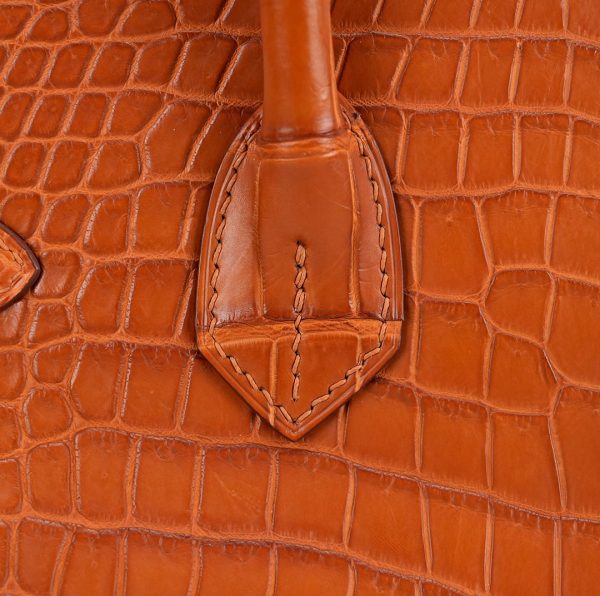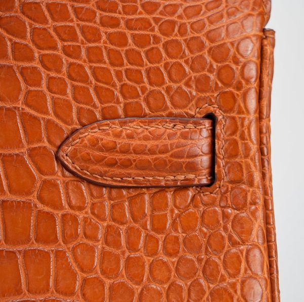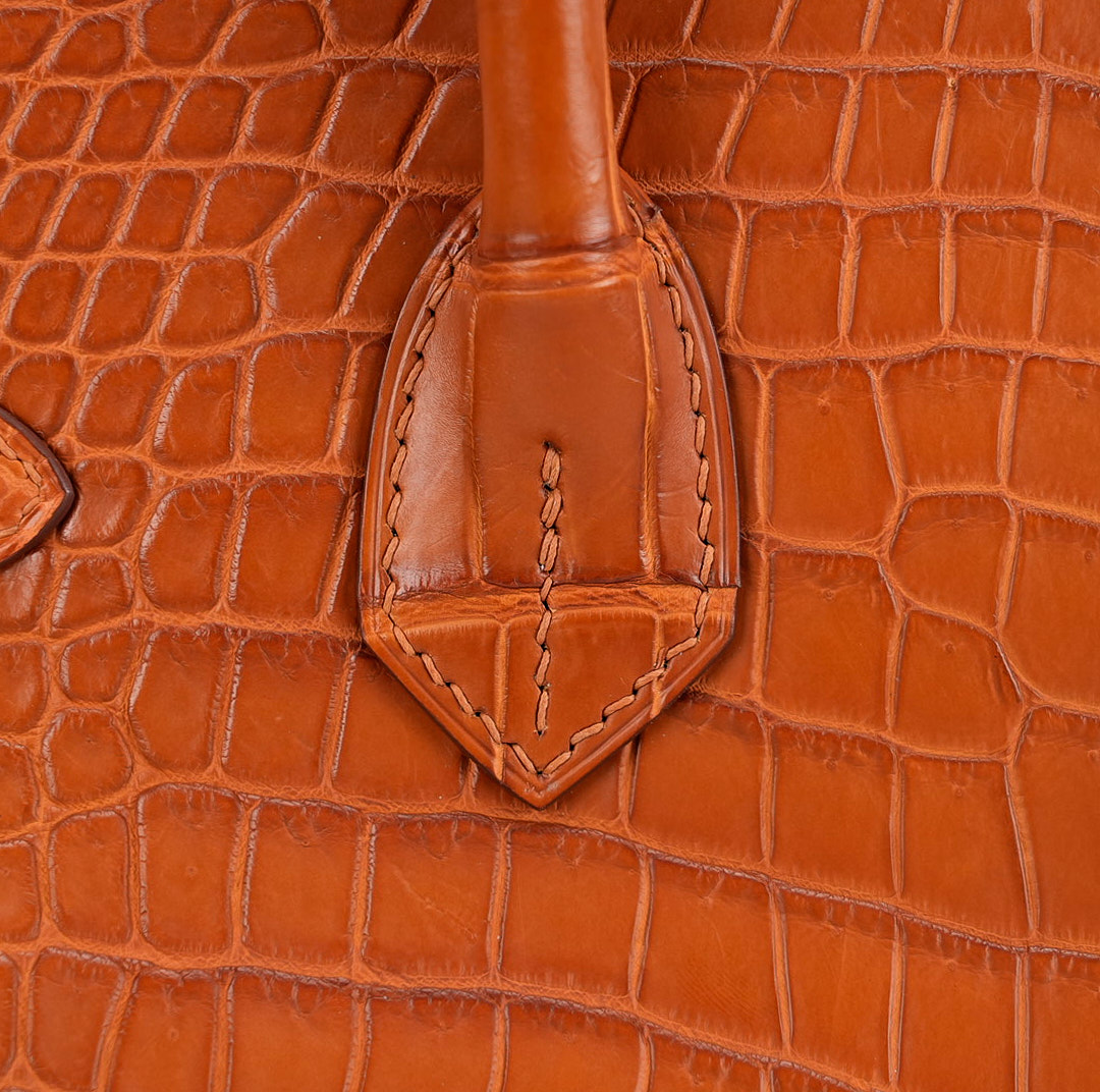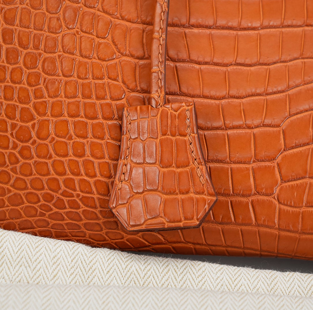A magnificent BK, crafted in sumptuous Gold Matte Porosus Crocodile leather and enhanced by gold hardware. This exotic piece shows the incredible mastery of when it comes to craftsmanship. Its timeless proportions hold your essentials with unparalleled sophistication.