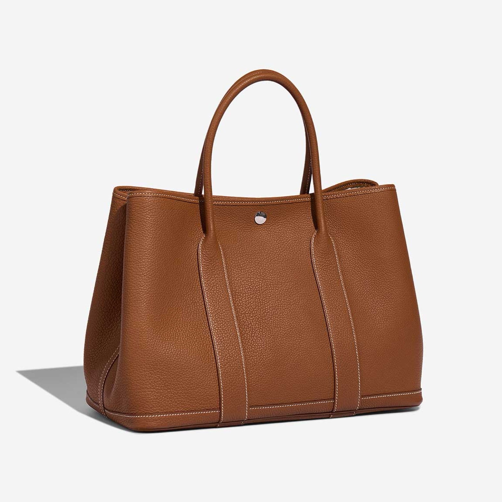 Garden Party 30 that perfectly suits your on-the-go lifestyle, expertly handcrafted from Veau Négonda Leather in Gold. Stow all your essentials for the day inside and use the leather handles to carry it in the crook of your arm or in your hand.