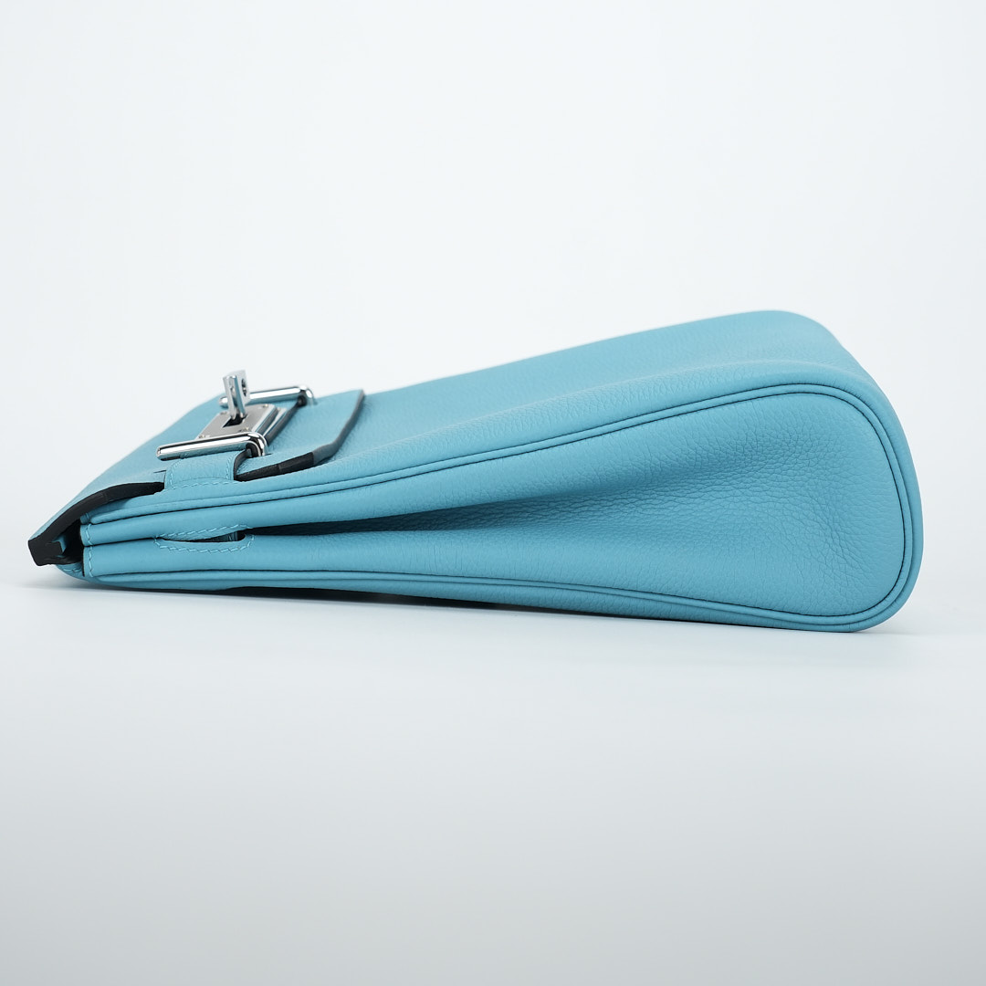 This HAC A Dos PM Backpack is in Bleu Du Nord Togo leather with palladium hardware and has tonal stitching, two straps with front toggle closure, and an adjustable shoulder strap.