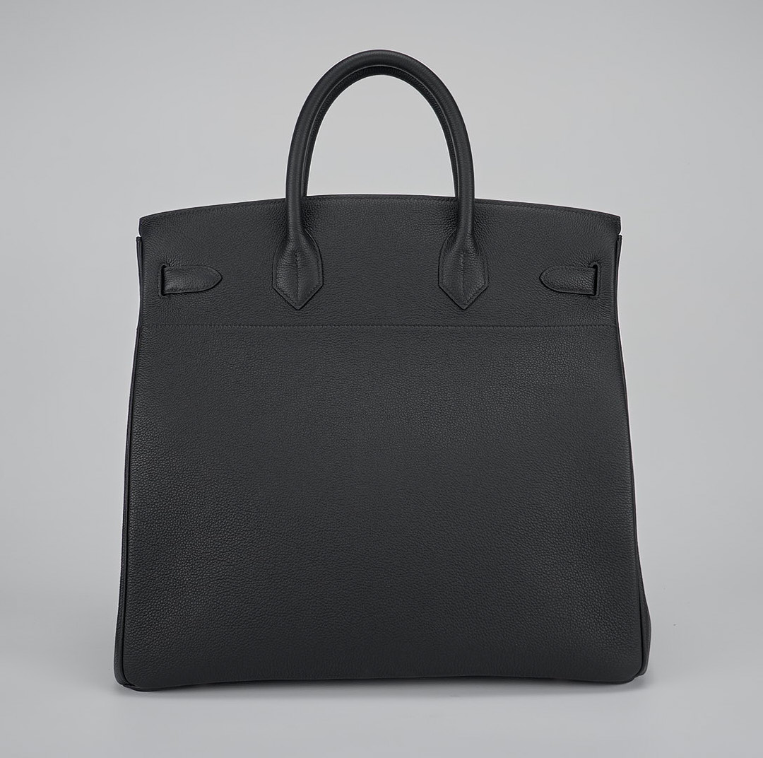 This HAC BK is in Black togo with palladium hardware and has tonal stitching, two straps with front HAC toggle closures, clochette with lock and keys and double rolled handles.