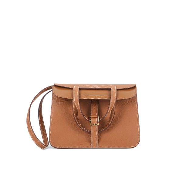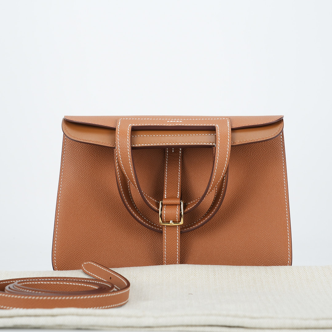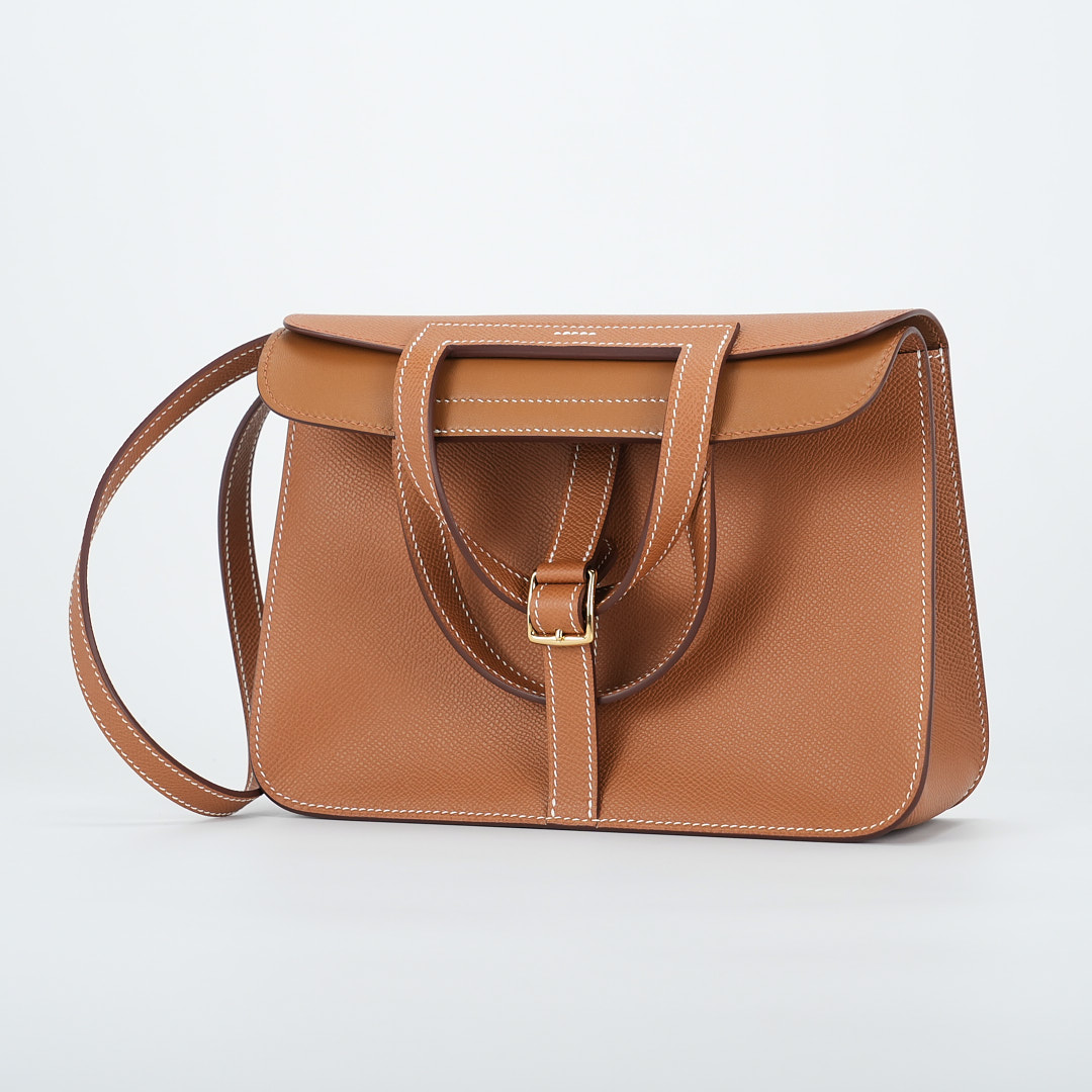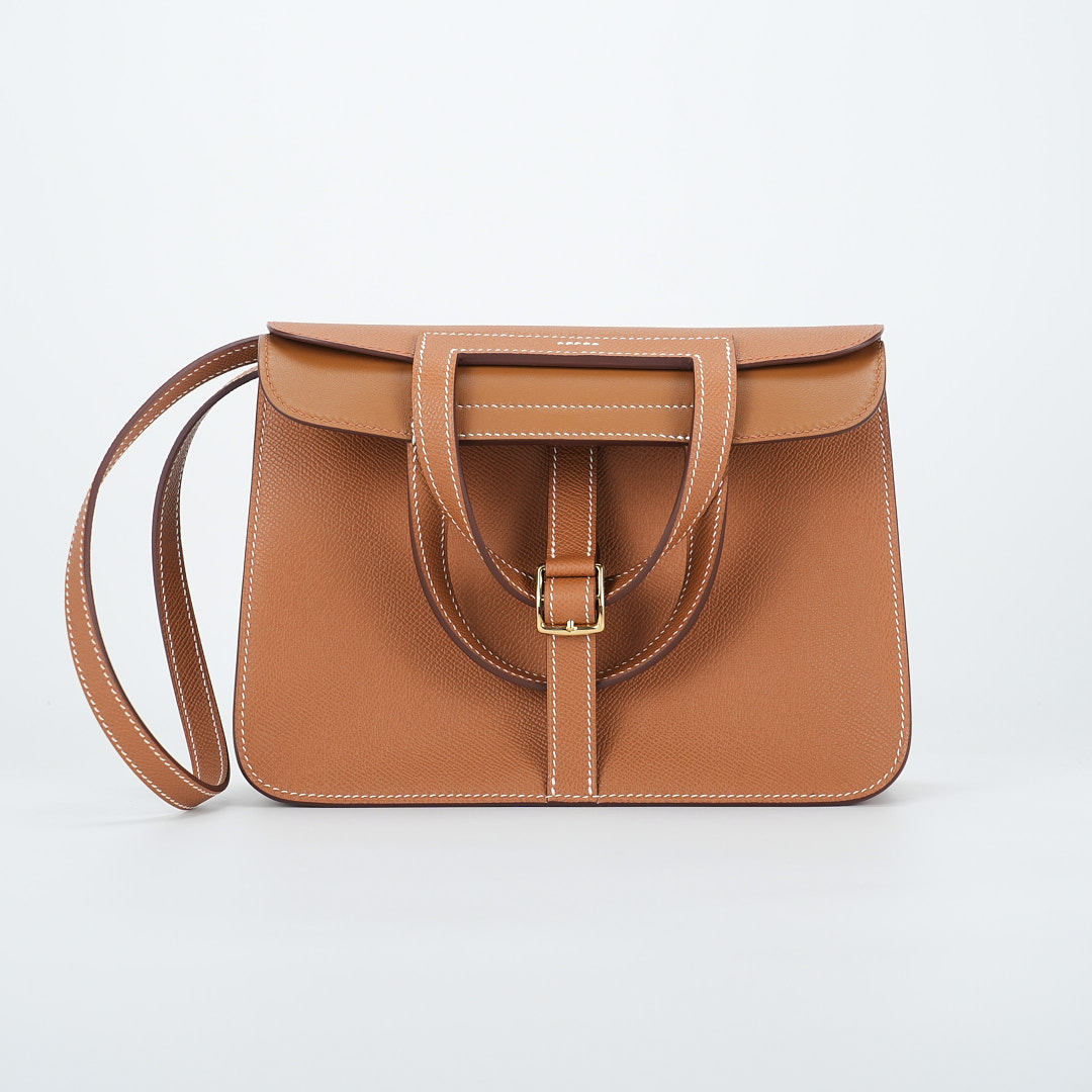 Add a pop of color to your wardrobe with this Halzan 25. It has been handcrafted from Epsom leather and is colored in Gold.