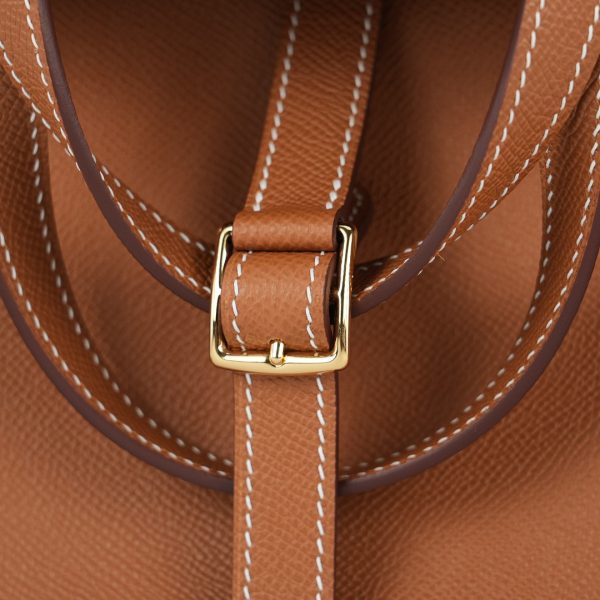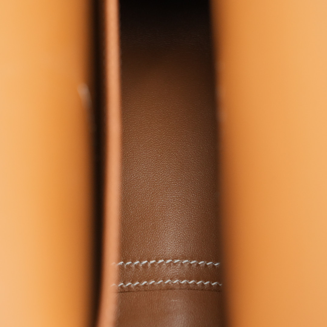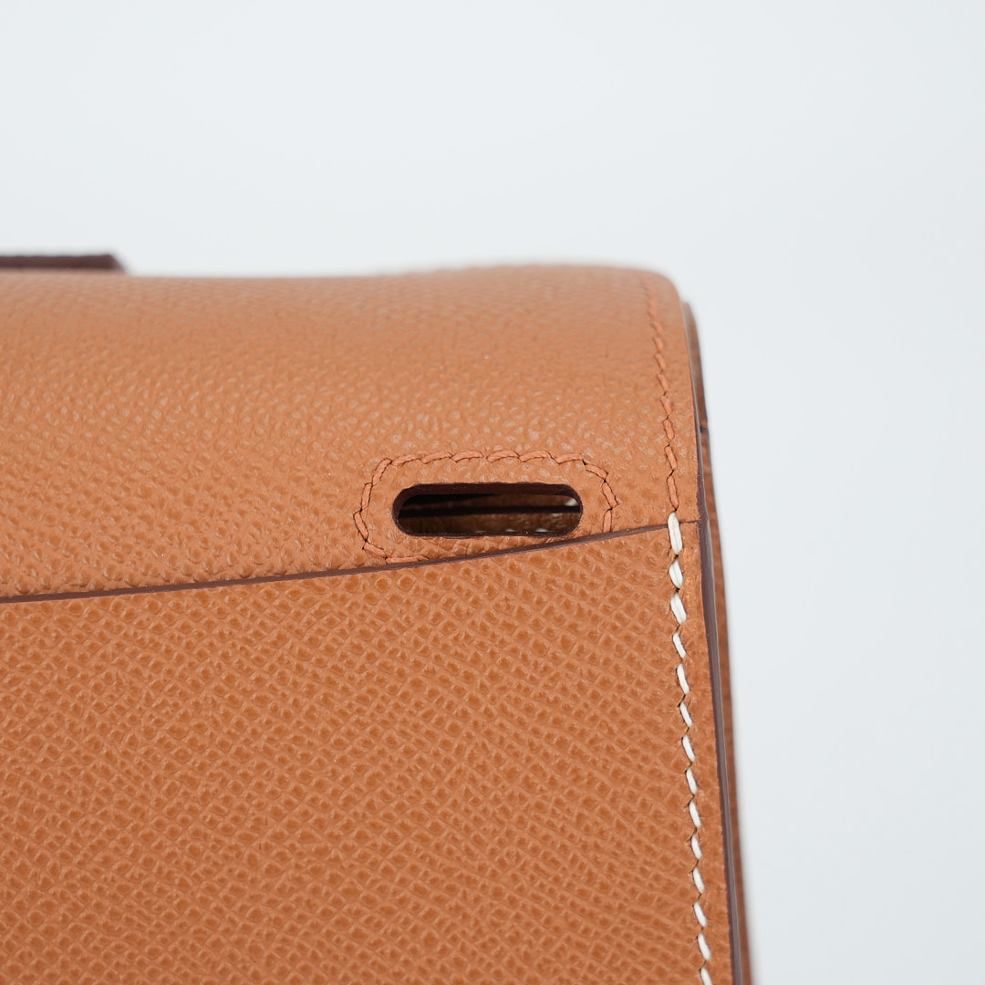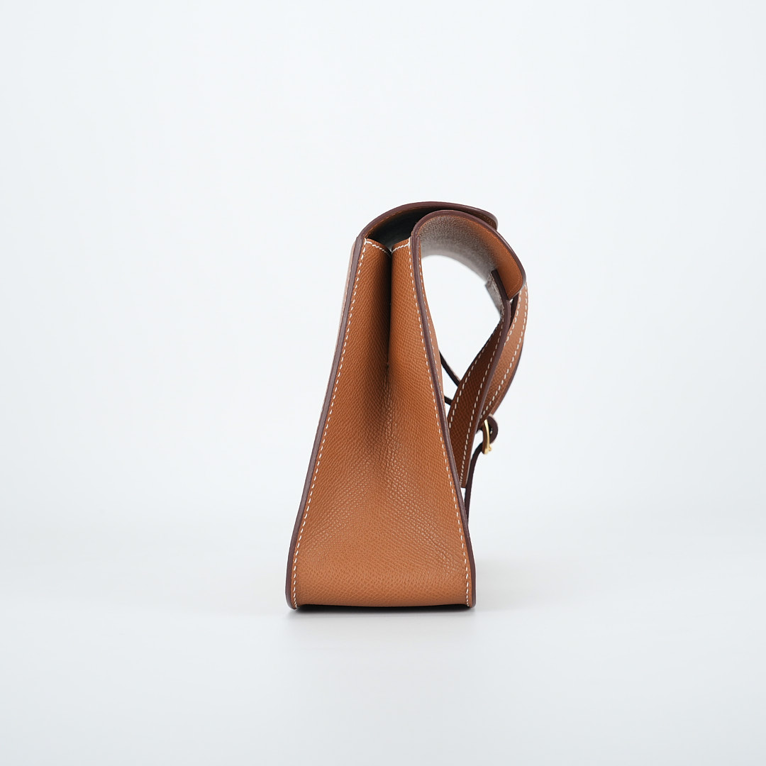 Add a pop of color to your wardrobe with this Halzan 25. It has been handcrafted from Epsom leather and is colored in Gold.