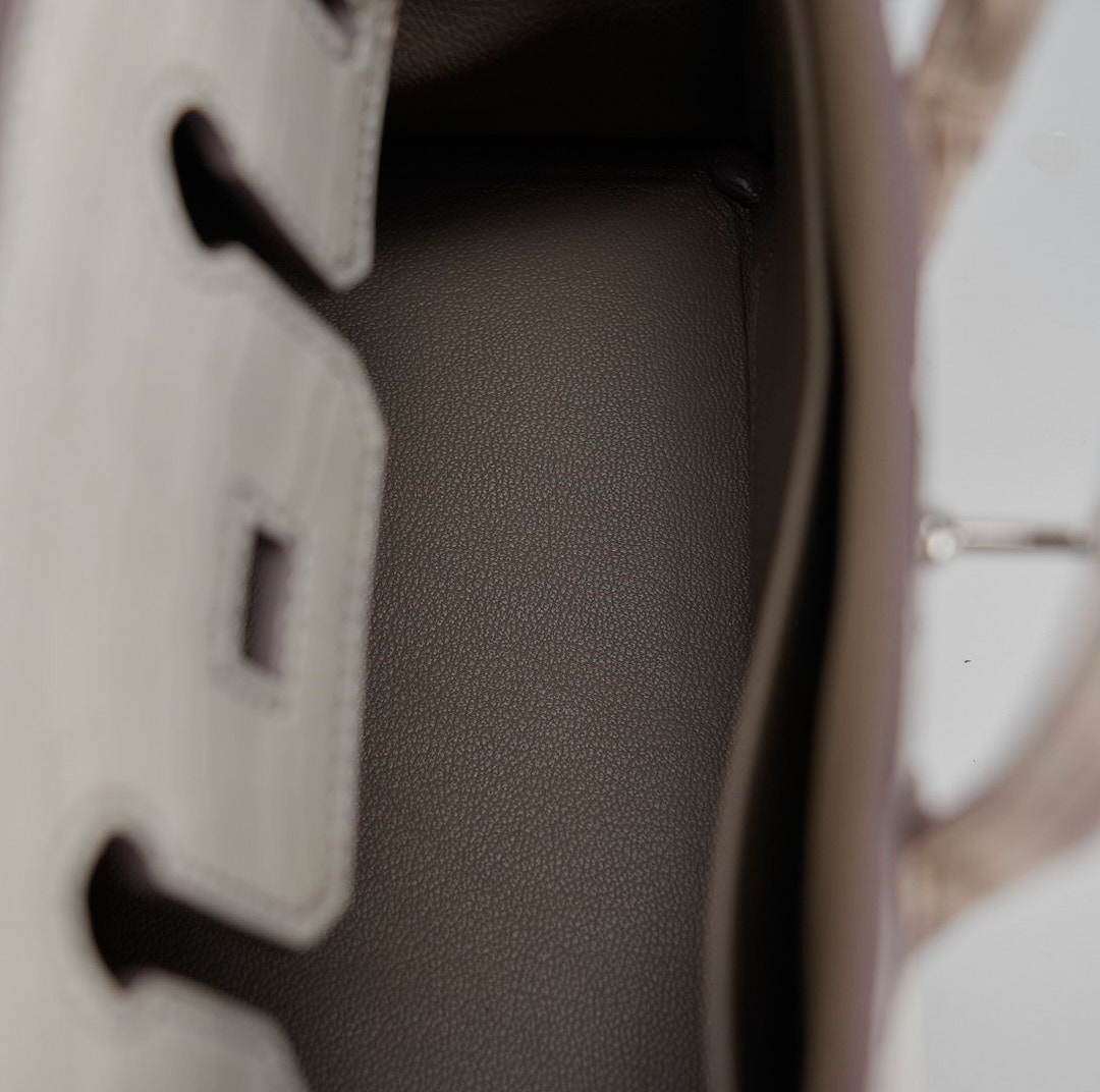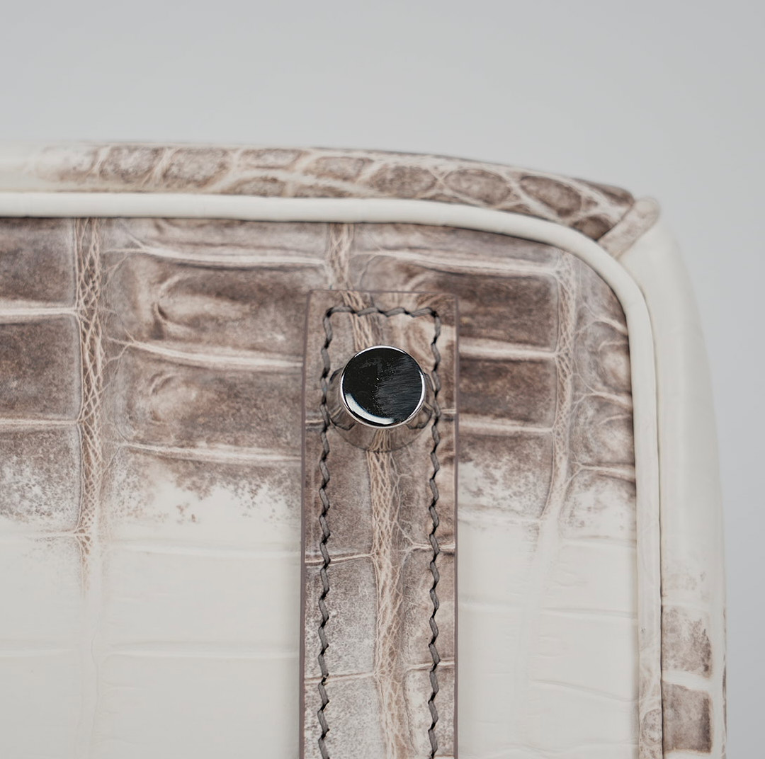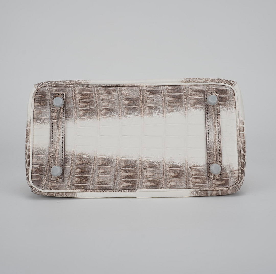 One of the rarest and most prestigious handbags ever created, this Himalaya Blanc BK 25 is the pinnacle of every collection. Manufactured in highly limited numbers from Niloticus Crocodile, its coloring reflects the sublime tinges of the Himalayan mountain range.
