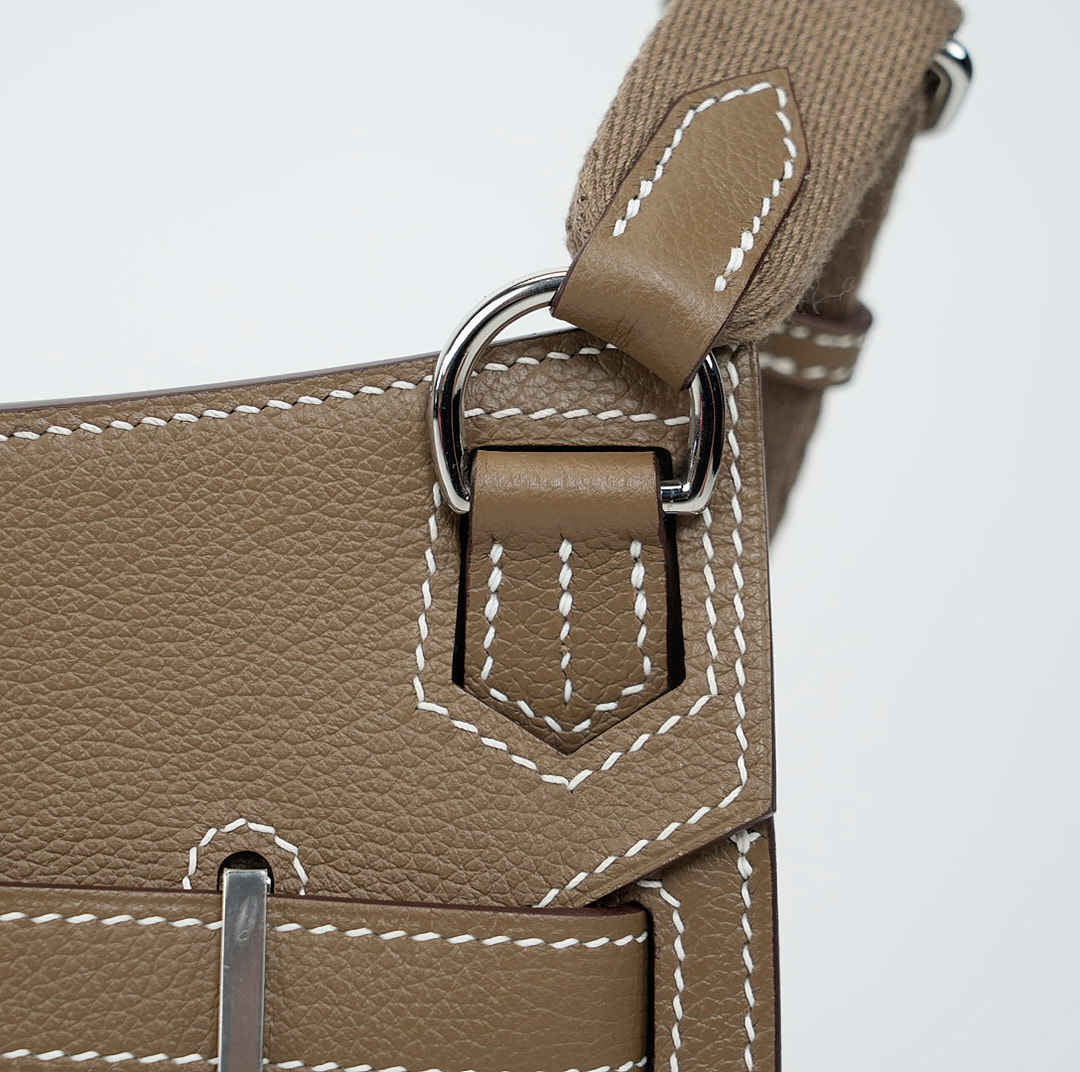 The Jypsière Mini adds a subtle touch of sophistication to your looks. Colored in the earthy shade of Étoupe, it has been handcrafted from Evercolor leather, topped with palladium hardware.