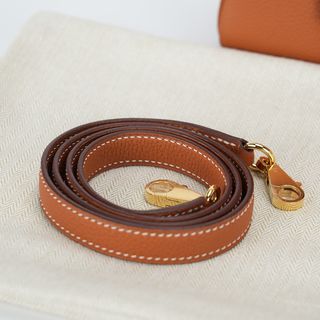 An KY 25 gold togo retourne to elevate your off-duty attire. It has been expertly sewn together by hand using togo leather. Match your jewelry to the gold-plated hardware and attach the shoulder strap to go hands-free.